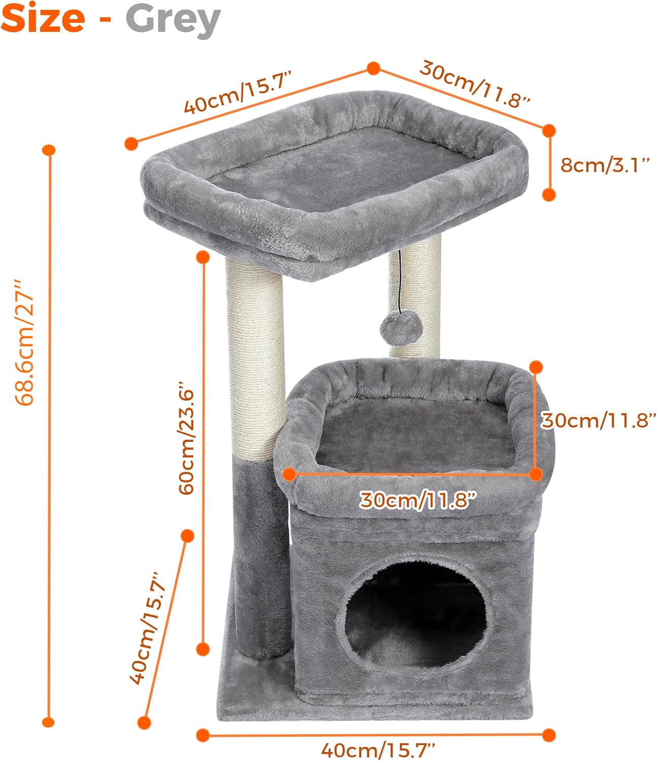 • ПОВЕЧЕ ЗАБАВЛЕНИЕ И КОМФОРТ Това дърво за котки разполага с 2 драскалки, които са изцяло обвити със сизалови въжета и осигуряват на вашите котки достатъчно пространство за почистване на лапите им и ги държат далеч от ценните ви мебели. В допълнение, сменяемата плюшена топка осигурява допълнително забавление за вашите котки.