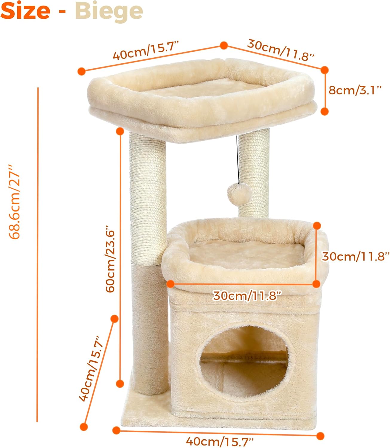 PAWZ Road Малка котешка дървесина, Многоетажна котешка кула със стъргалка, покрита със сизал, Уютна котешка къщичка и Голяма котешка кацалка за домашни котки, Бежова