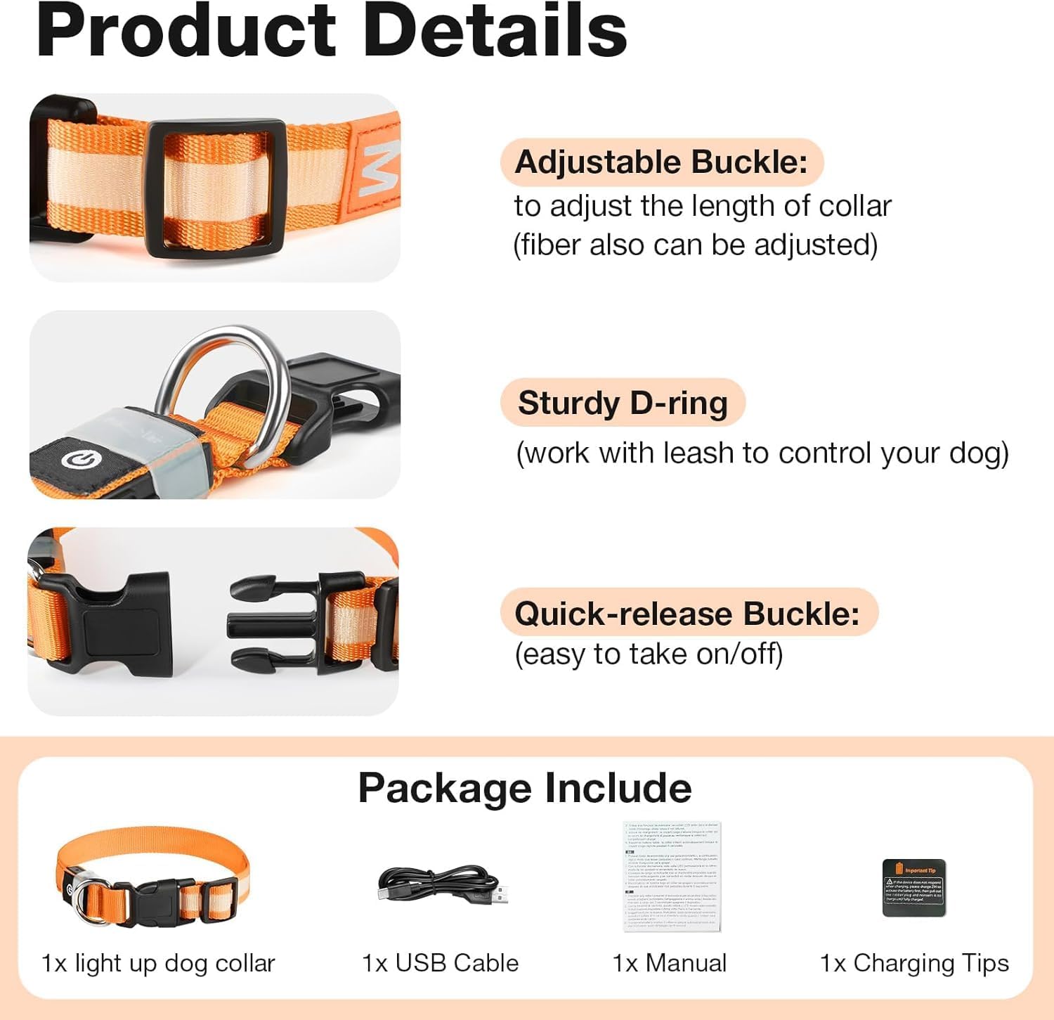• Нашийник за кучета, светещ, водоустойчив, със 7 цвята. Всеки нашийник е проектиран да бъде водоустойчив и прахоустойчив и може да се използва в повечето среди. Например, снежни бури, силен дъжд и други метеорологични условия, но не е подходящ за плуване. И сме подготвили седем цвята за всеки нашийник, така че можете да изберете цвета, от който се нуждаете, в зависимост от средата, която е най-удобна за вас, за да намерите бързо кучето си от разстояние.