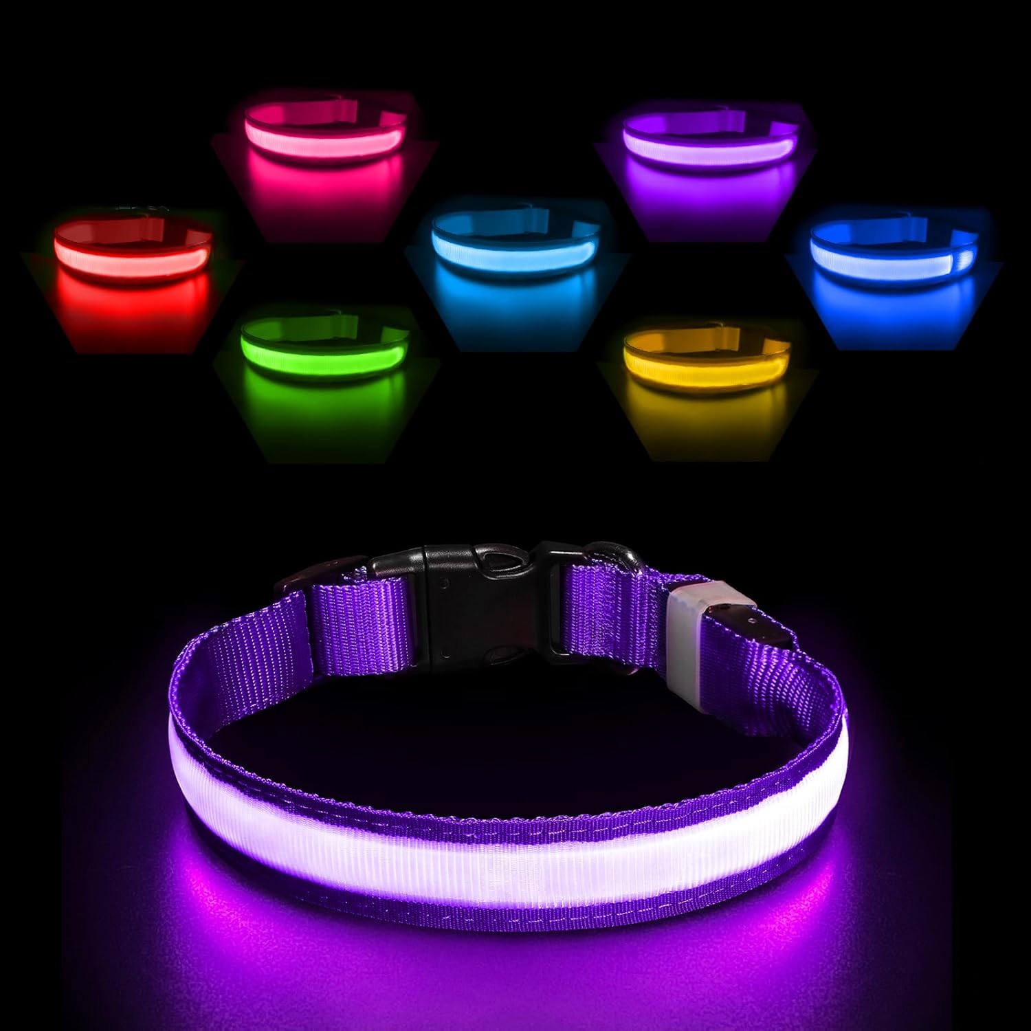 PcEoTllar LED светеща каишка за кучета USB презареждаща се водоустойчива каишка със 7 променящи се цвята за малки, големи и средни кучета, супер ярка, безопасност за през нощта