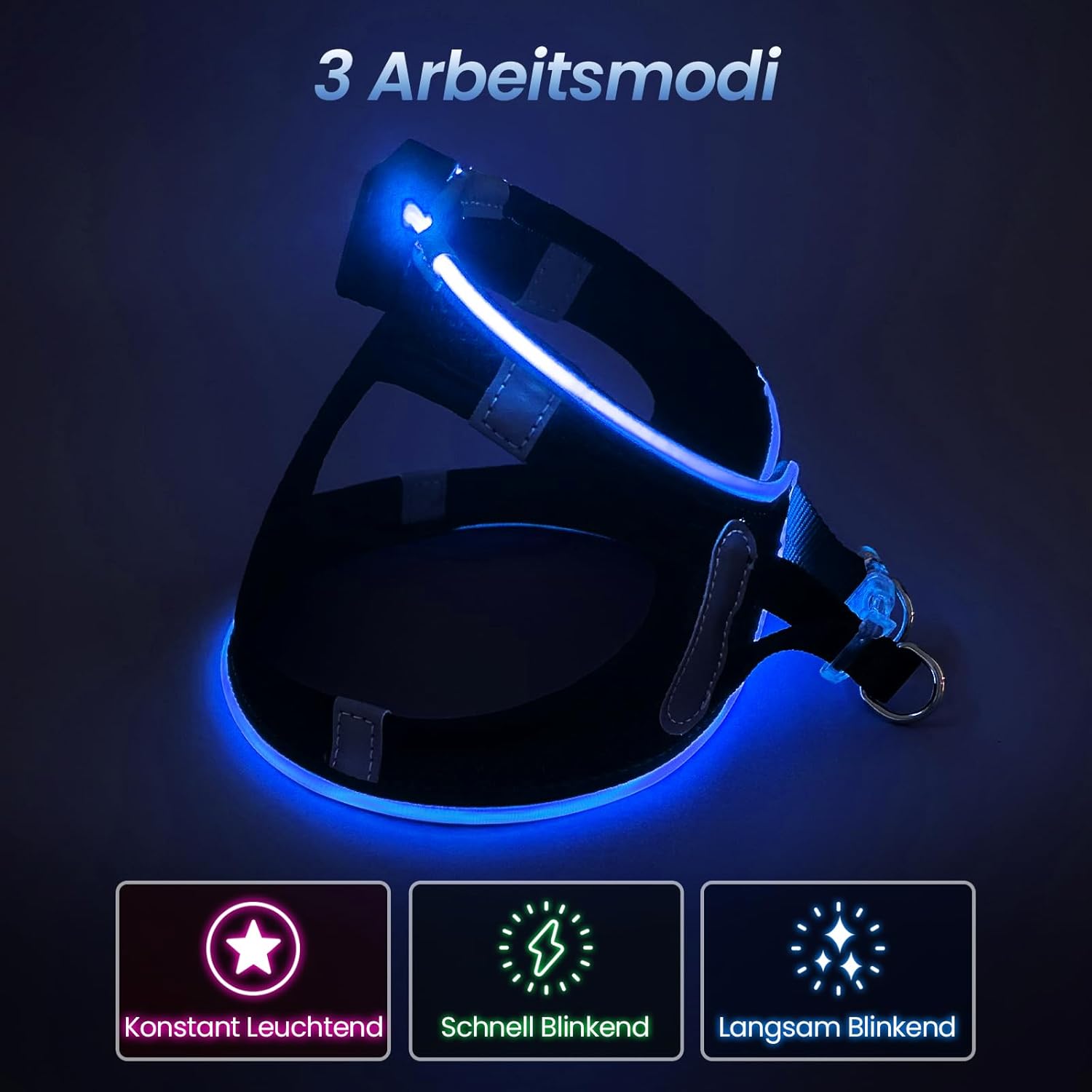[{'step_1': 'Заредете LED колана преди първа употреба. '}, {'step_2': "Регулирайте колана според кучето си, като измерите гръдната му обиколка и тегло. '}, {'step_3': 'Поставете предните крака на кучето си в колана. '}, {'step_4': 'Прикрепете гърба към тялото на домашния любимец и поставете катарамата. '}, {'step_5': 'Изберете желания режим на осветление (постоянно светене, бавно мигане или бързо мигане).'}]