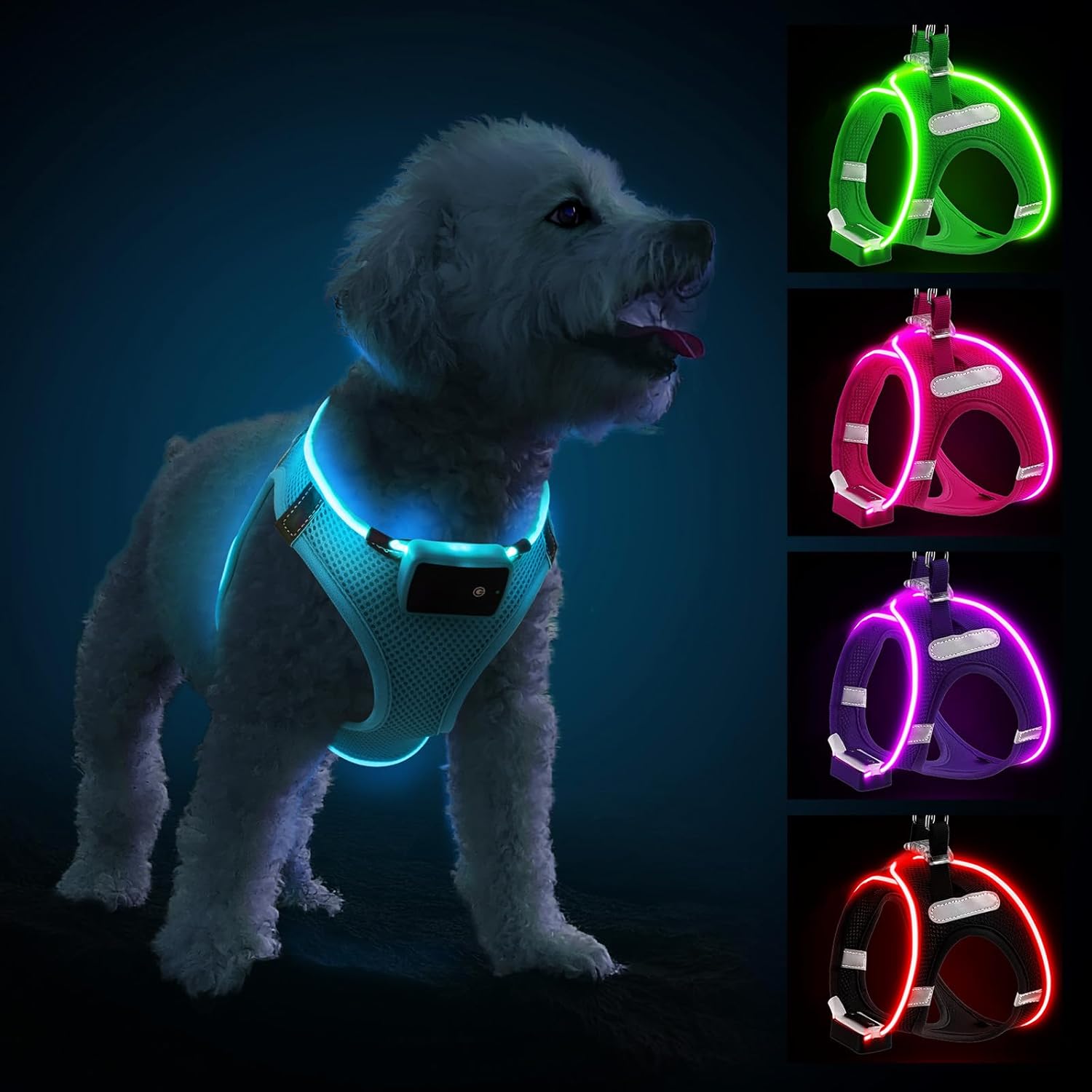 • Мигащ LED нагръдник за кучета. LED нагръдникът за кучета с 3 режима на осветление е супер ярък в тъмното, свети на 360 градуса, което означава, че държи кучето ви много видимо, когато го носите. Постоянна светлина, бавно мигане и бързо мигане. Отговаря на различни нужди от светлина, за да можете бързо да забележите кучето си в тъмното.