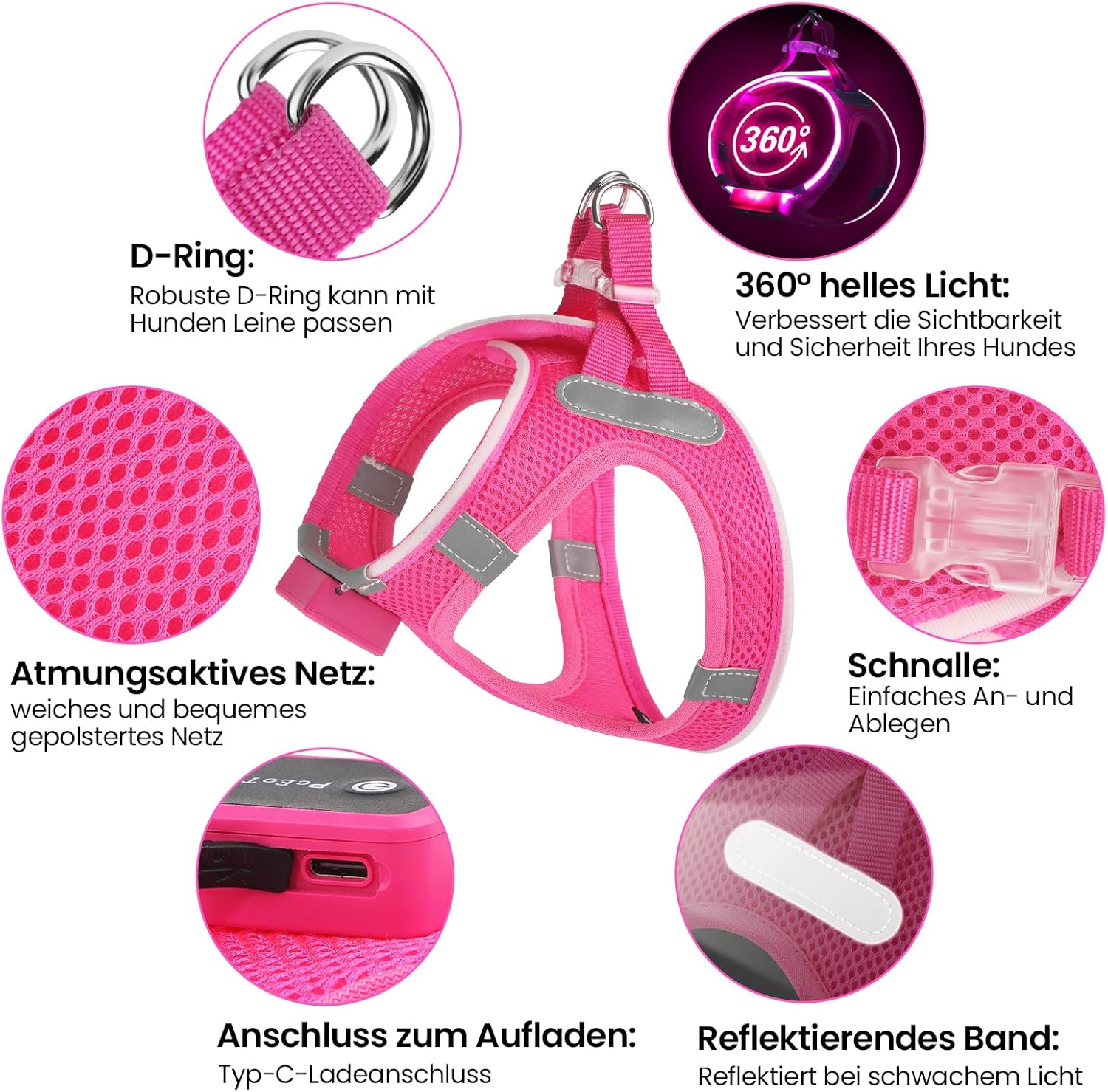 [{'step_1': 'Заредете LED колана преди първа употреба. '}, {'step_2': "Регулирайте колана според кучето си, като измерите гръдната му обиколка и тегло. '}, {'step_3': 'Поставете предните крака на кучето си в колана. '}, {'step_4': 'Прикрепете гърба към тялото на домашния любимец и поставете катарамата. '}, {'step_5': 'Изберете желания режим на осветление (постоянно светене, бавно мигане или бързо мигане).'}]