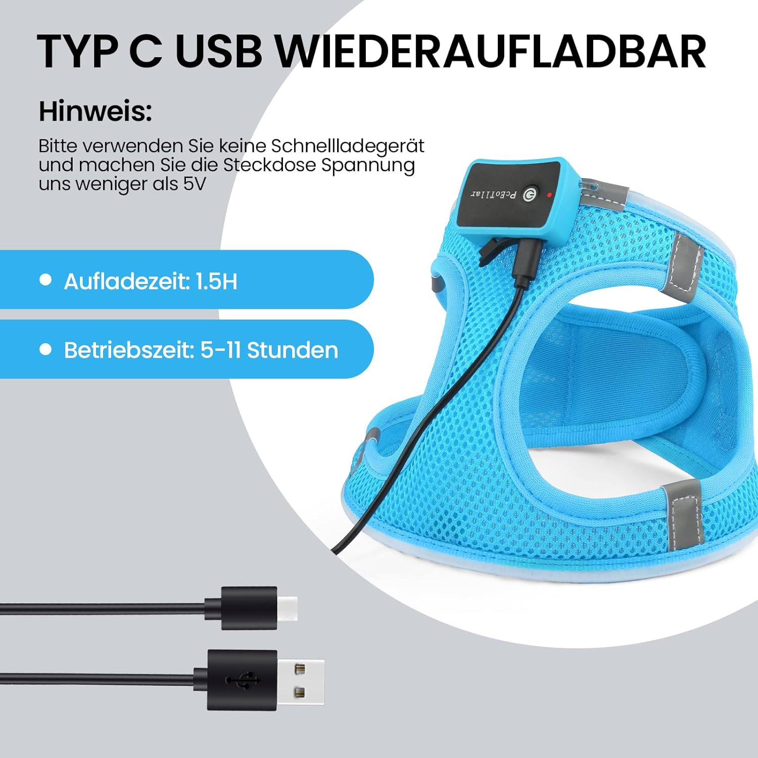 [{'step_1': 'Заредете LED колана преди първа употреба. '}, {'step_2': "Регулирайте колана според кучето си, като измерите гръдната му обиколка и тегло. '}, {'step_3': 'Поставете предните крака на кучето си в колана. '}, {'step_4': 'Прикрепете гърба към тялото на домашния любимец и поставете катарамата. '}, {'step_5': 'Изберете желания режим на осветление (постоянно светене, бавно мигане или бързо мигане).'}]