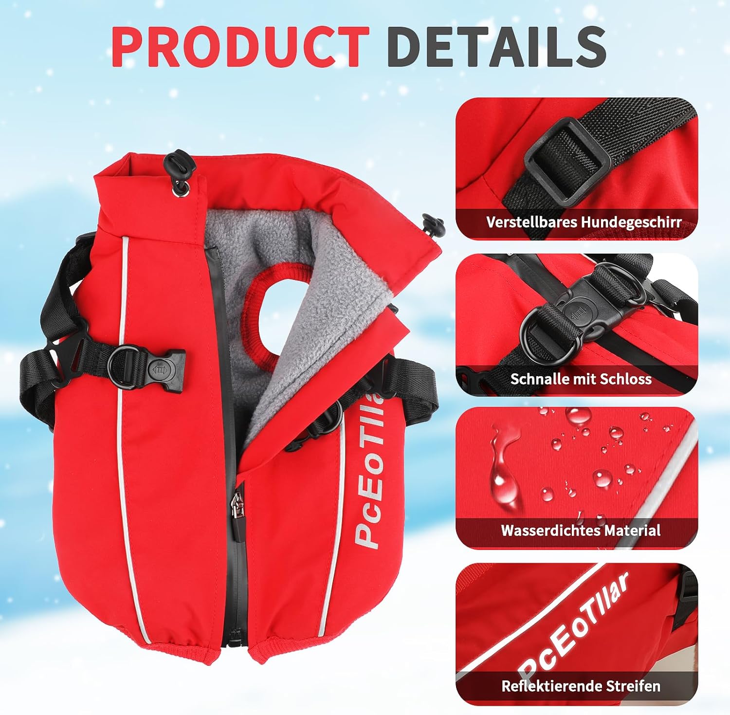 PcEoTllar Водоустойчиво кучешко палто за малки кучета, Топло светлоотразително яке с колан за зимата, Ски костюм, Памучен пуловер за кучета