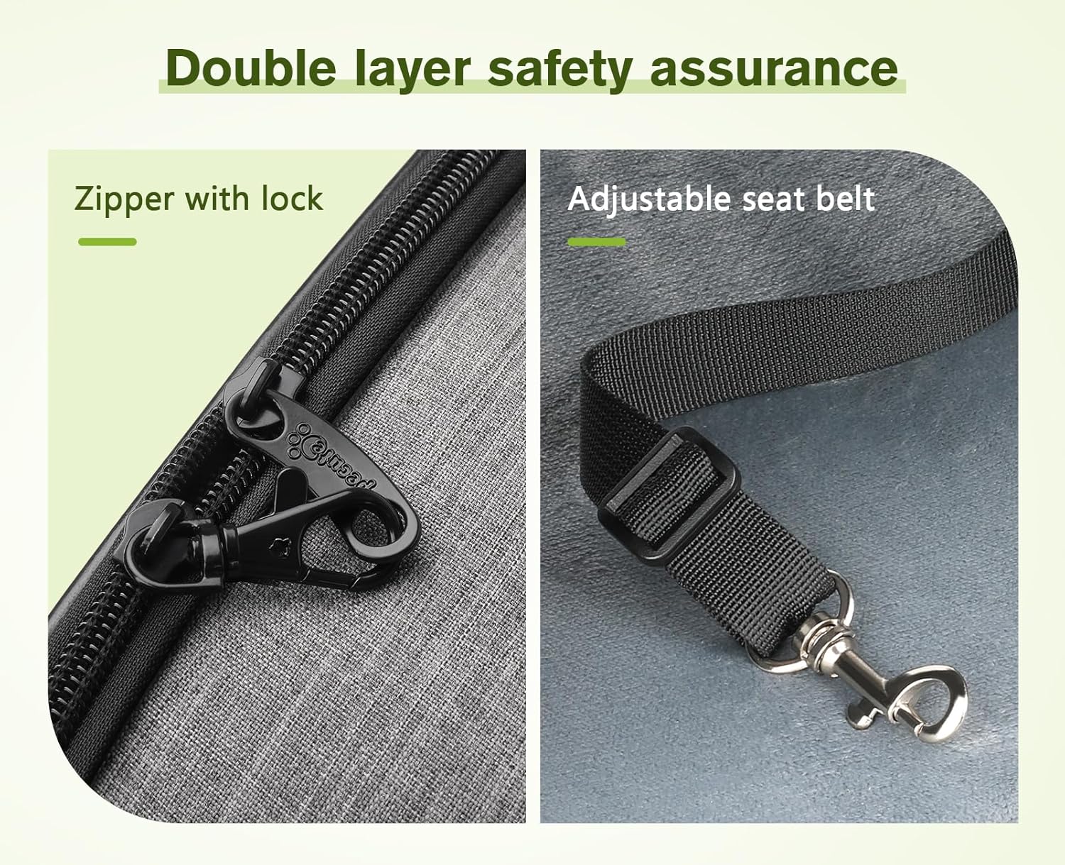 When you take your pet, please close the zipper, lock the buckle and attach the seat belt