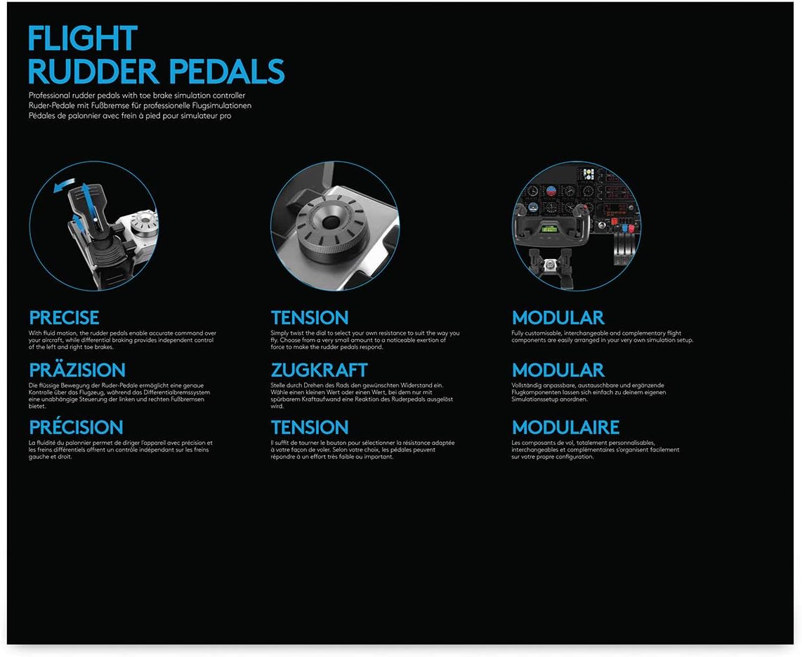 Прецизно съобразени с вашите нужди. Настройте желаното съпротивление, за да летите точно както желаете. За да реагират педалите на кормилото, можете да приложите много лек или по-силен натиск. С едно просто завъртане имате достъп до всички функции.