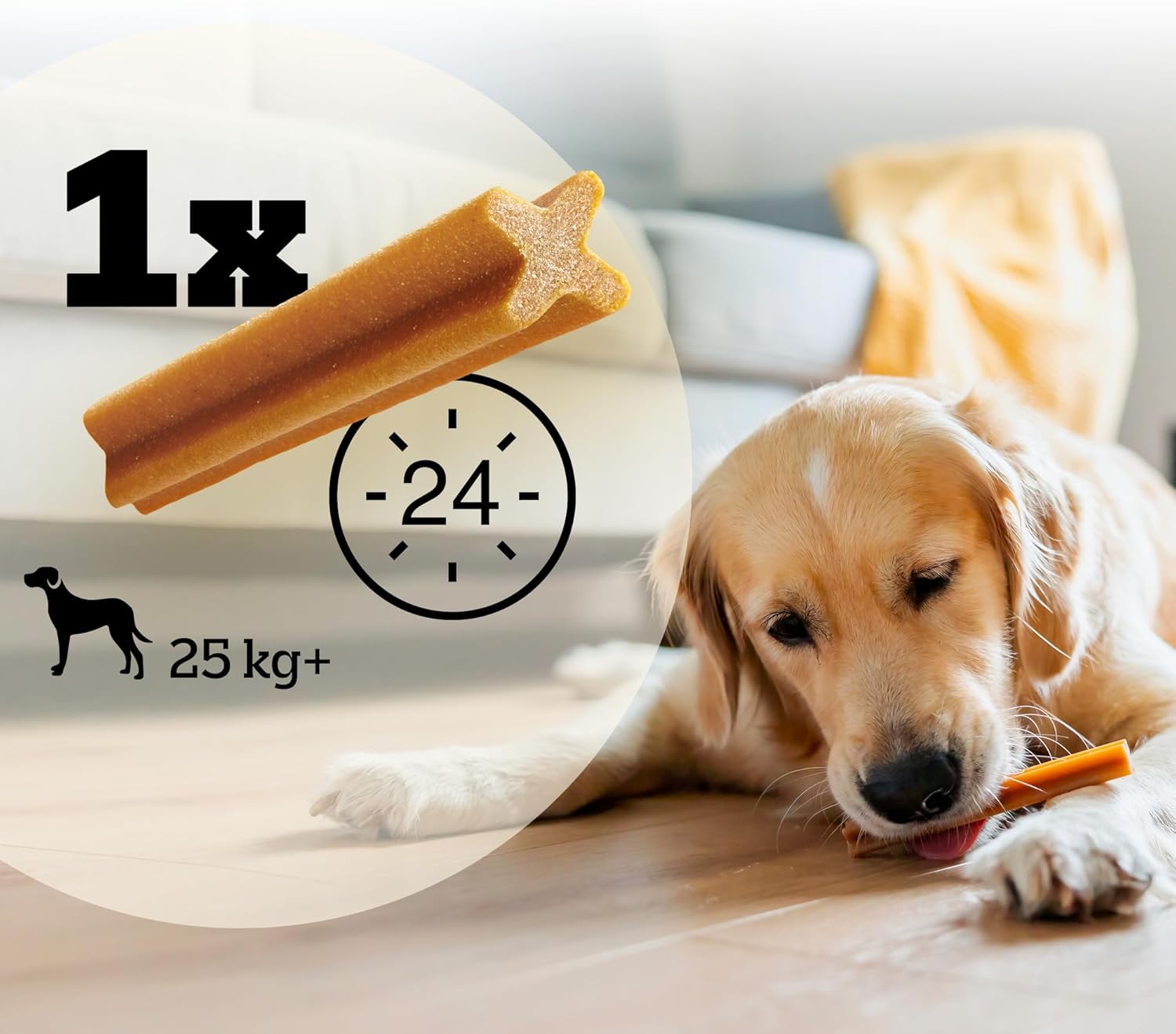 • Дъвчаща закуска PEDIGREE за кучета със среден размер от 10 до 25 кг, препоръка за хранене: 1 дъвчаща кост дневно, благодарение на 8 индивидуални опаковки, лакомствата за грижа за зъбите остават свежи по-дълго.