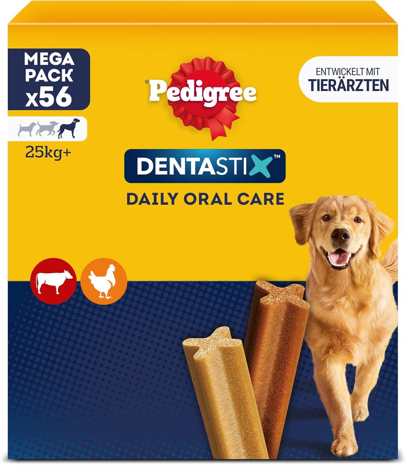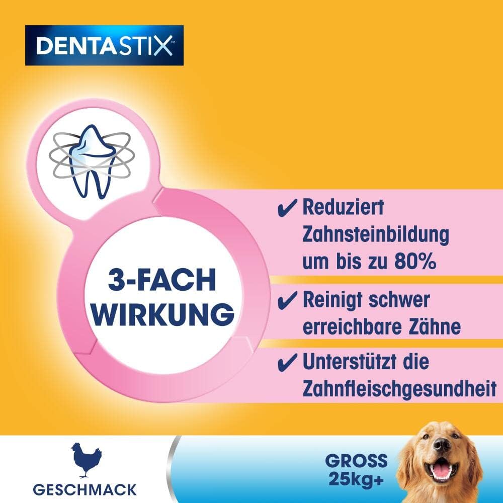 Pedigree DentaStix лакомство за кучета за големи кучета (25 кг+), лакомство за грижа за зъбите с пилешко и говеждо месо, 1 опаковка от 56 броя (1 x 2,16 кг)