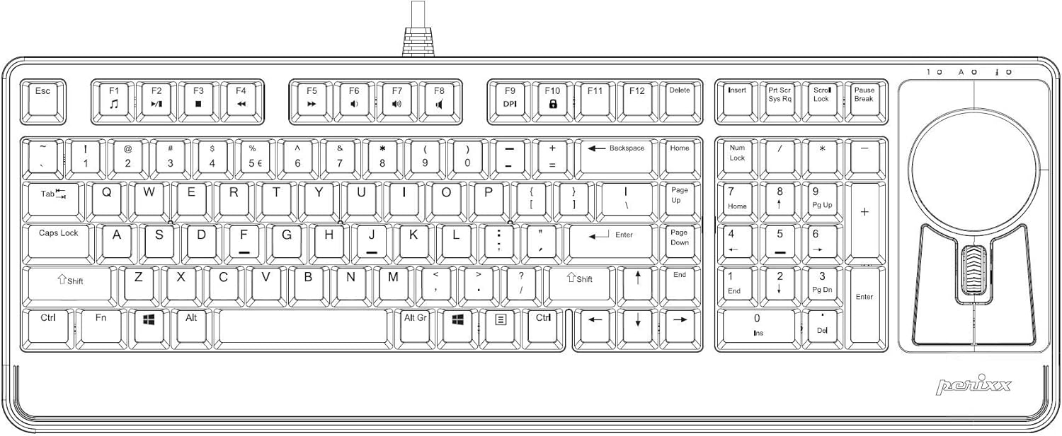 Perixx Periboard-522 механична клавиатура с тракбол - 2.17-инчов голям тракбол - накланящо се скролиращо колело