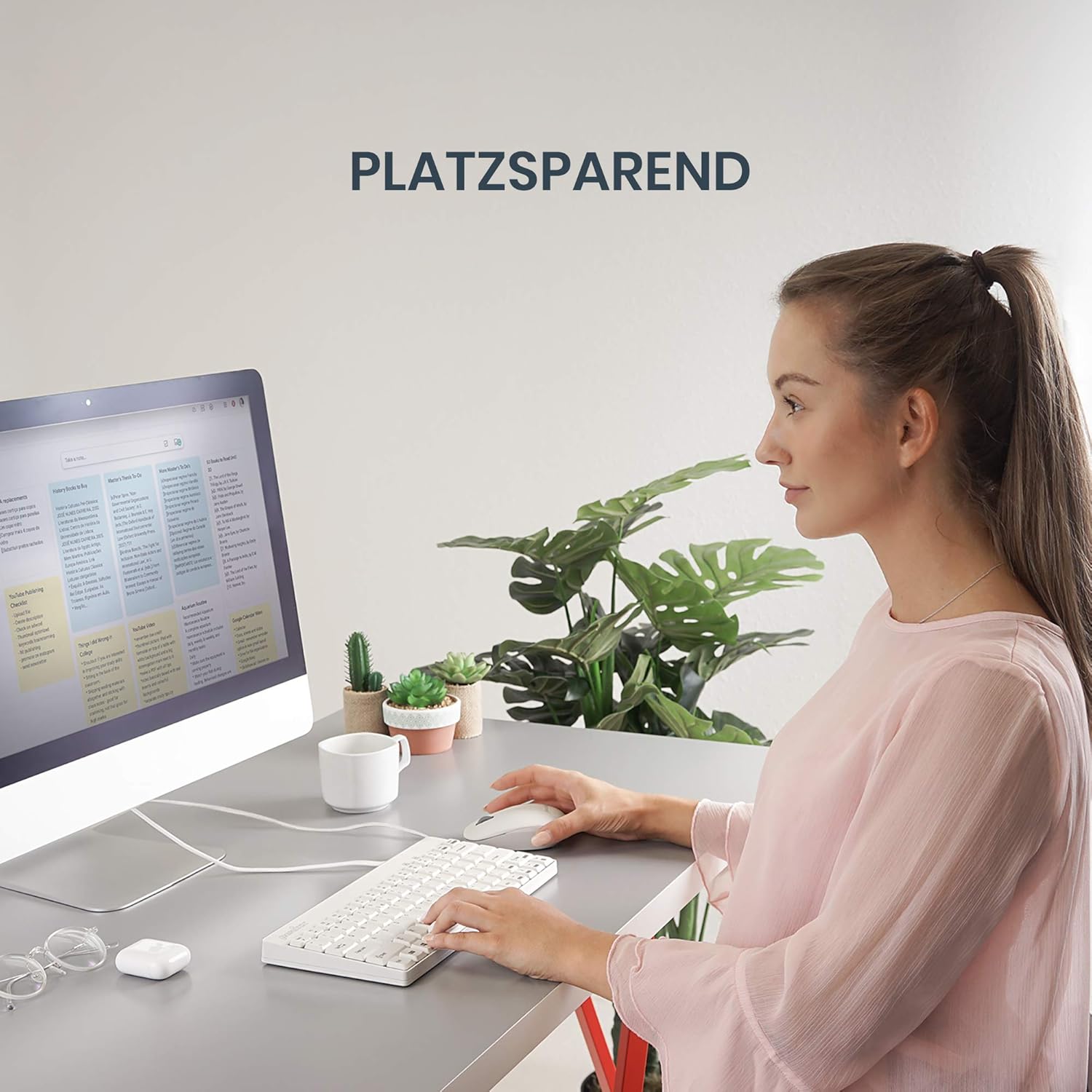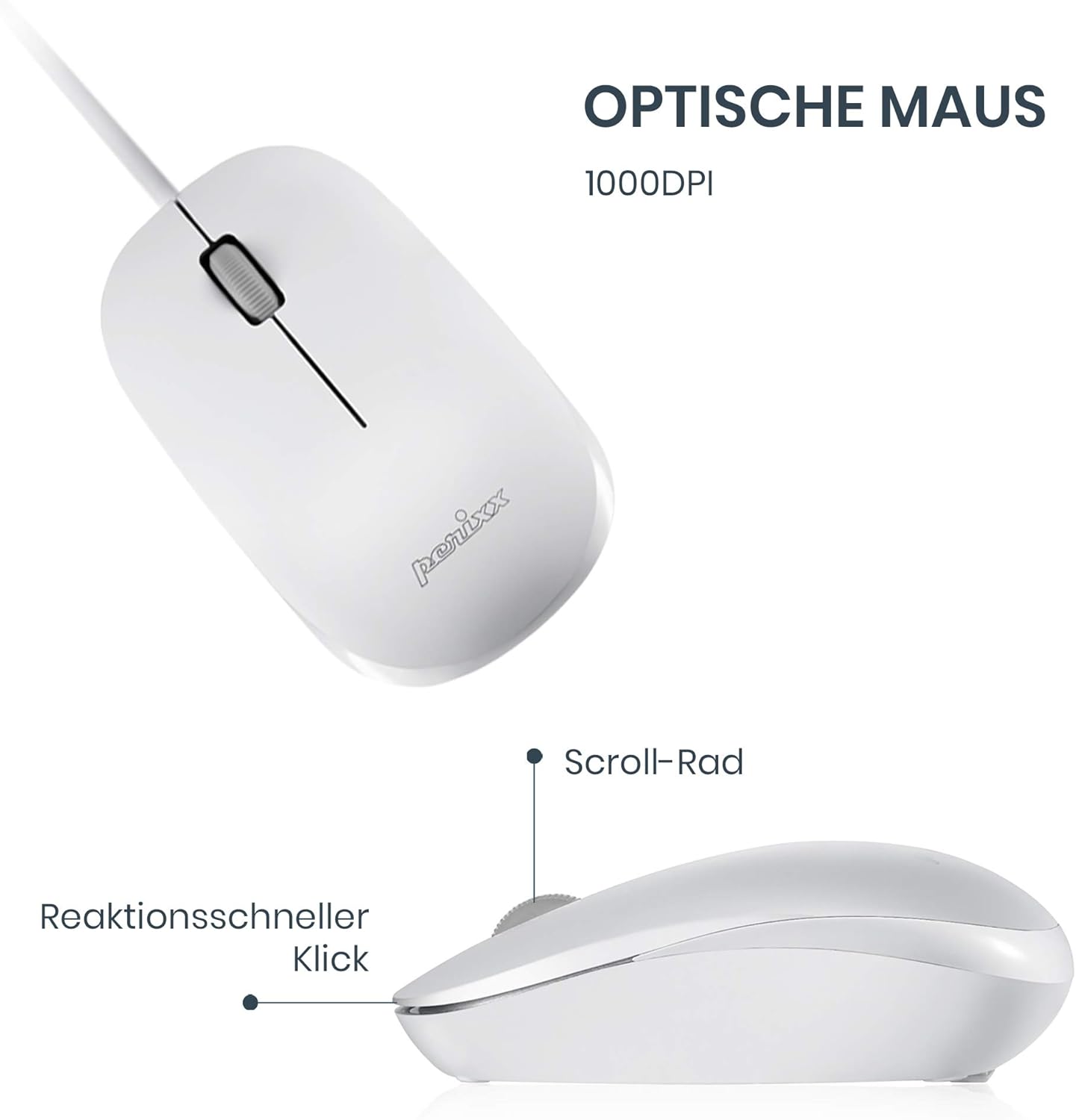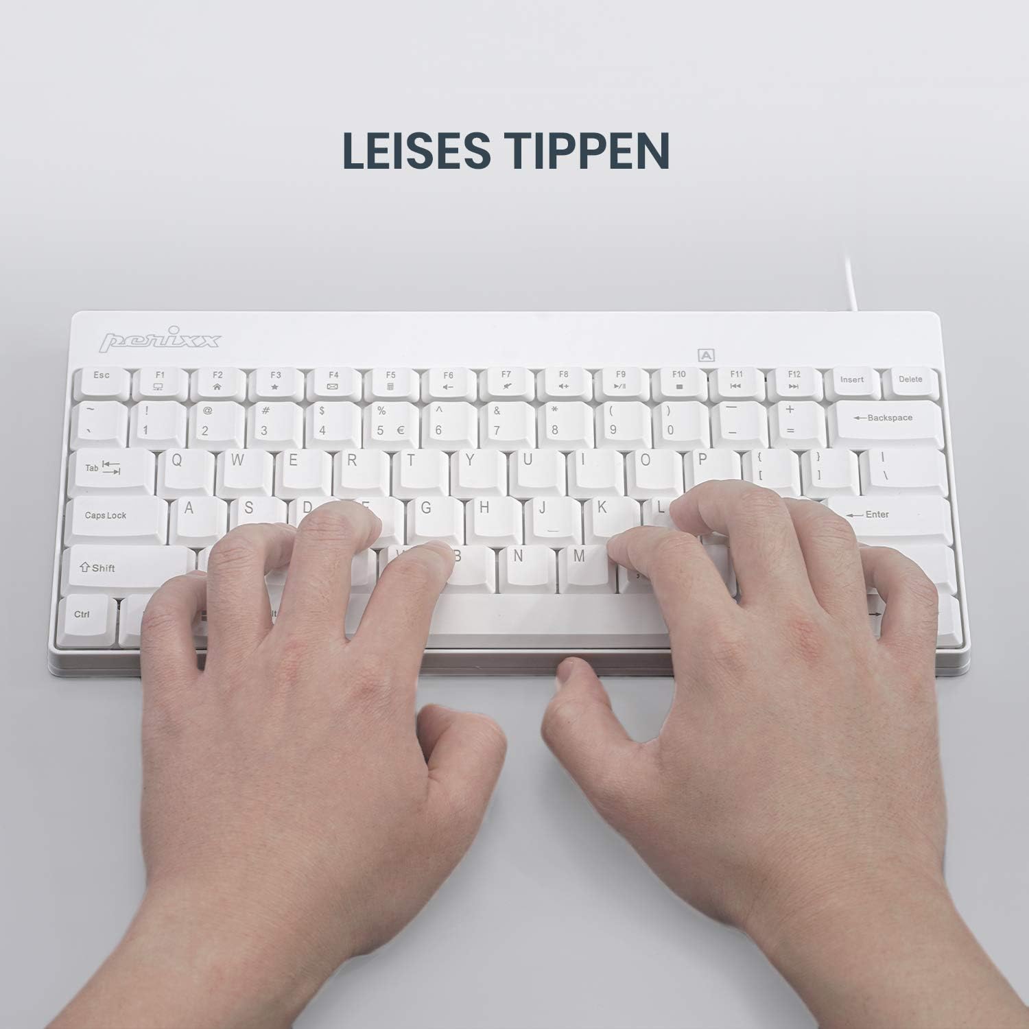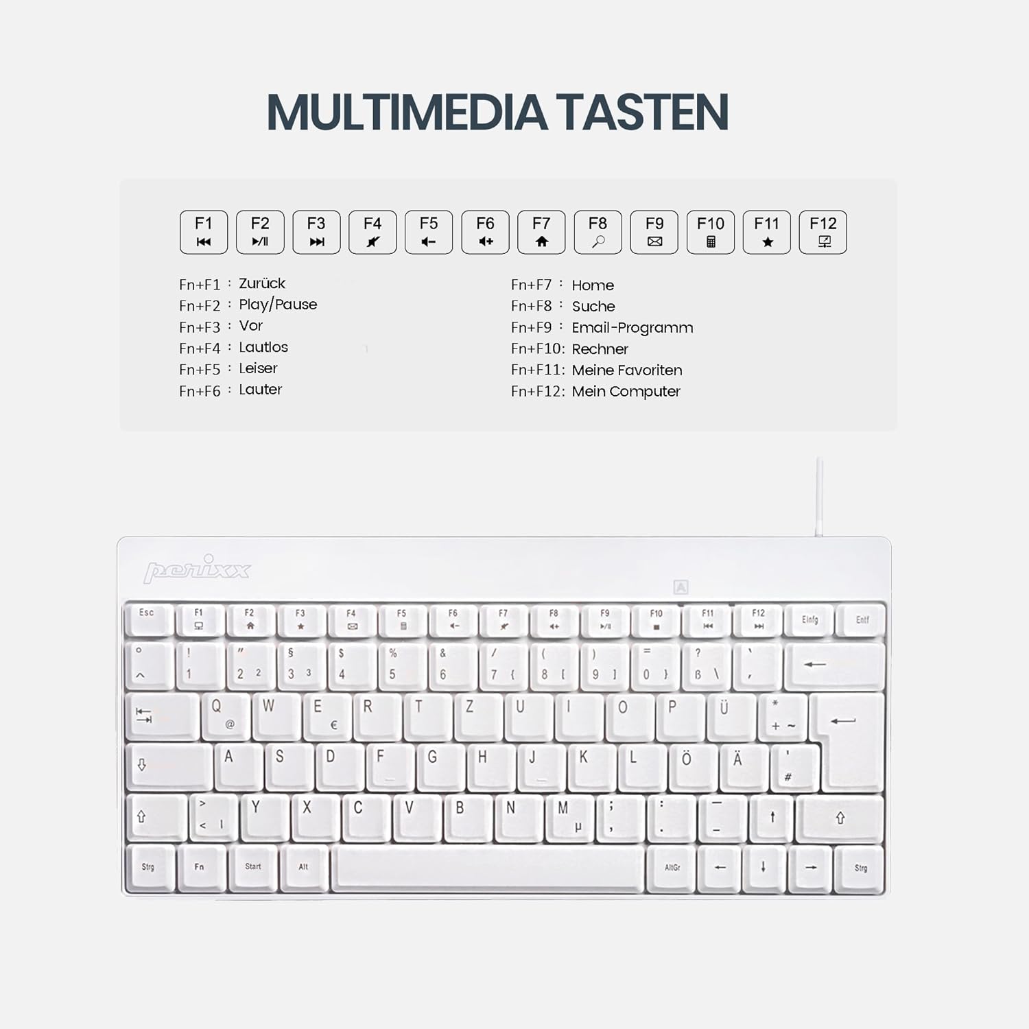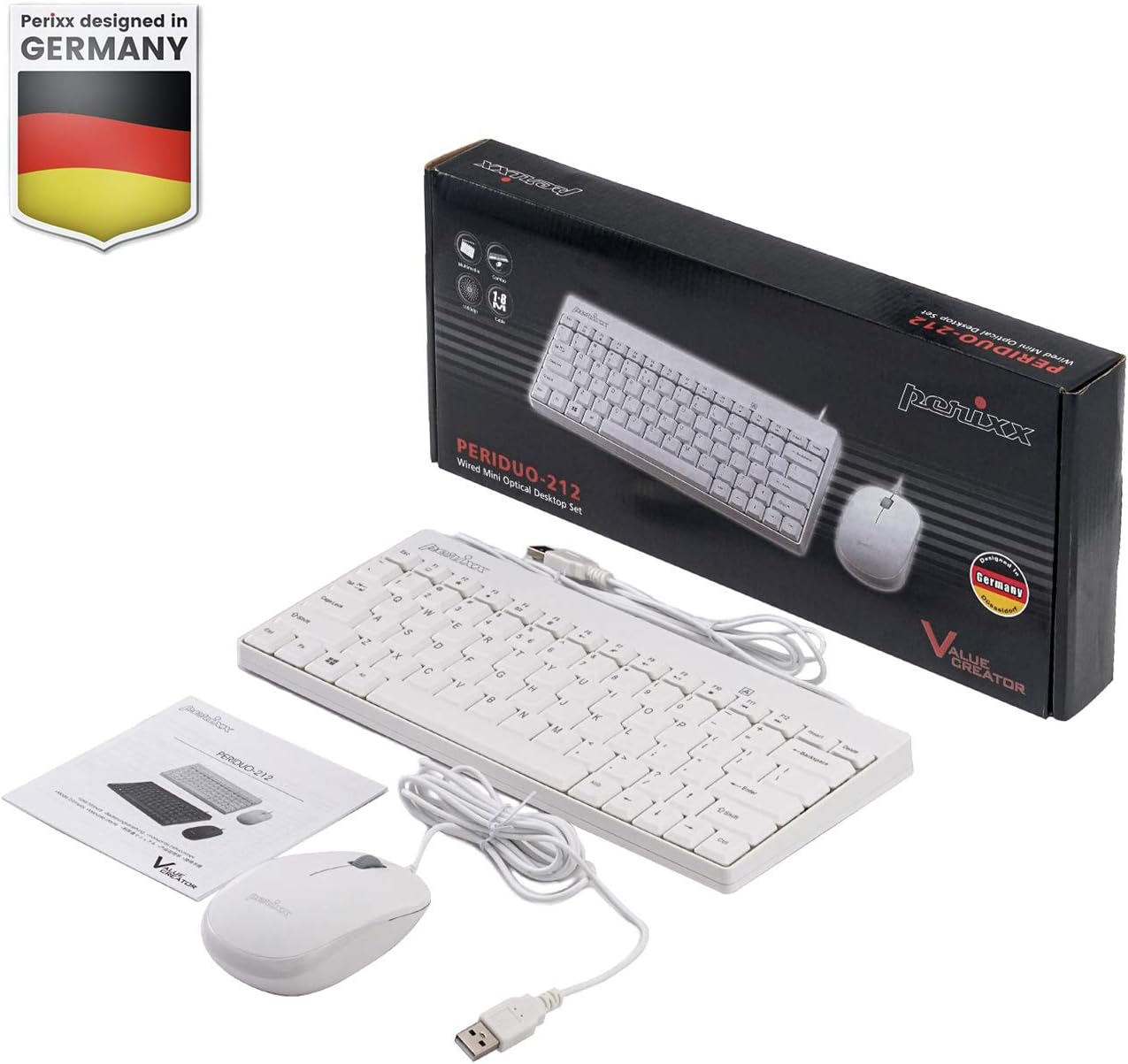 Perixx PERIDUO-212 Компактен мини комплект клавиатура и мишка, USB кабел, немска подредба, бял