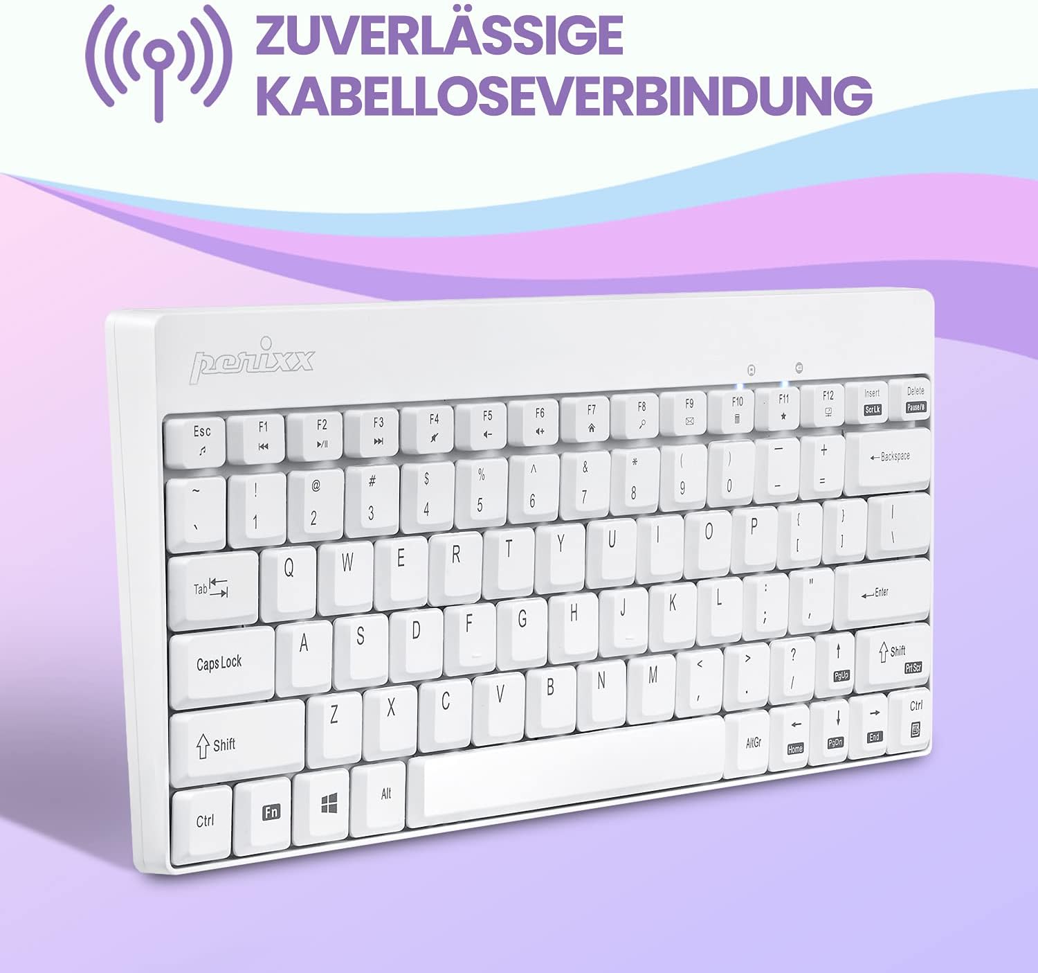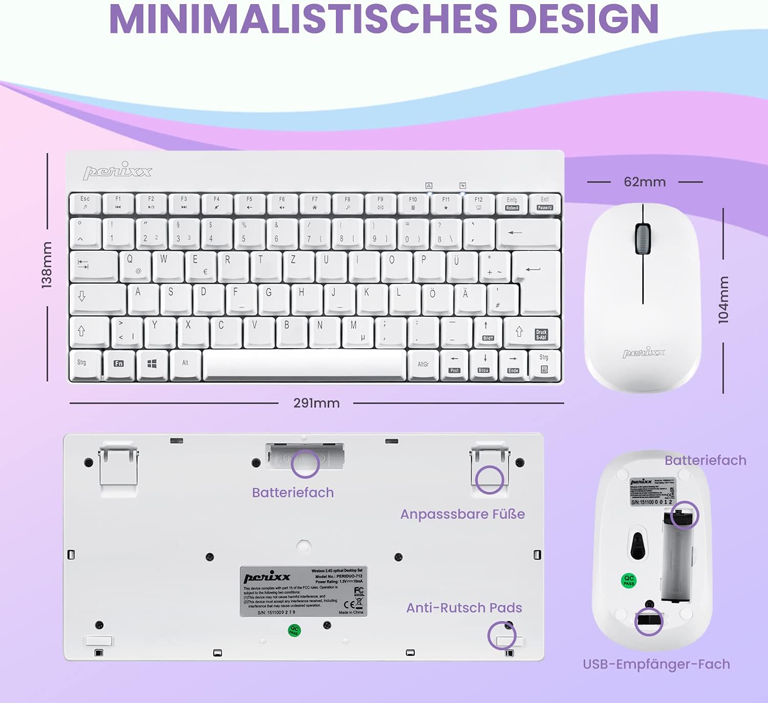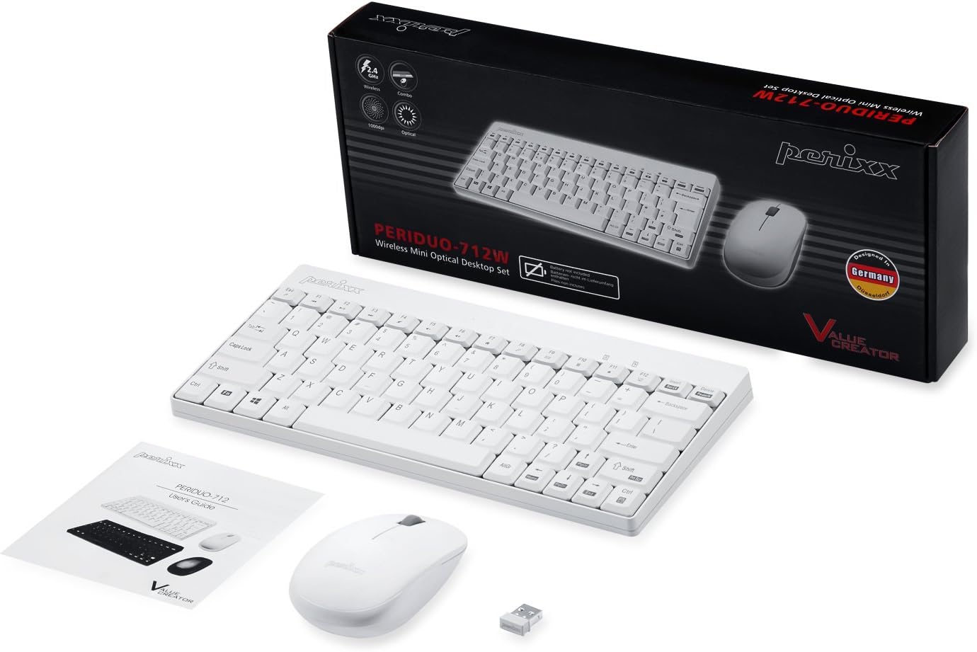 Perixx Periduo-712 804 Комплект мини клавиатура и мишка, безжична 2.4 GHz с нано приемник, черна, лека и малка, QWERTZ, немска подредба, черна, черна