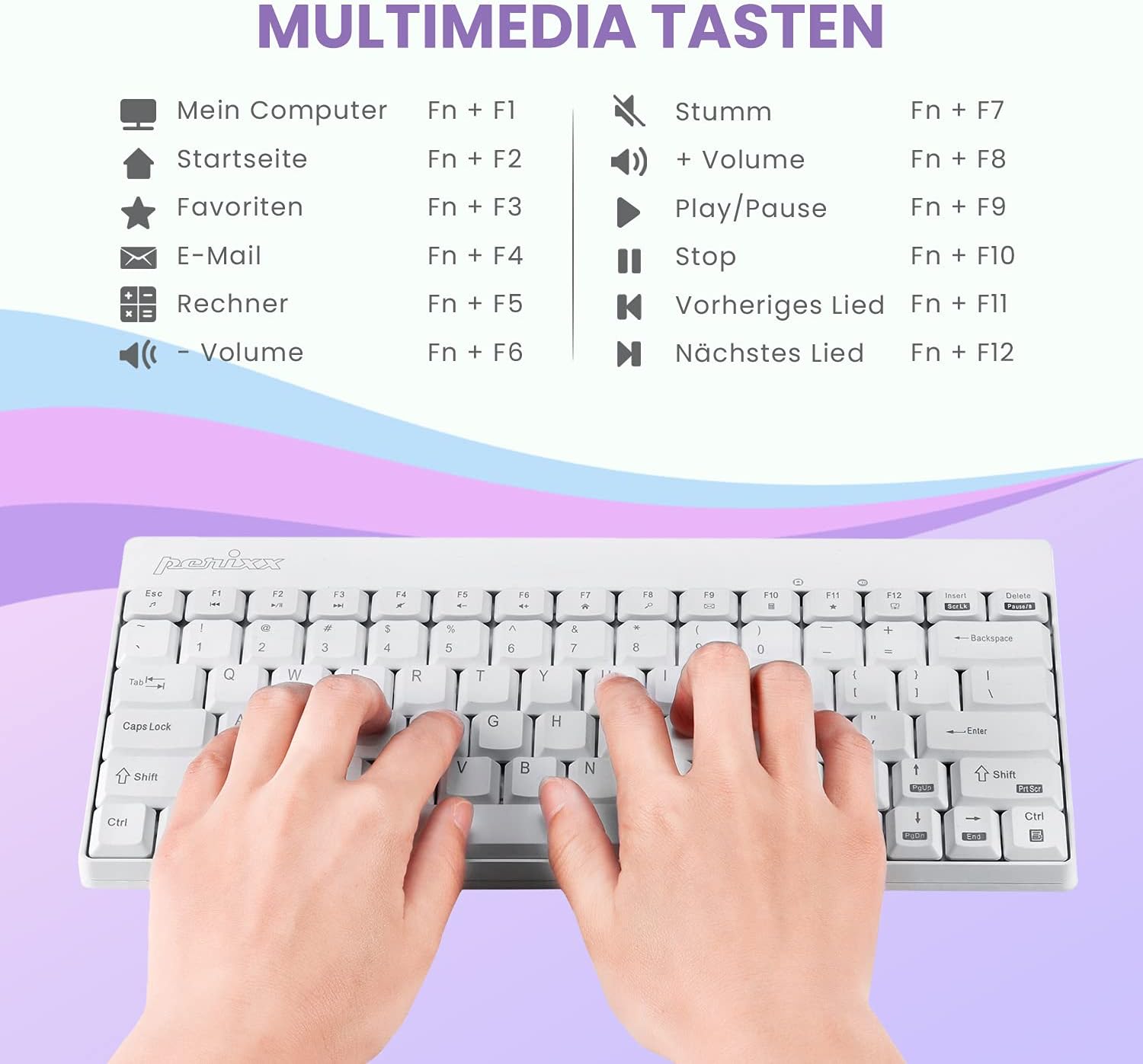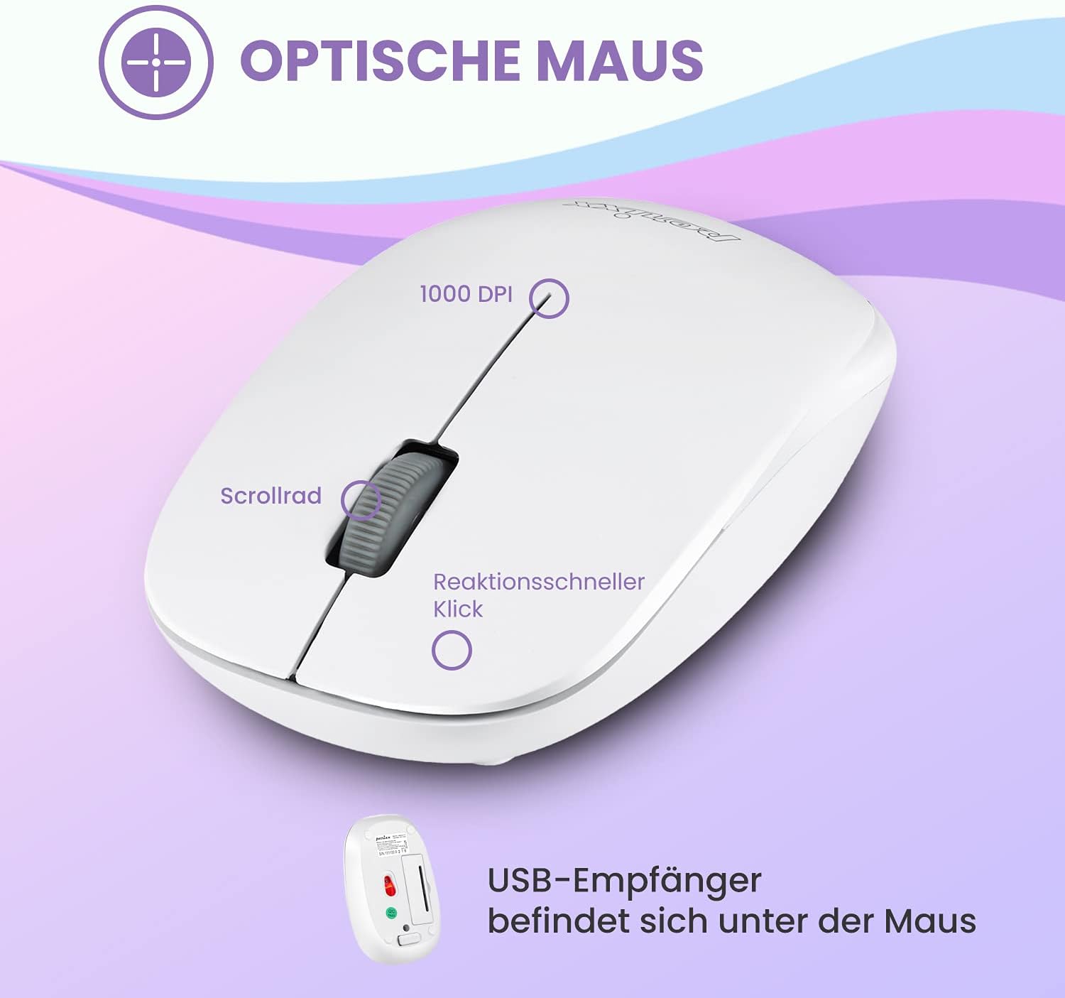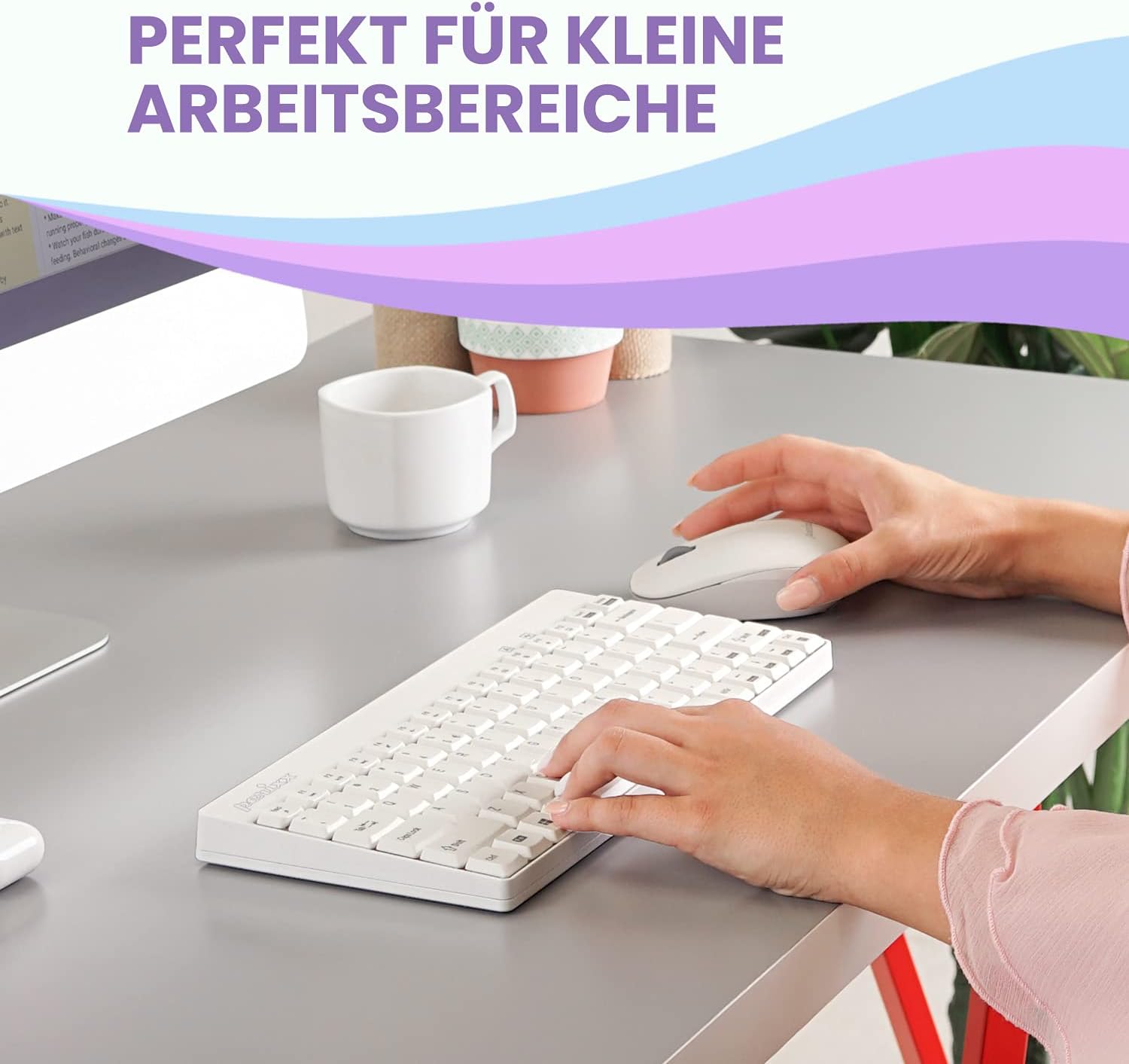 Perixx Periduo-712 804 Комплект мини клавиатура и мишка, безжична 2.4 GHz с нано приемник, черна, лека и малка, QWERTZ, немска подредба, черна, черна