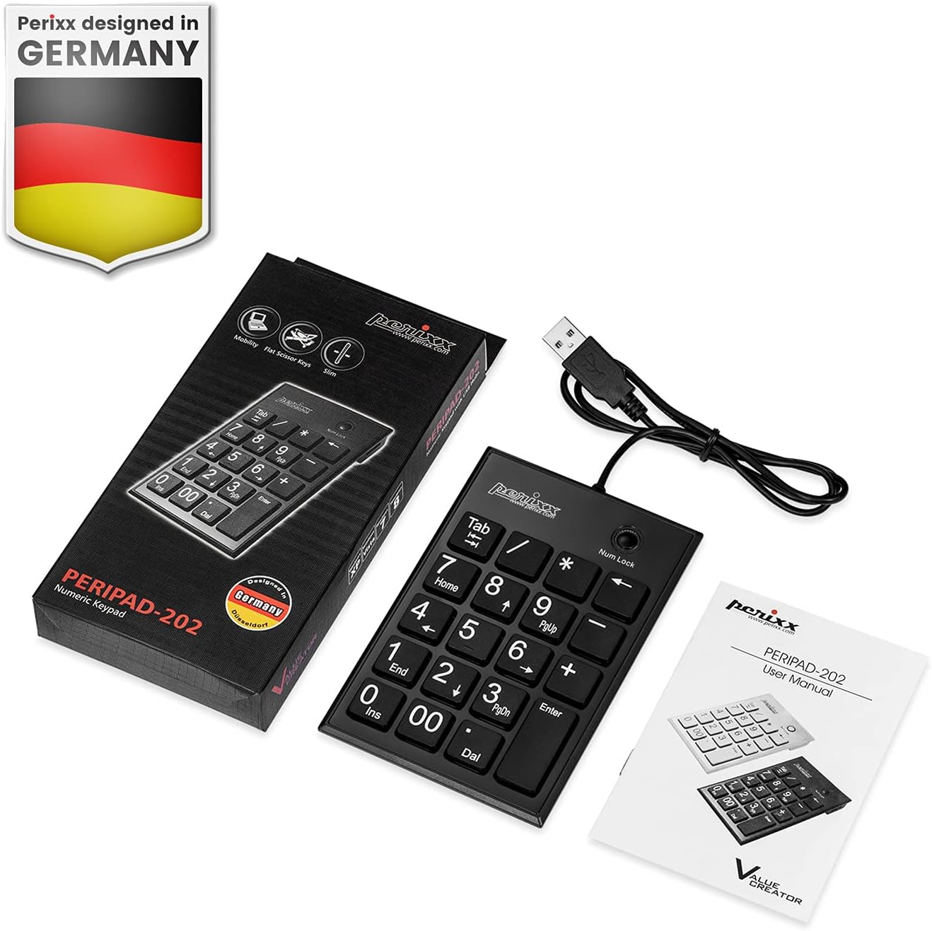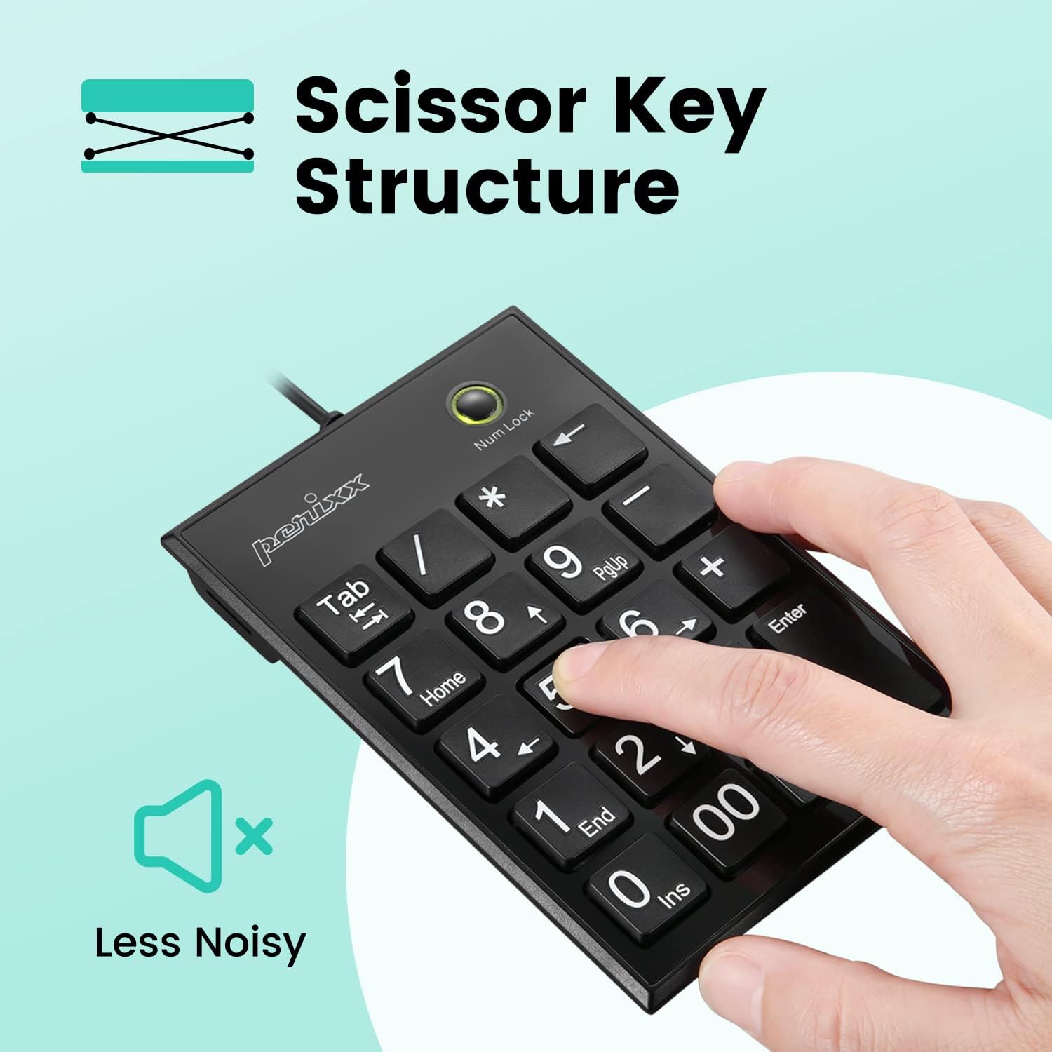 Perixx PERIPAD-202UB, Цифрова клавиатура за лаптоп - USB - Функция Tab клавиш - Пълен размер 19 клавиша - Големи букви - Безшумни клавиши тип X ножица - Черен