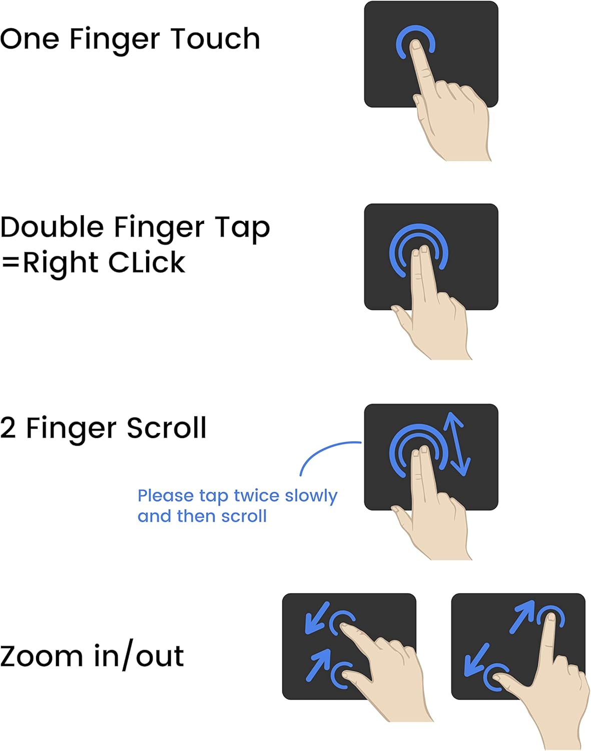 • Функция за мултитъч - плъзгане с един пръст, двойно щракване, превъртане с два пръста, докосване с един пръст, плъзгане с подложка и увеличаване/намаляване на мащаба