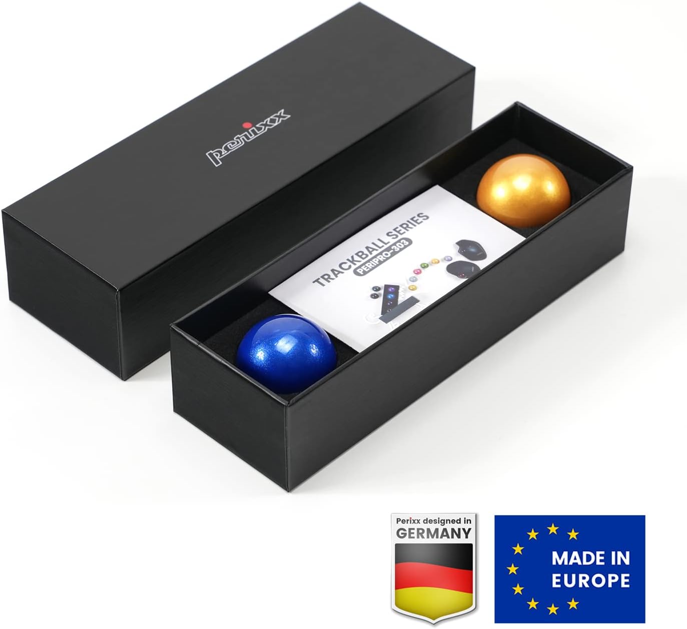 Perixx Peripro-303X2B 1.34-инчов тракбол, пакет от 2 - резервна топка за M570, M575, PERIMICE-517/520/717/720 и други 1.34-инчови тракбол мишки - гланцово синьо и златно