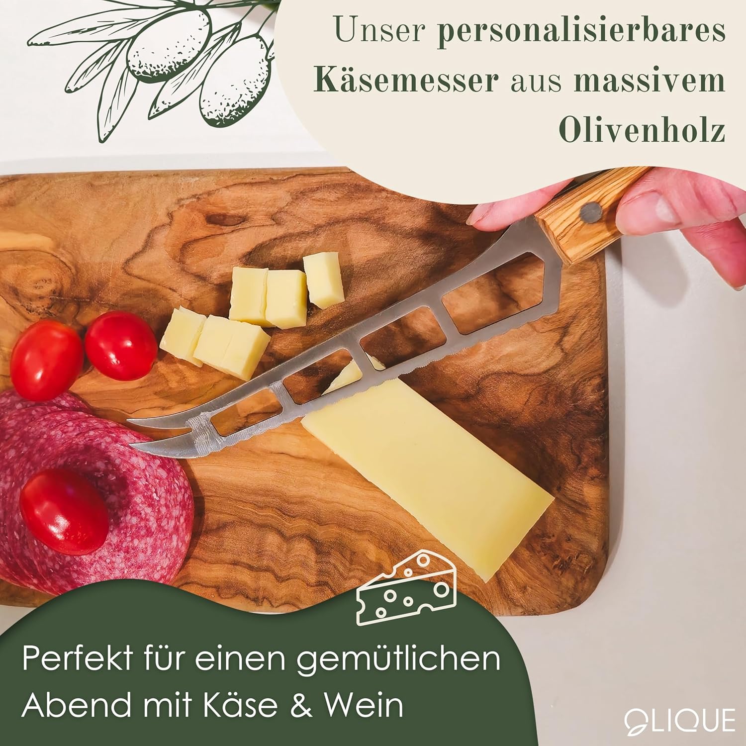 Персонализиран нож за сирене, маслиново дърво - Висококачествен нож за сирене Solingen с назъбено острие като уникален подарък