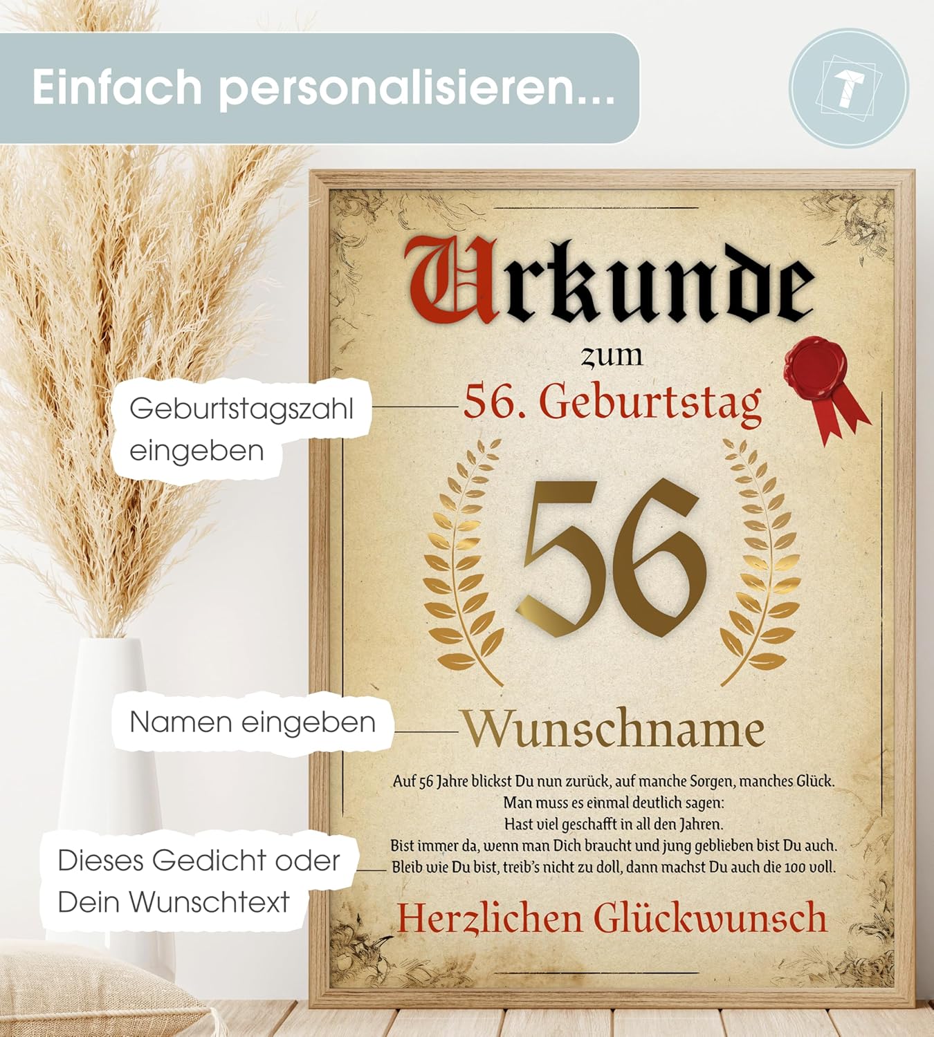 Персонализиран сертификат Papierschmiede® Подарък за 56-ти рожден ден за жени и мъже, картичка за рожден ден за 56 години, подарък за рожден ден, сертификат за 56-ти рожден ден, винтидж, 1969 г.