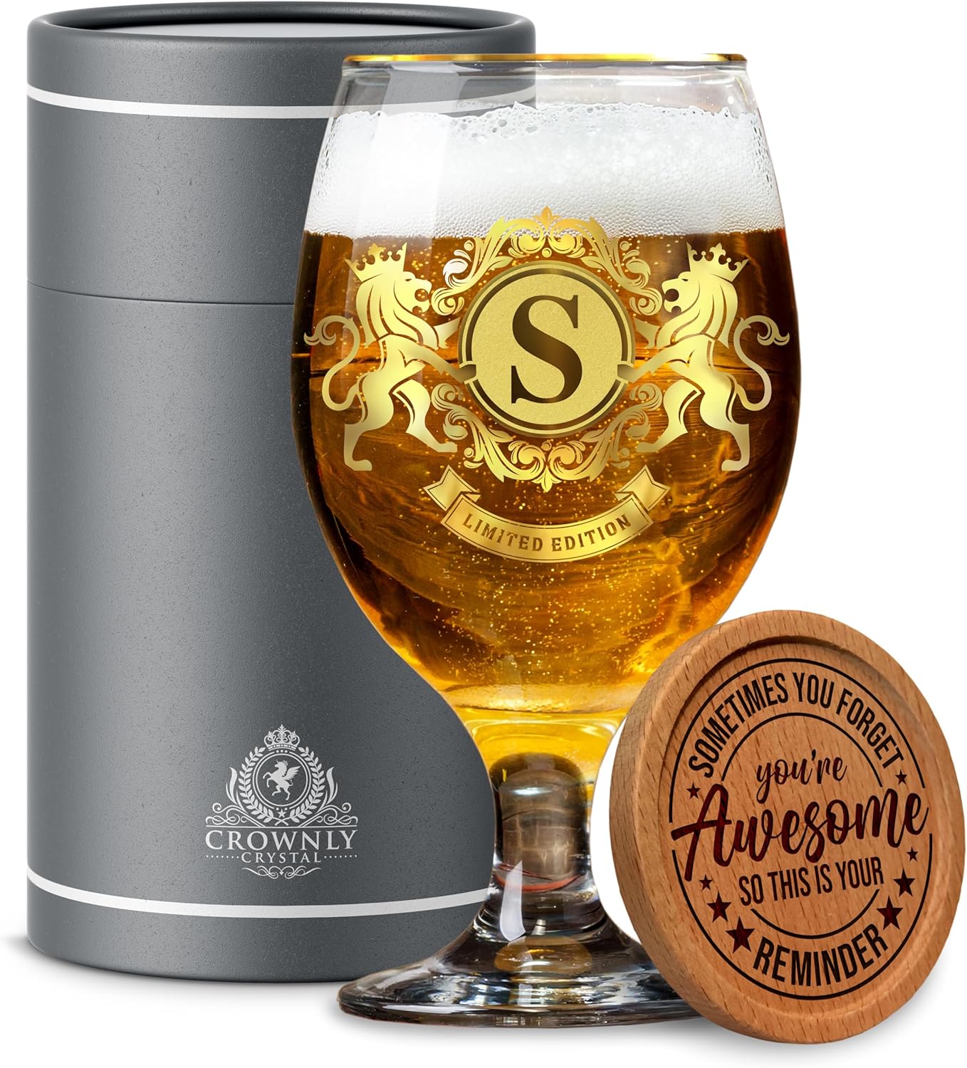 • ПОДАРЪЧНА КУТИЯ: Чашата се предлага в кутия заедно с дървена подложка. Този персонализиран подарък за мъже - чаша за бира, е представен в луксозна подаръчна кутия, далеч по-добра от другите стандартни кутии. Това е представителен и ценен подарък. Получателят ще бъде изненадан и възхитен. Не е нужно да се притеснявате от драскотини или счупване. Чувствайте се напълно уверени в покупката си.