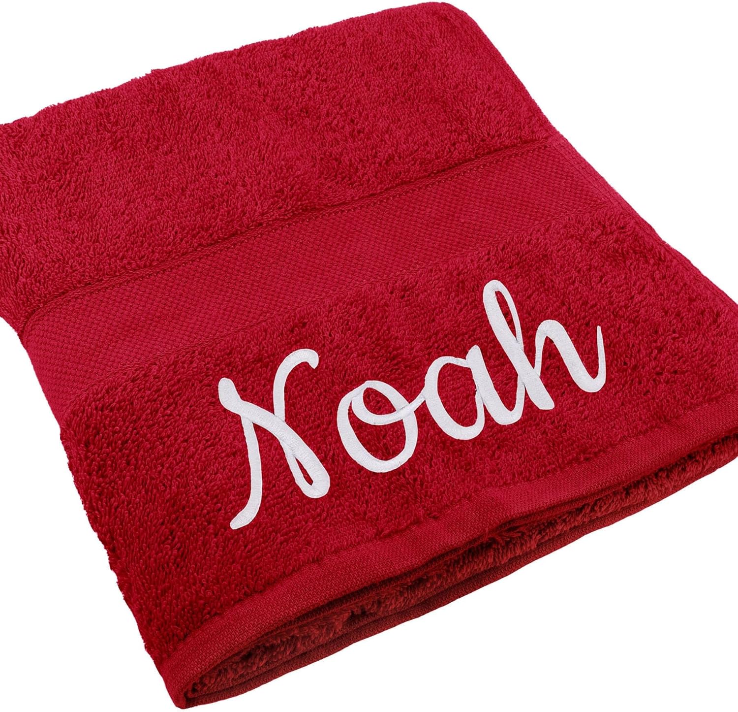Персонализирана кърпа за баня Juist с бродирано име или желан текст, 100% памук, 100 x 200 см, червена