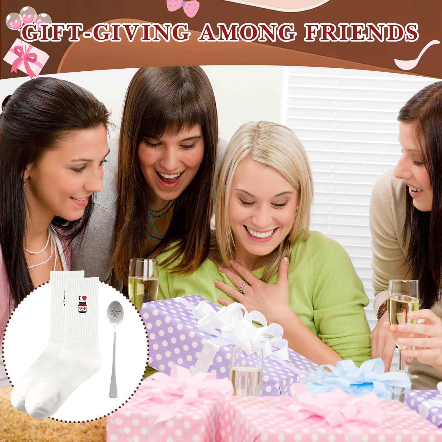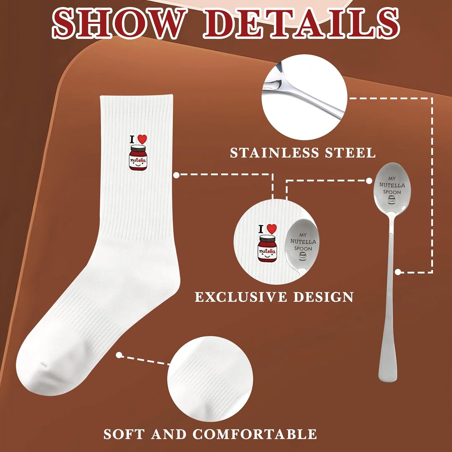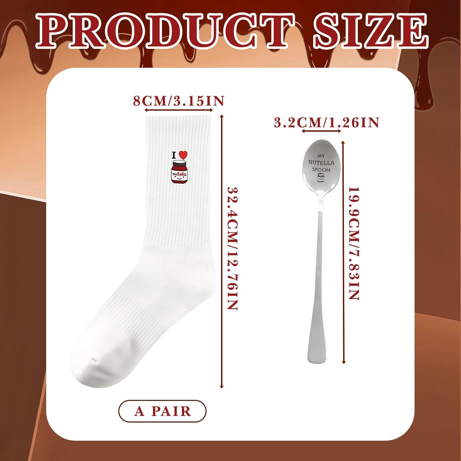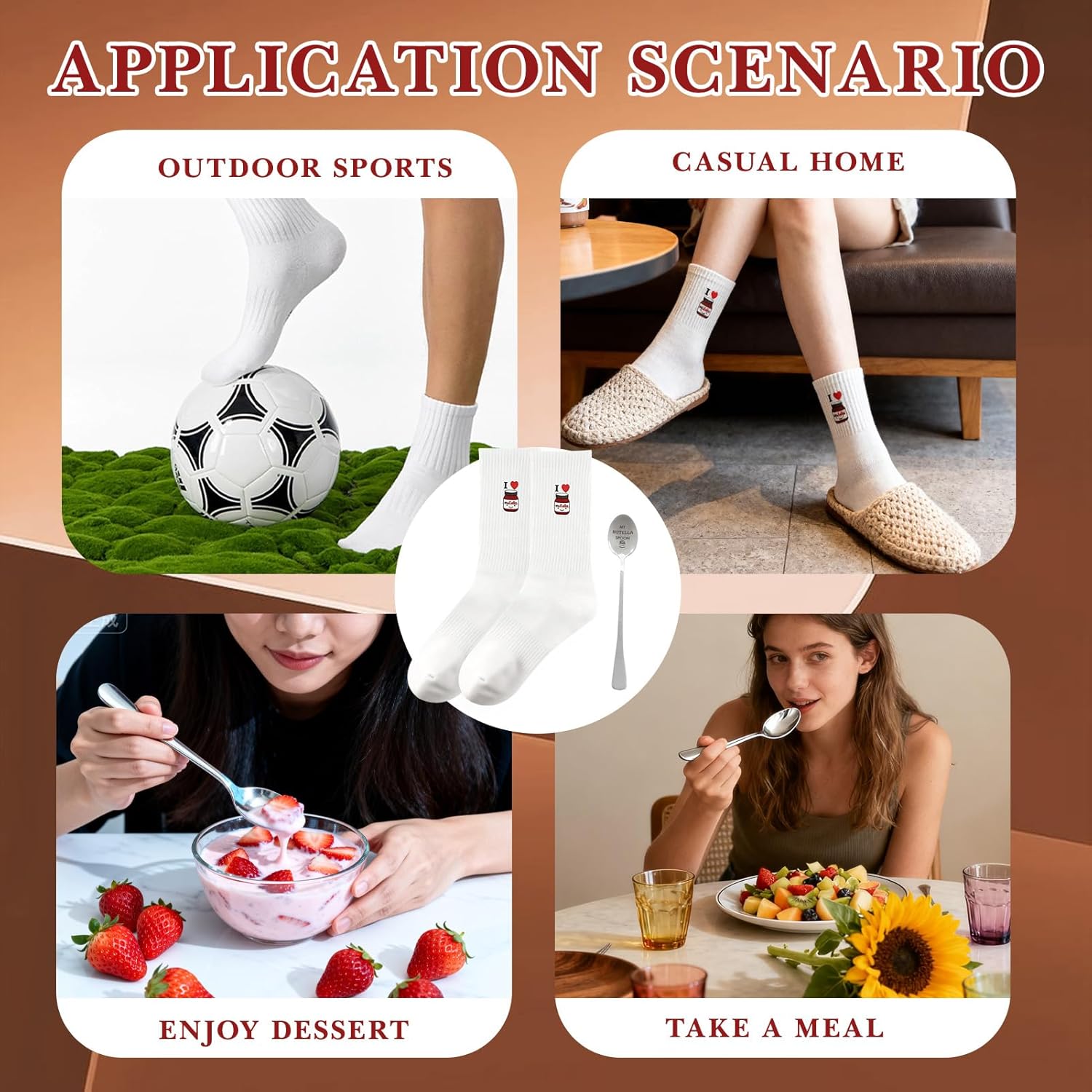 【Подаръчен комплект】: Включва чифт чорапи и лъжица за десерт от неръждаема стомана, и двете с мотив фъстъчено масло. Перфектен подарък за любителите на десерти.