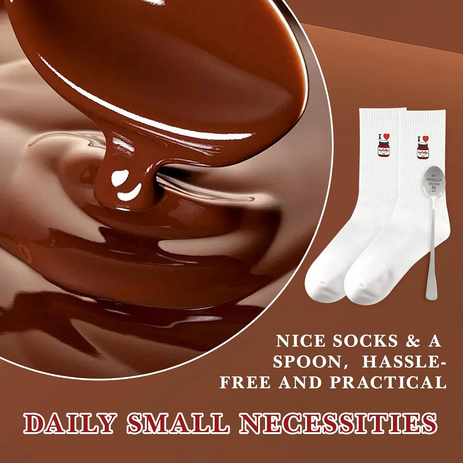Персонализирана лъжица за шоколадов намаз, лъжица за шоколадов намаз с персонализирани чорапи, лъжица за десерт, забавни чорапи, персонализиран подарък за любители на шоколад