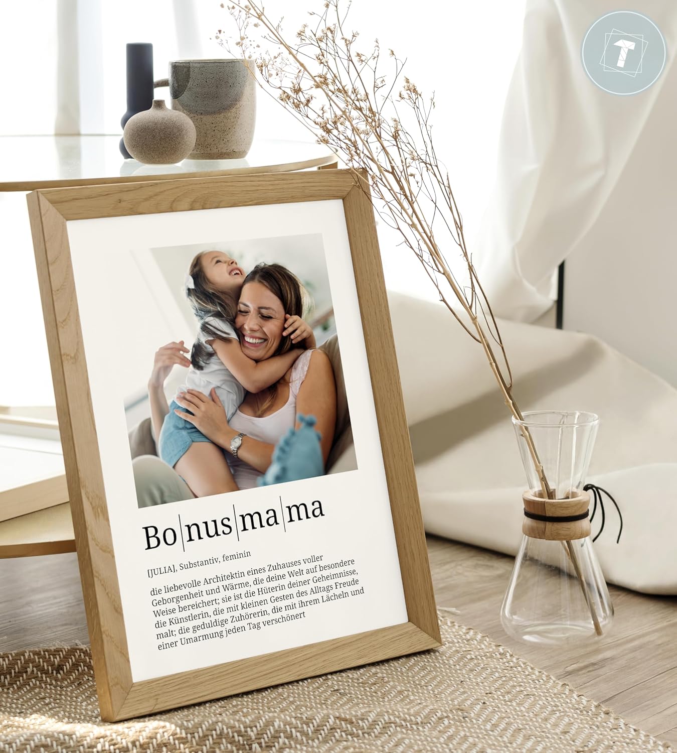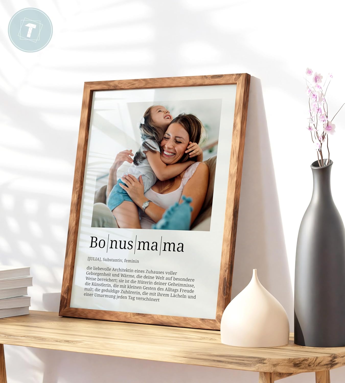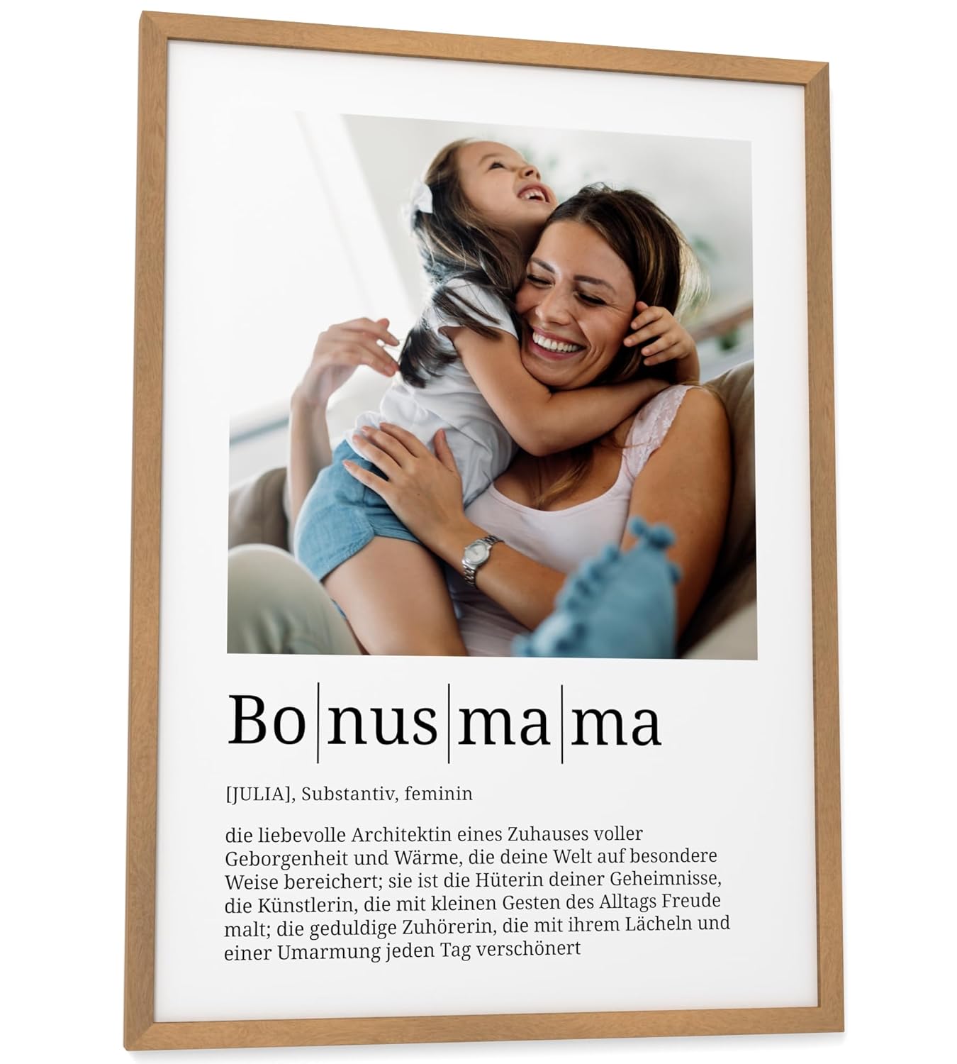 Персонализирани подаръци Papierschmiede® Bonus Mum Definition със снимка в DIN A3 (30 x 42 см) Избираема рамка Готова рамкирана лична снимка за мащеха за Деня на майката, Рожден ден