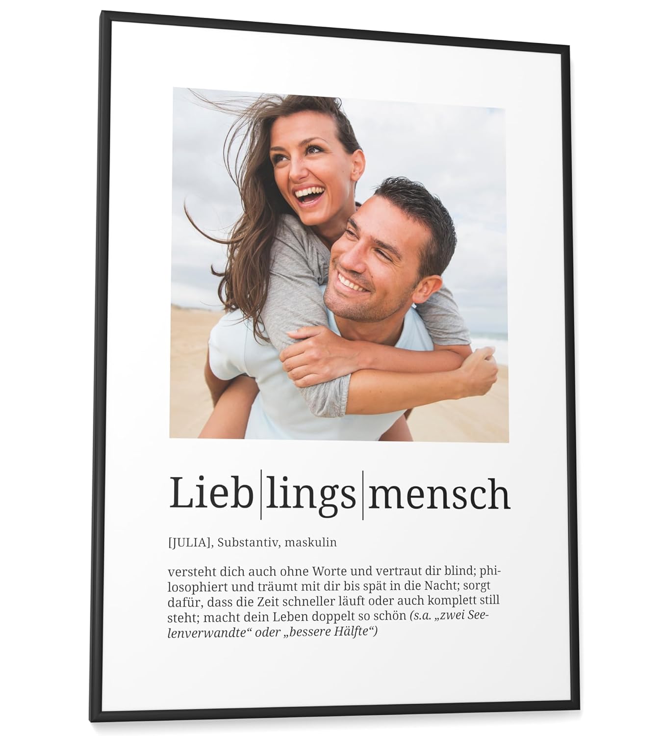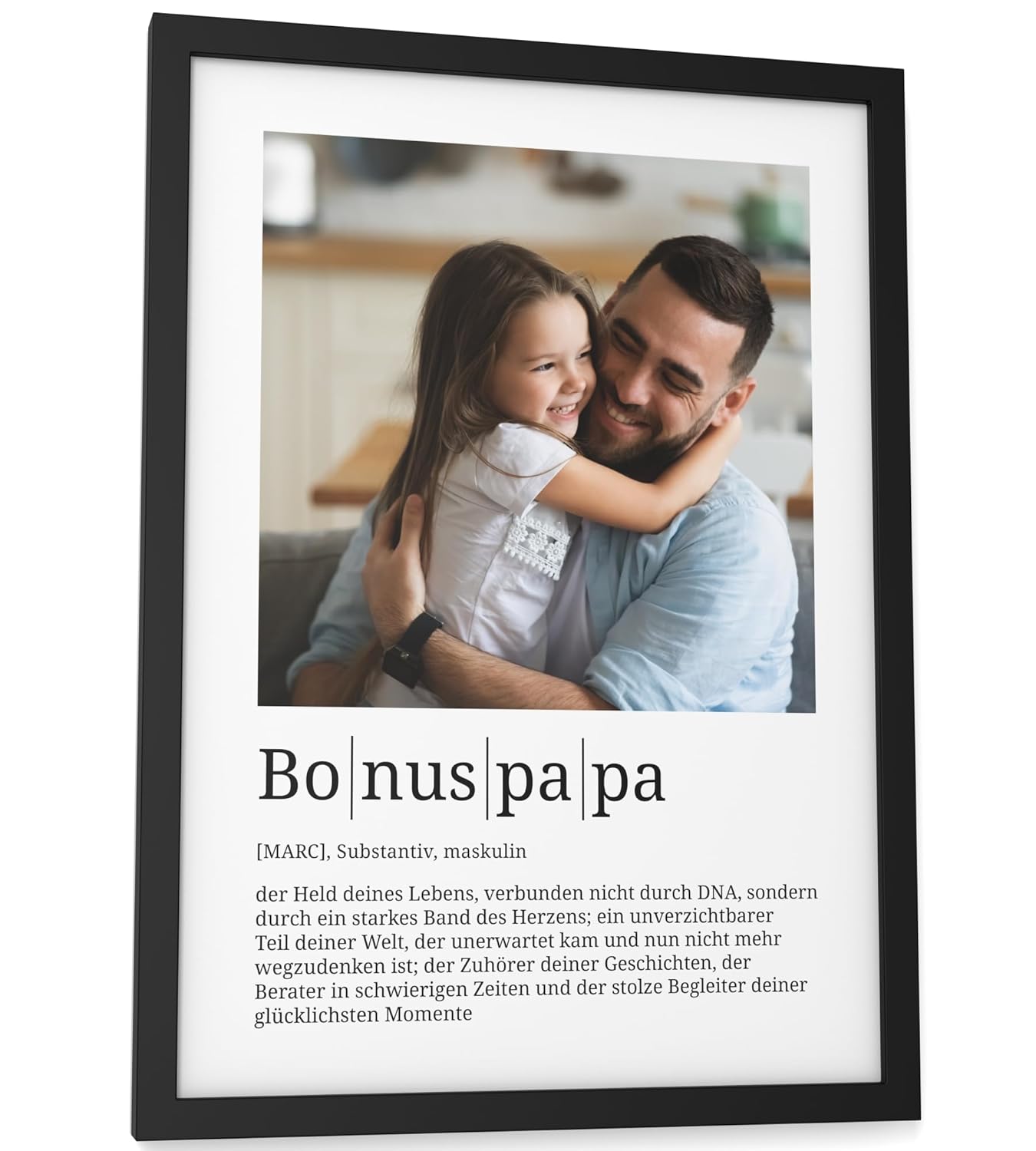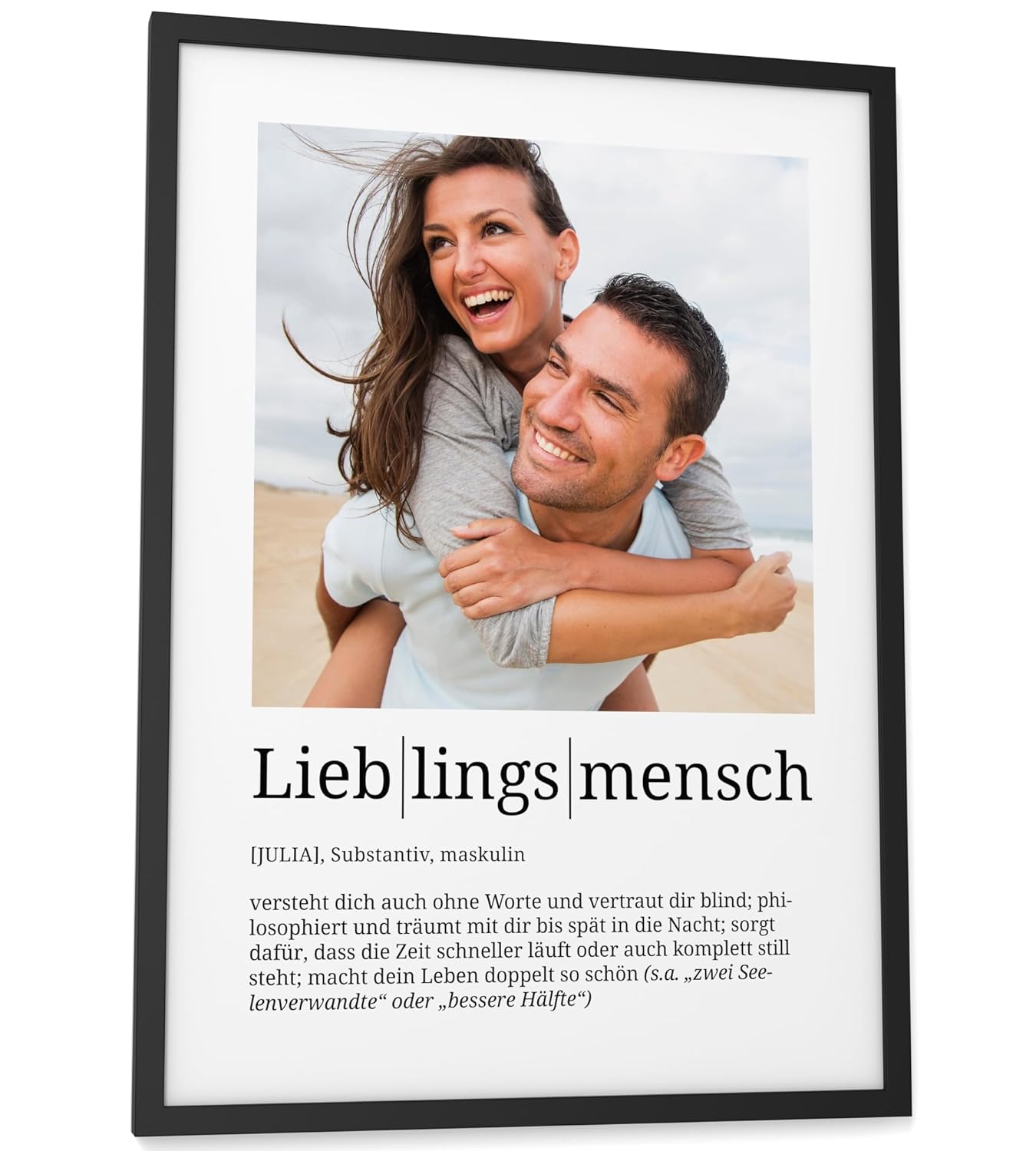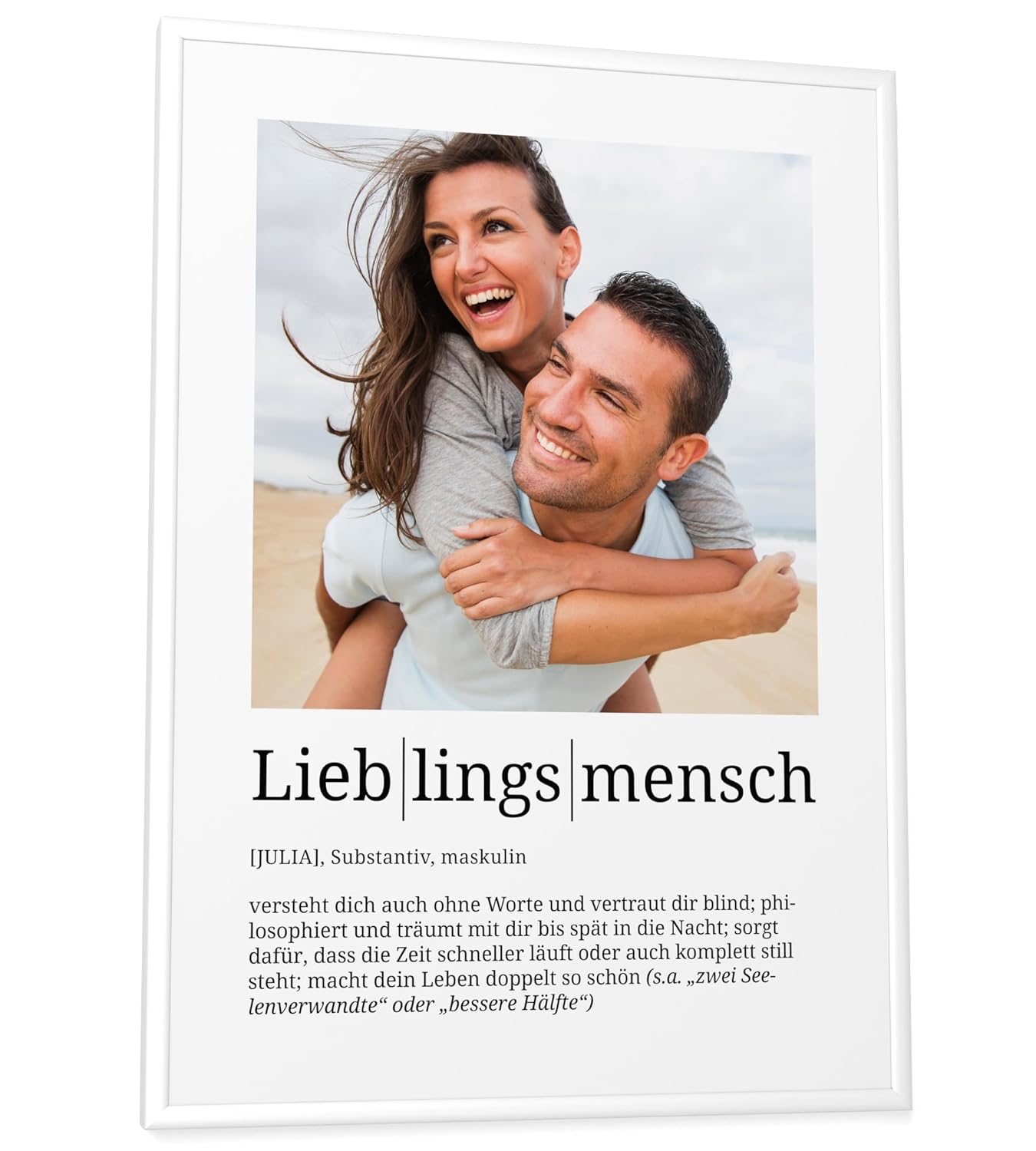 Персонализирани подаръци Papierschmiede® Любим човек, Дефиниция със снимка в DIN A4 (21 x 30 см) Избираема рамка, Готова за рамкиране, Персонална снимка като подарък за Коледа, рожден ден, годишнина