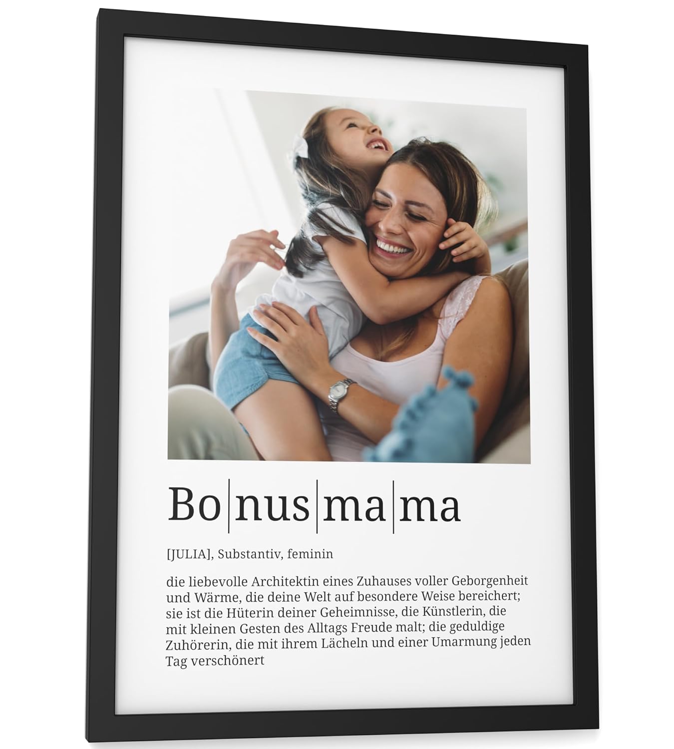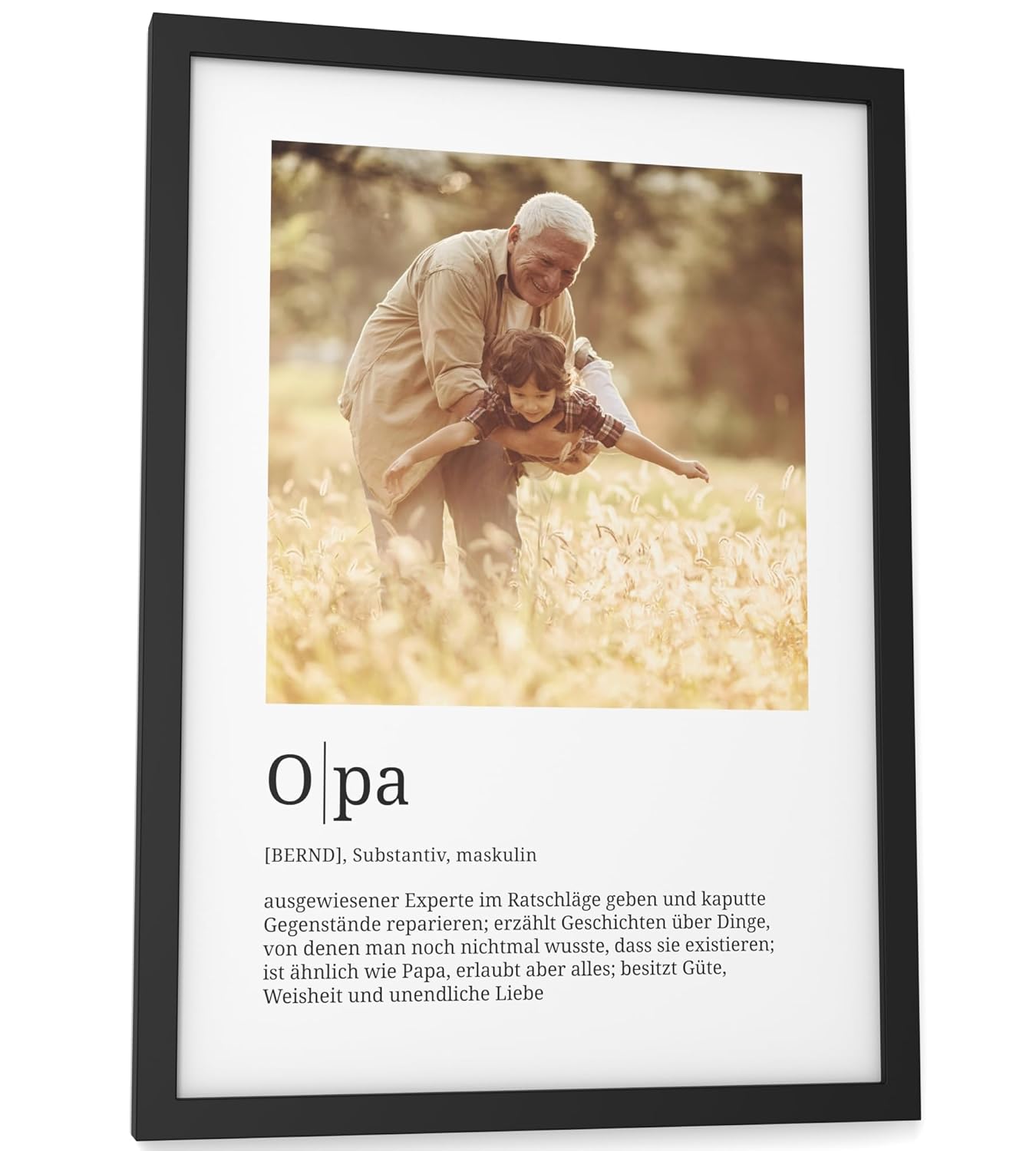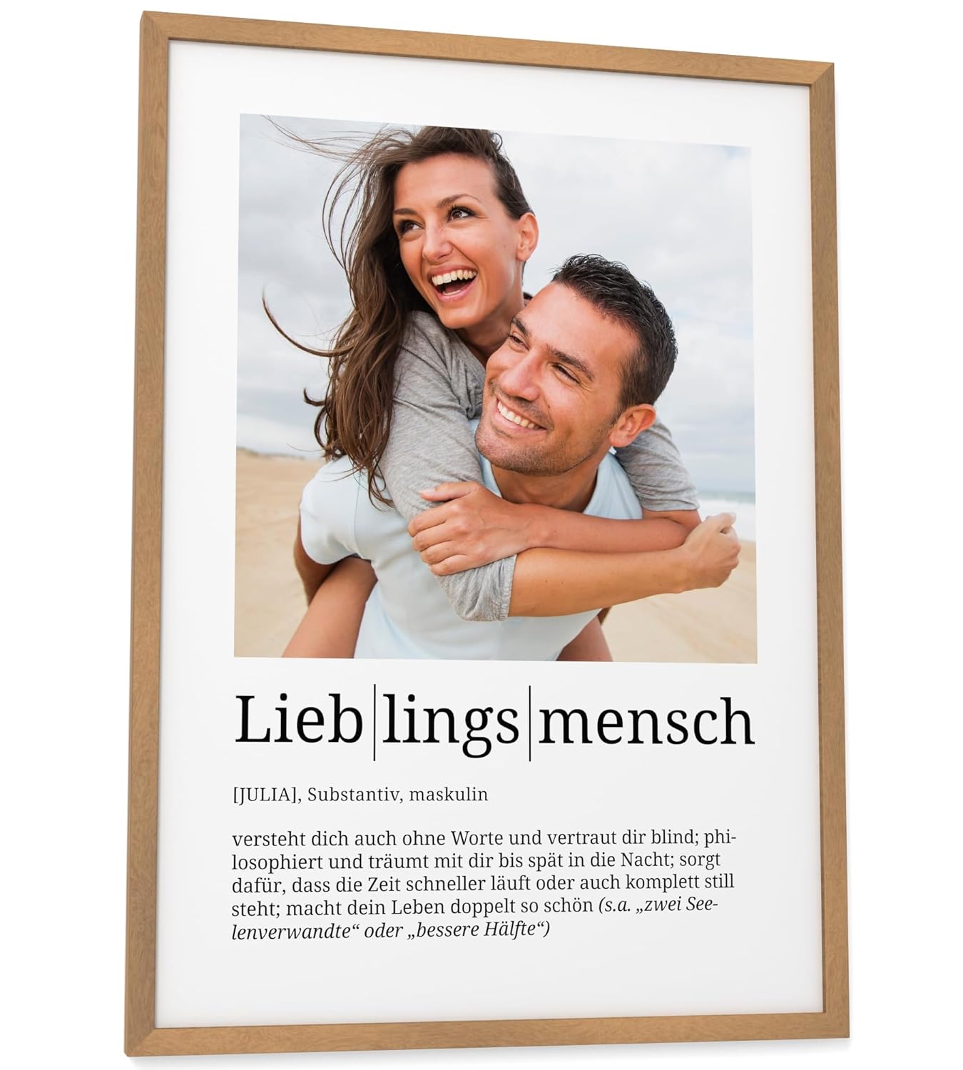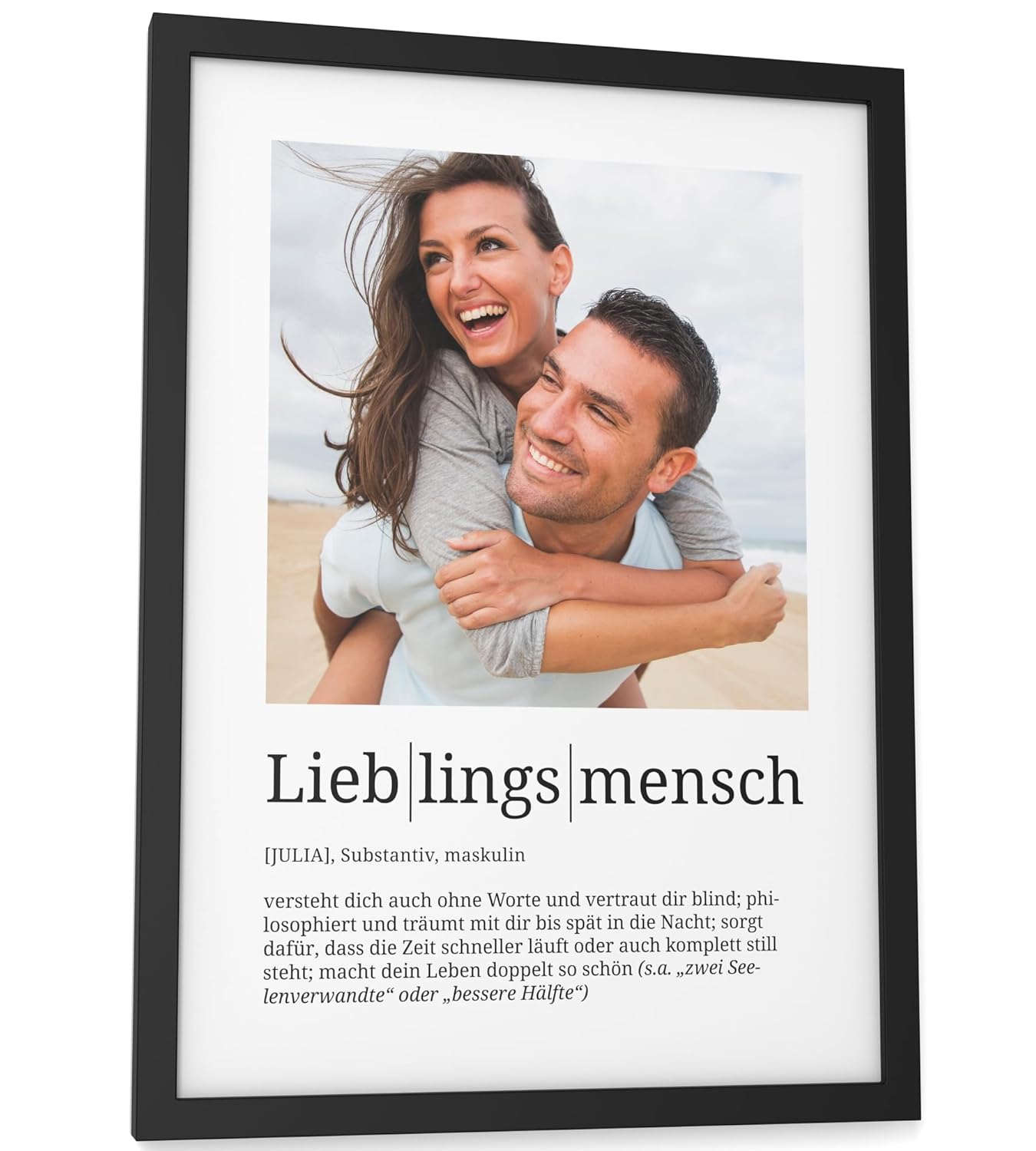 Персонализирани подаръци Papierschmiede® Любим човек, Дефиниция със снимка в DIN A4 (21 x 30 см) Избираема рамка, Готова за рамкиране, Персонална снимка като подарък за Коледа, рожден ден, годишнина
