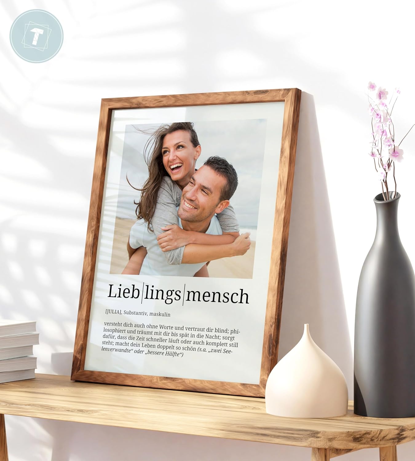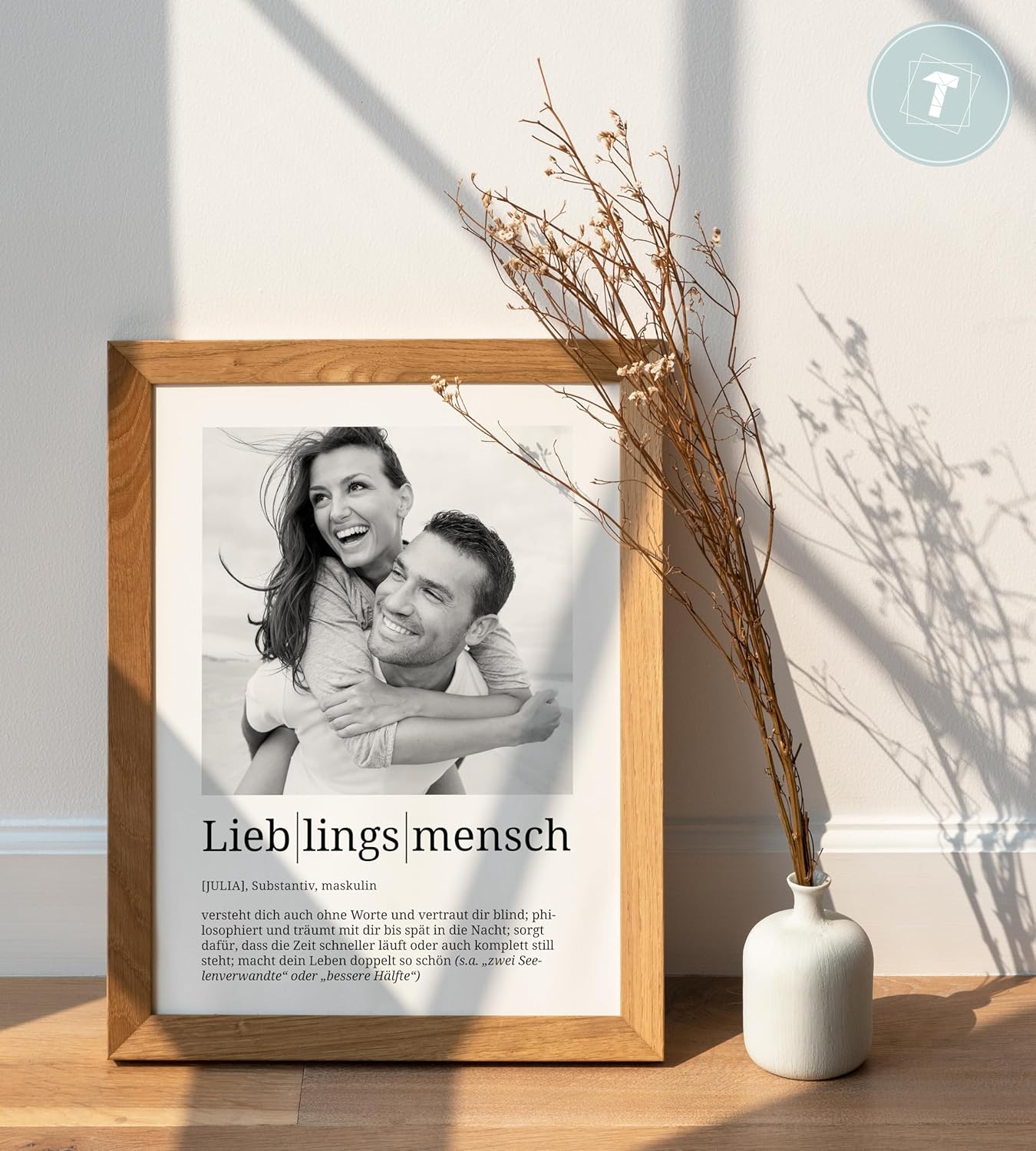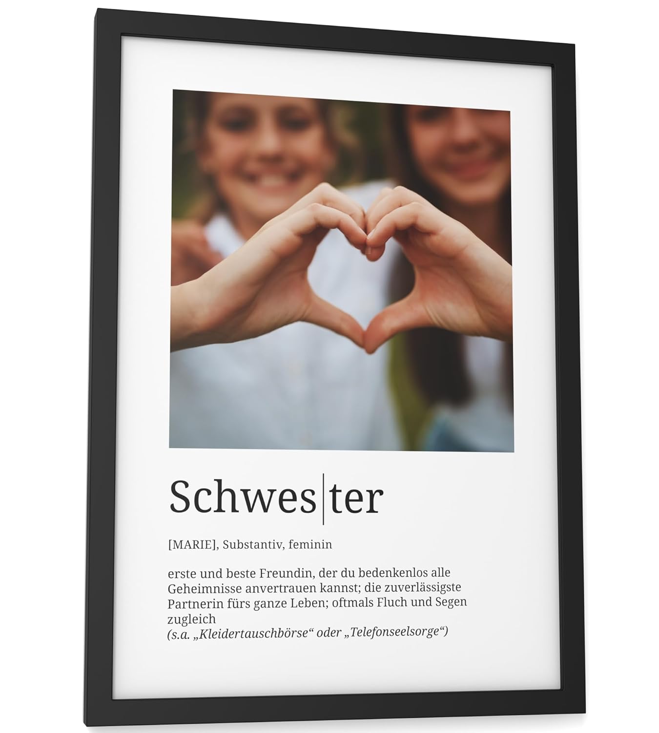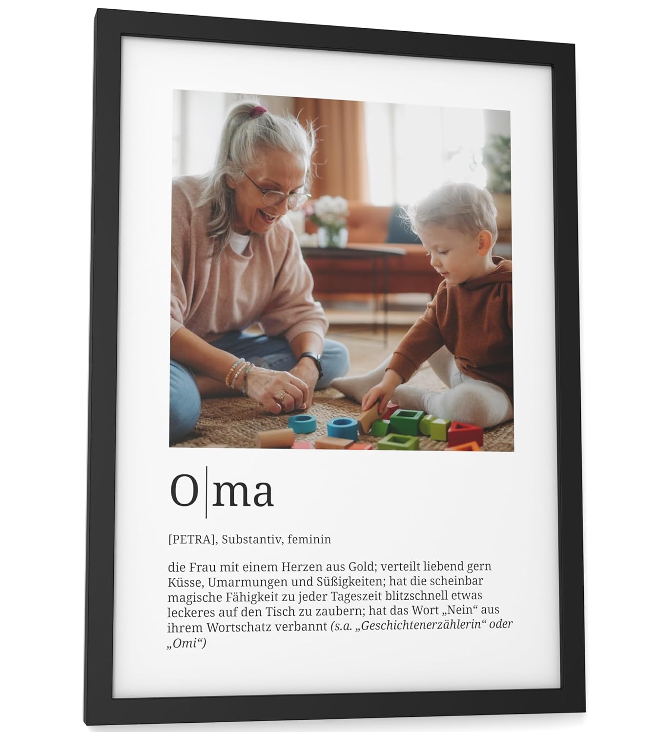 Персонализирани подаръци Papierschmiede® Любим човек, Дефиниция със снимка в DIN A4 (21 x 30 см) Избираема рамка, Готова за рамкиране, Персонална снимка като подарък за Коледа, рожден ден, годишнина