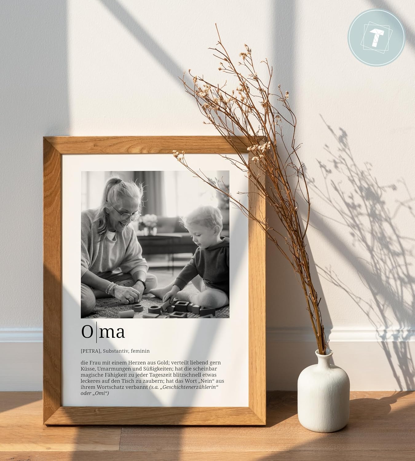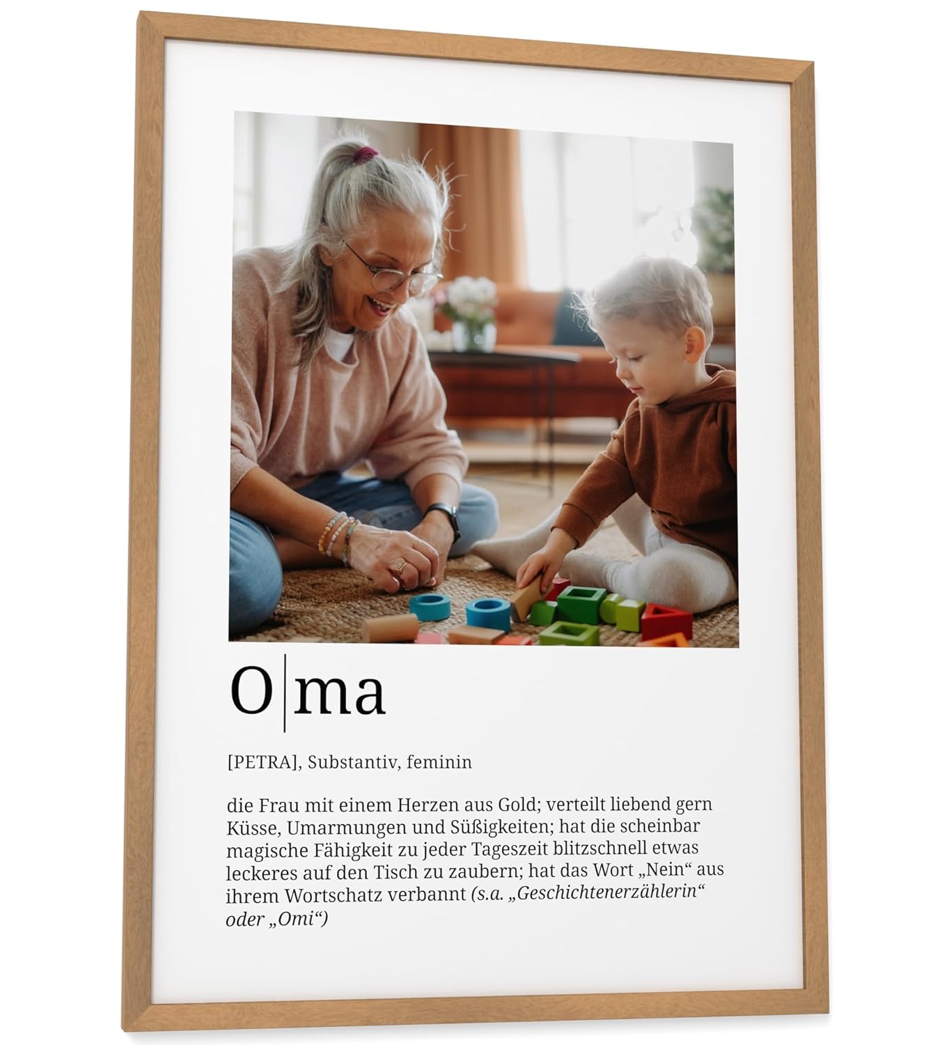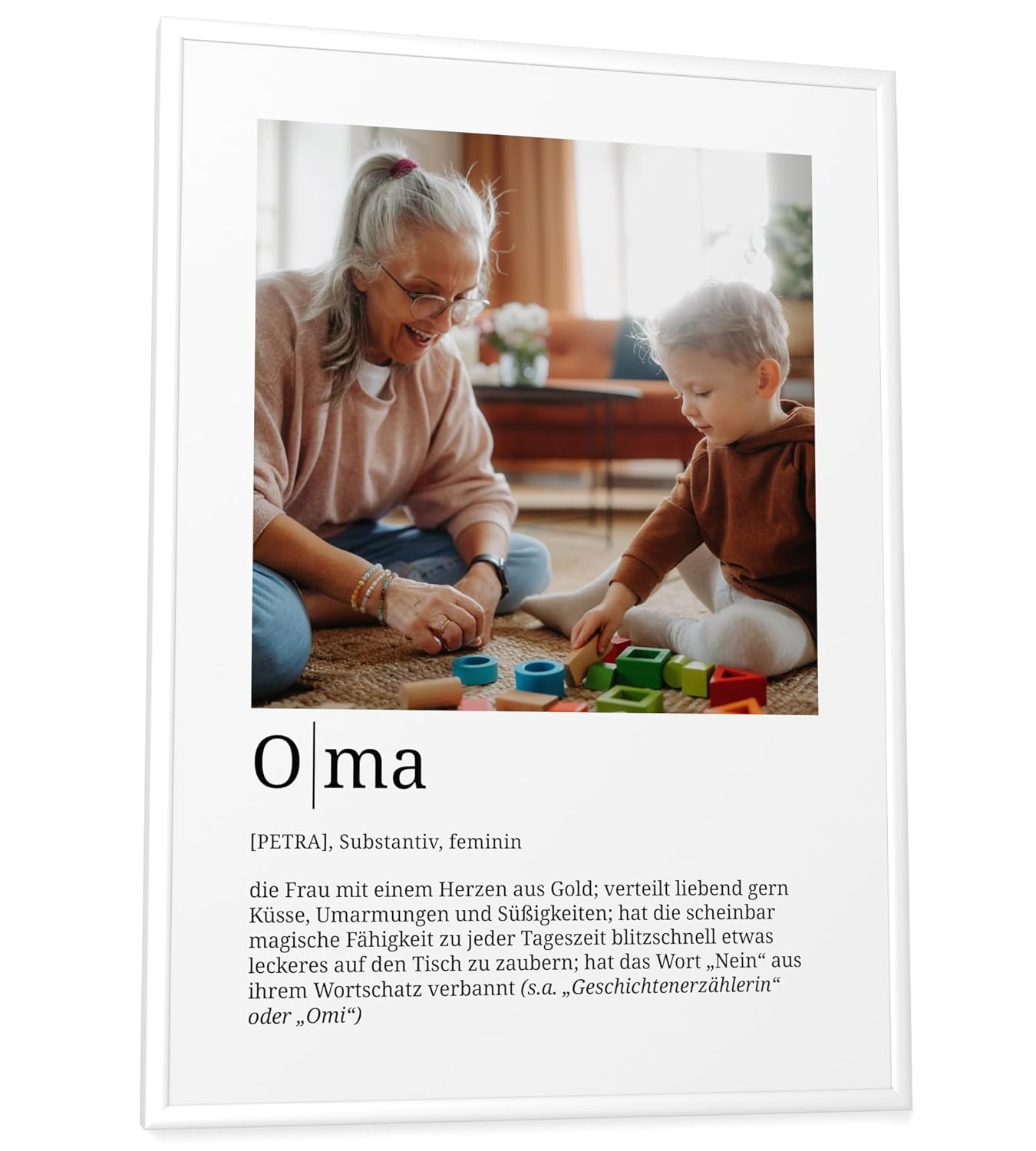 Персонализирани подаръци Papierschmiede® за баба, Дефиниция със снимка в DIN A4 (21 x 30 см) Рамка с възможност за избор Готова за рамкиране, лична снимка като подарък за Коледа, рожден ден