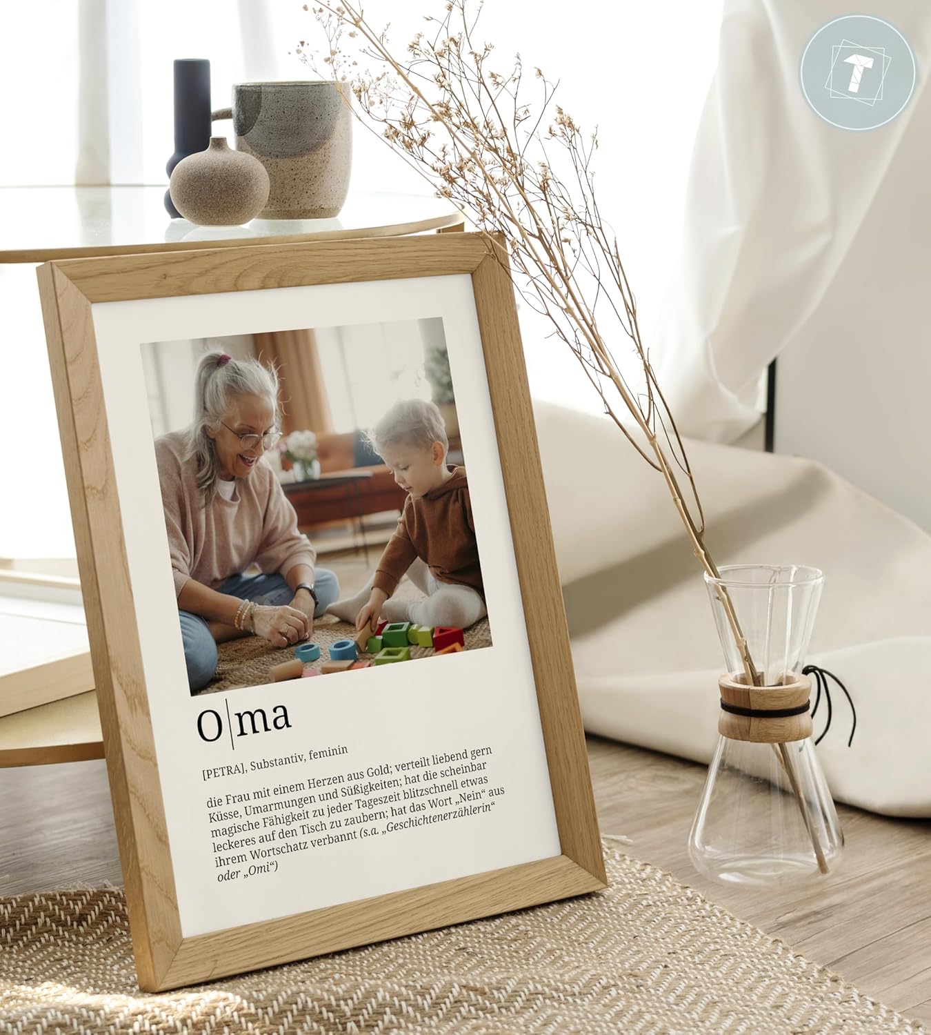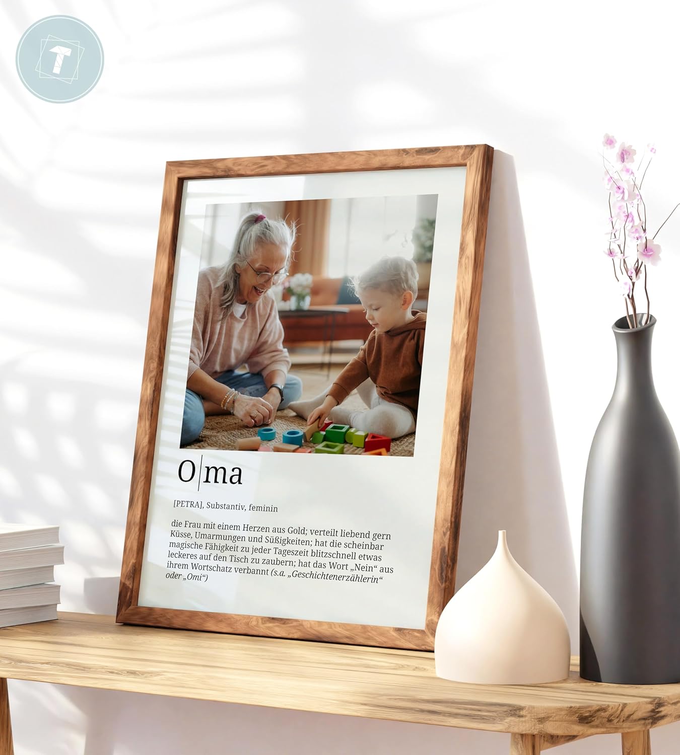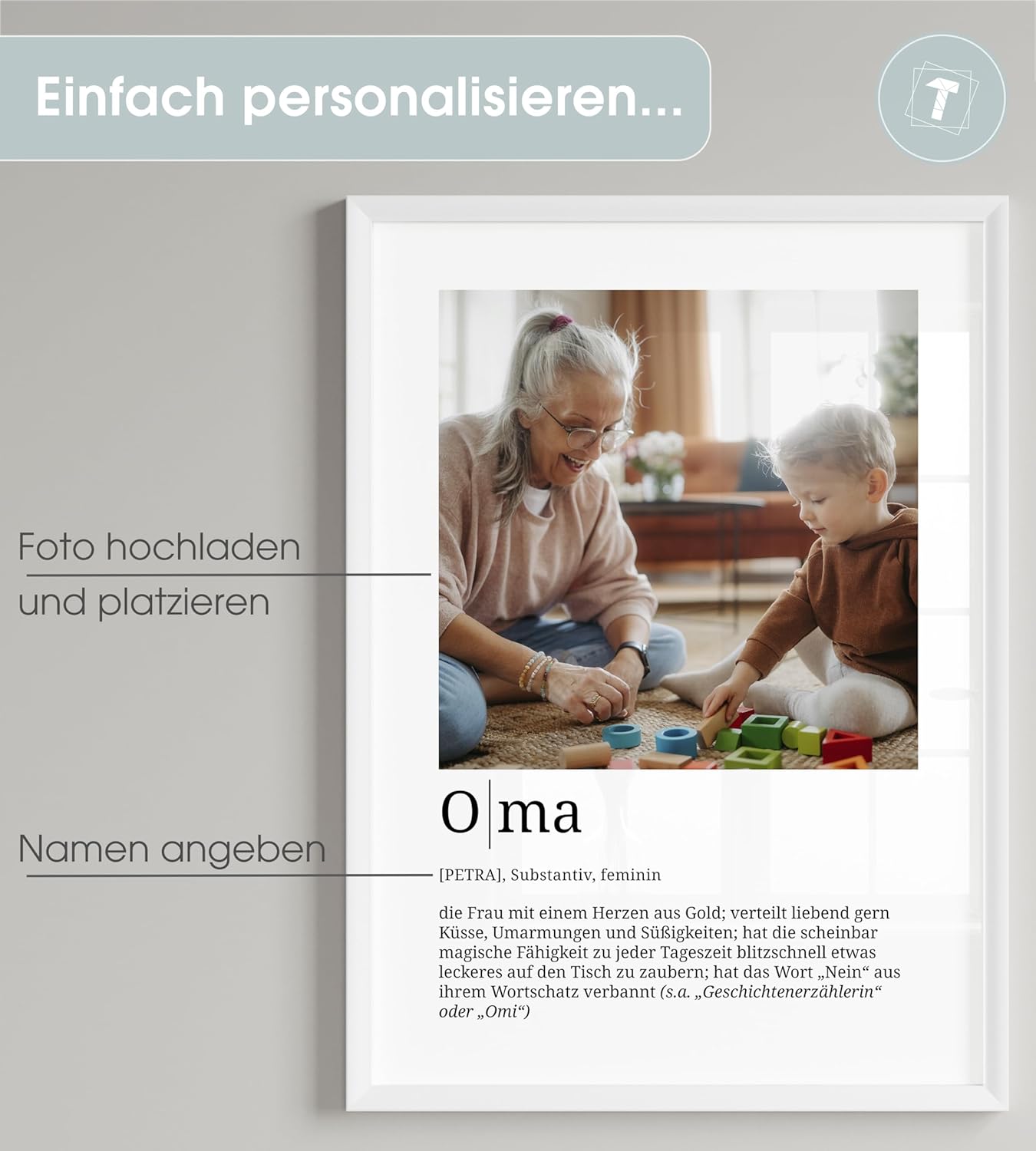 Персонализирани подаръци Papierschmiede® за баба, Дефиниция със снимка в DIN A4 (21 x 30 см) Рамка с възможност за избор Готова за рамкиране, лична снимка като подарък за Коледа, рожден ден