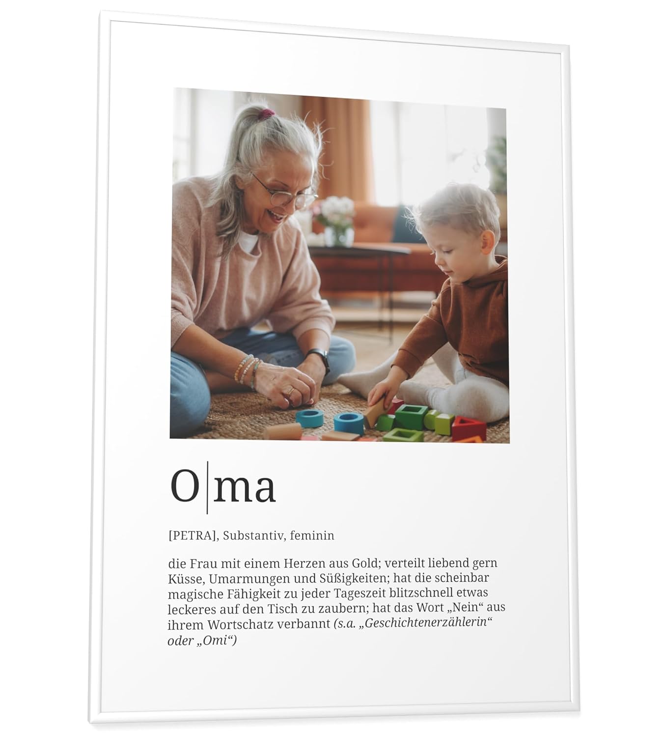Персонализирани подаръци Papierschmiede® за баба, резолюция със снимка в DIN A2 (59,4 x 42 см) Рамка с избираем размер, готова за рамкиране, лична снимка като подарък за Коледа, рожден ден