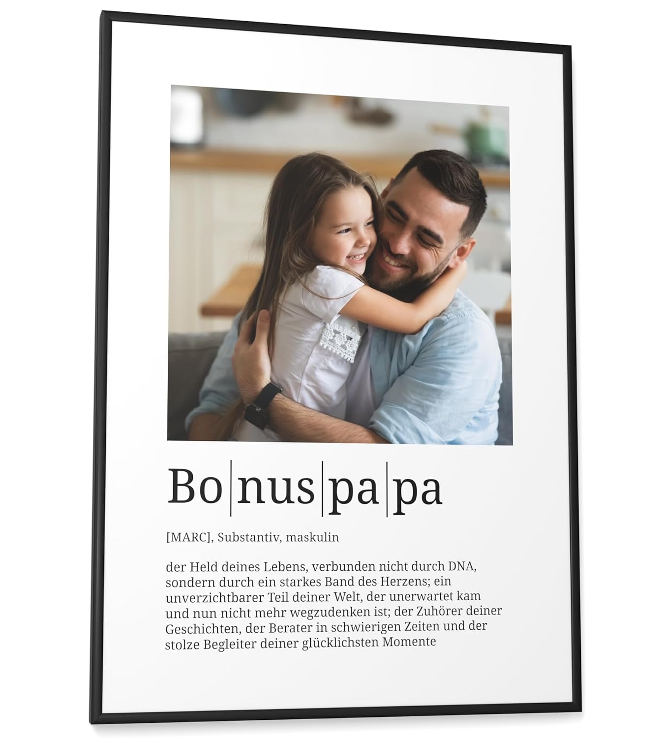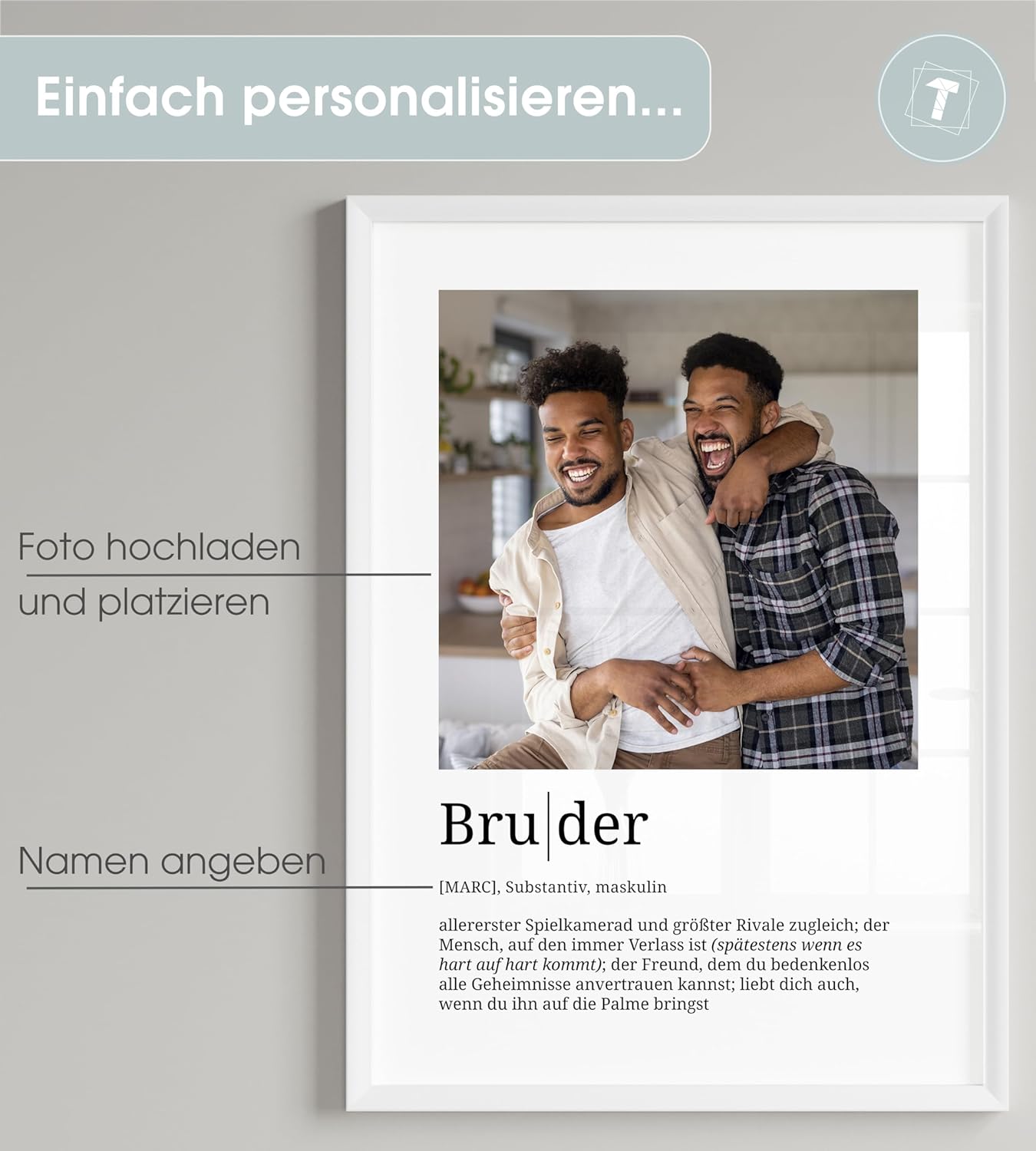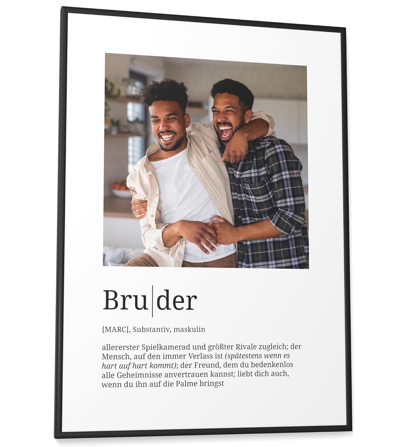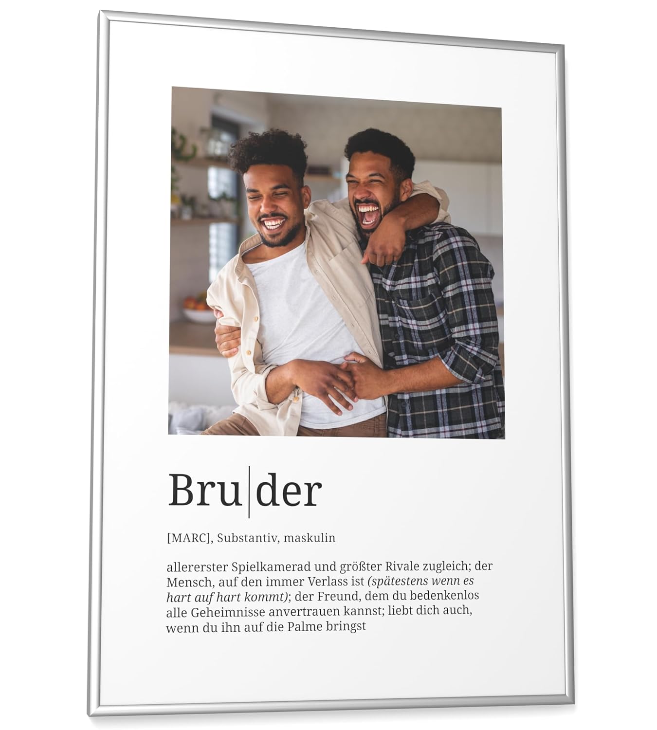 Персонализирани подаръци Papierschmiede® за брат с дефиниция и снимка в DIN A2 (59,4 x 42 см) с избираема рамка, готова за рамкиране, лична снимка за брат за Коледа, рожден ден, братя и сестри