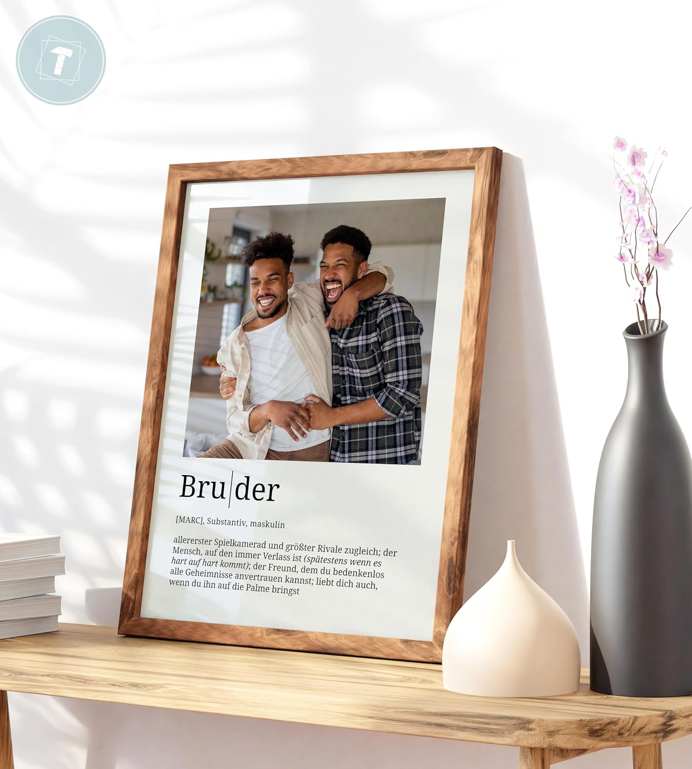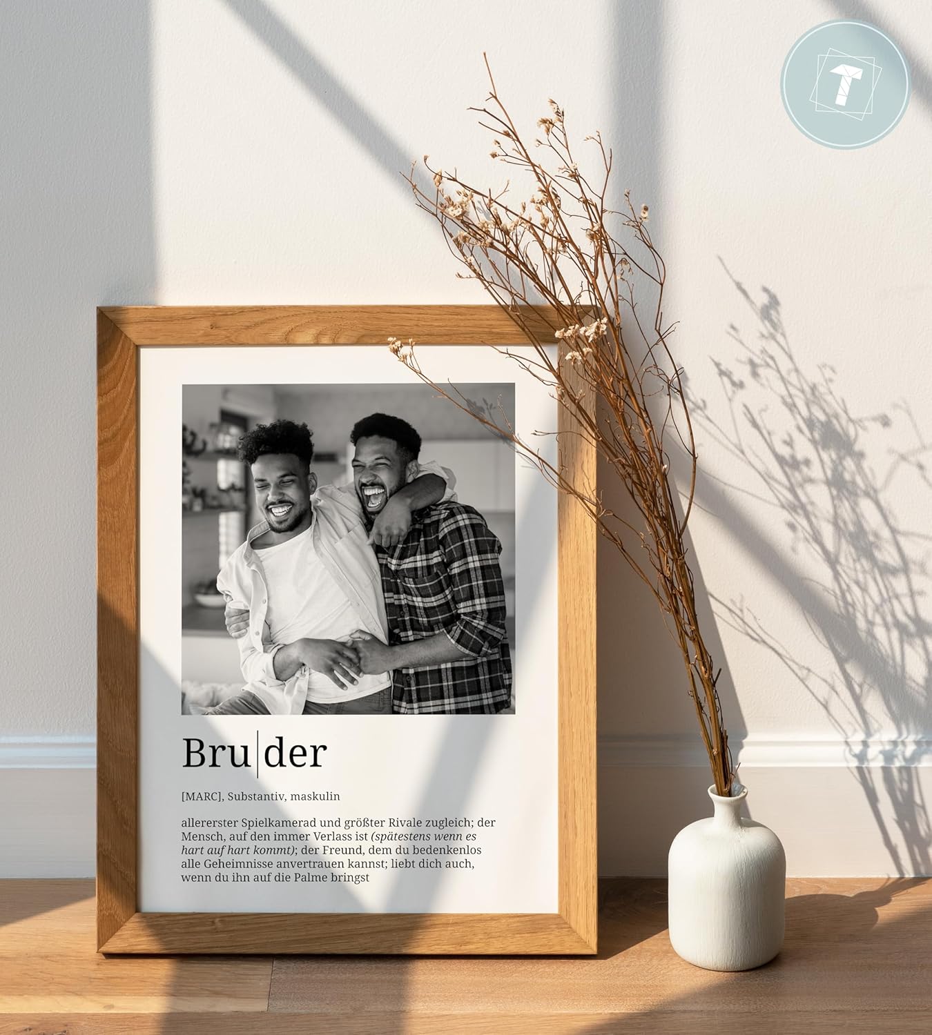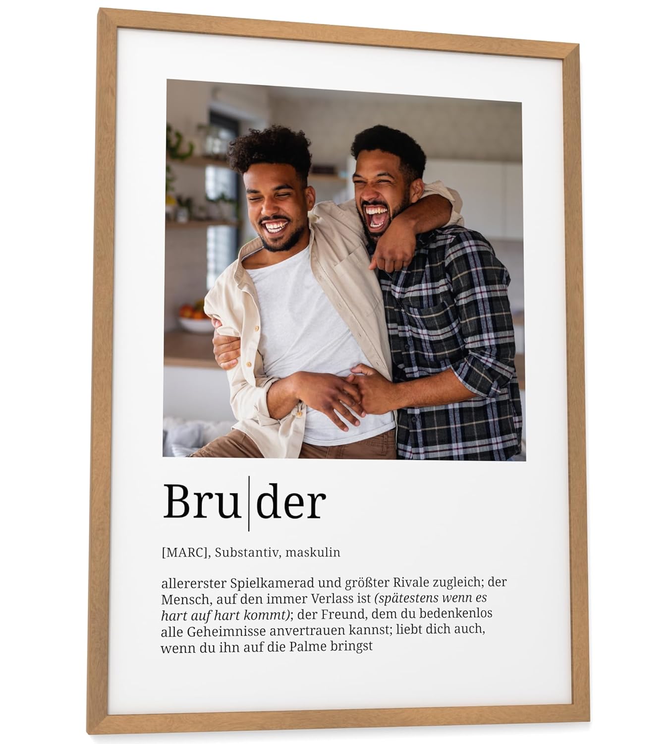 Персонализирани подаръци Papierschmiede® за брат с дефиниция и снимка в DIN A4 (21 x 30 см) с избираема рамка, готова за рамкиране, личен подарък за снимка за брат за Коледа, рожден ден, братя и сестри