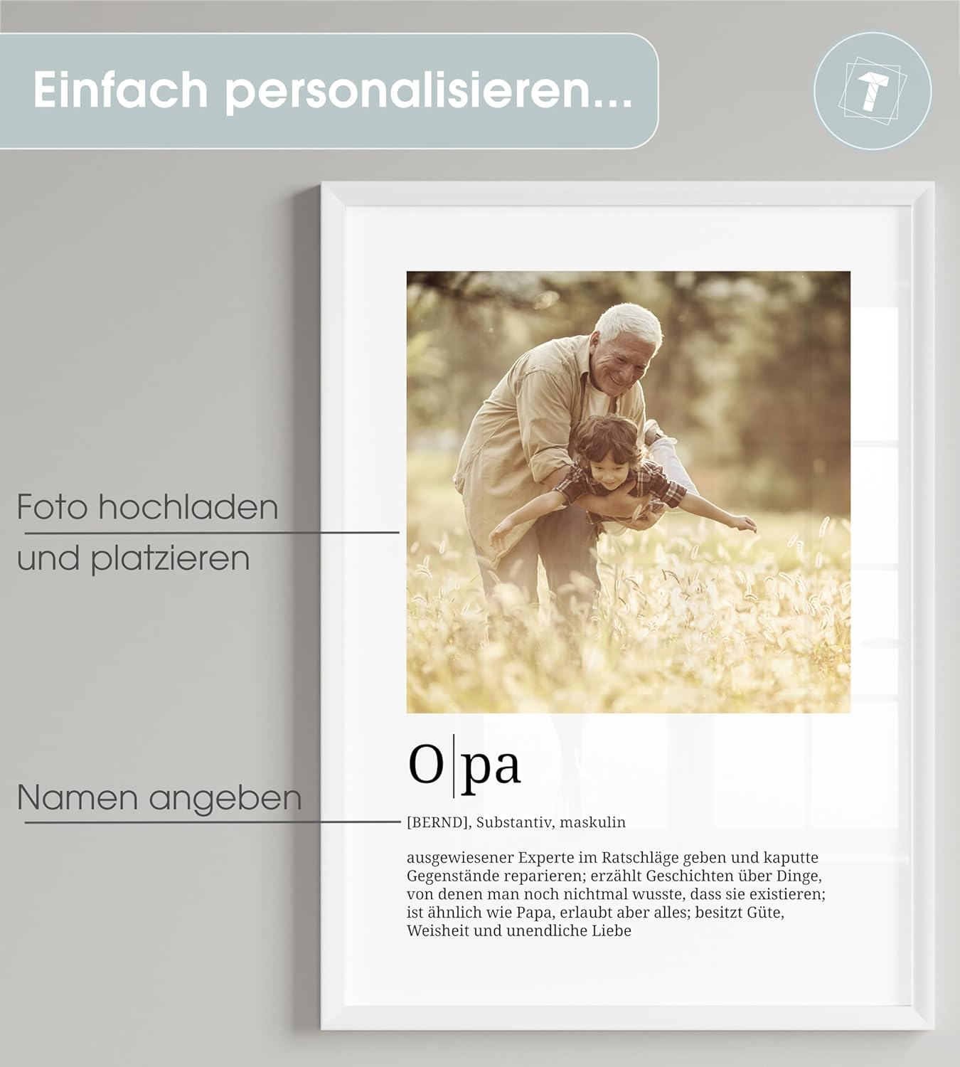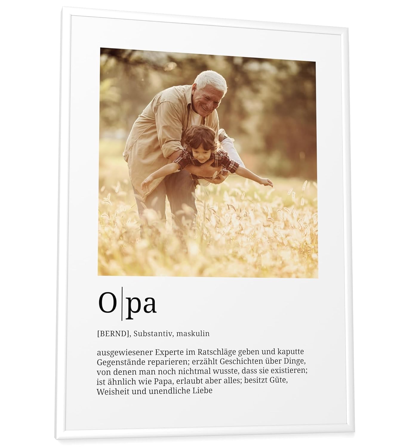 Персонализирани подаръци Papierschmiede® за дядо, Дефиниция със снимка в DIN A4 (21 x 30 см) Рамка с избираем размер, готова за рамкиране, лична снимка като подарък за Коледа, рожден ден