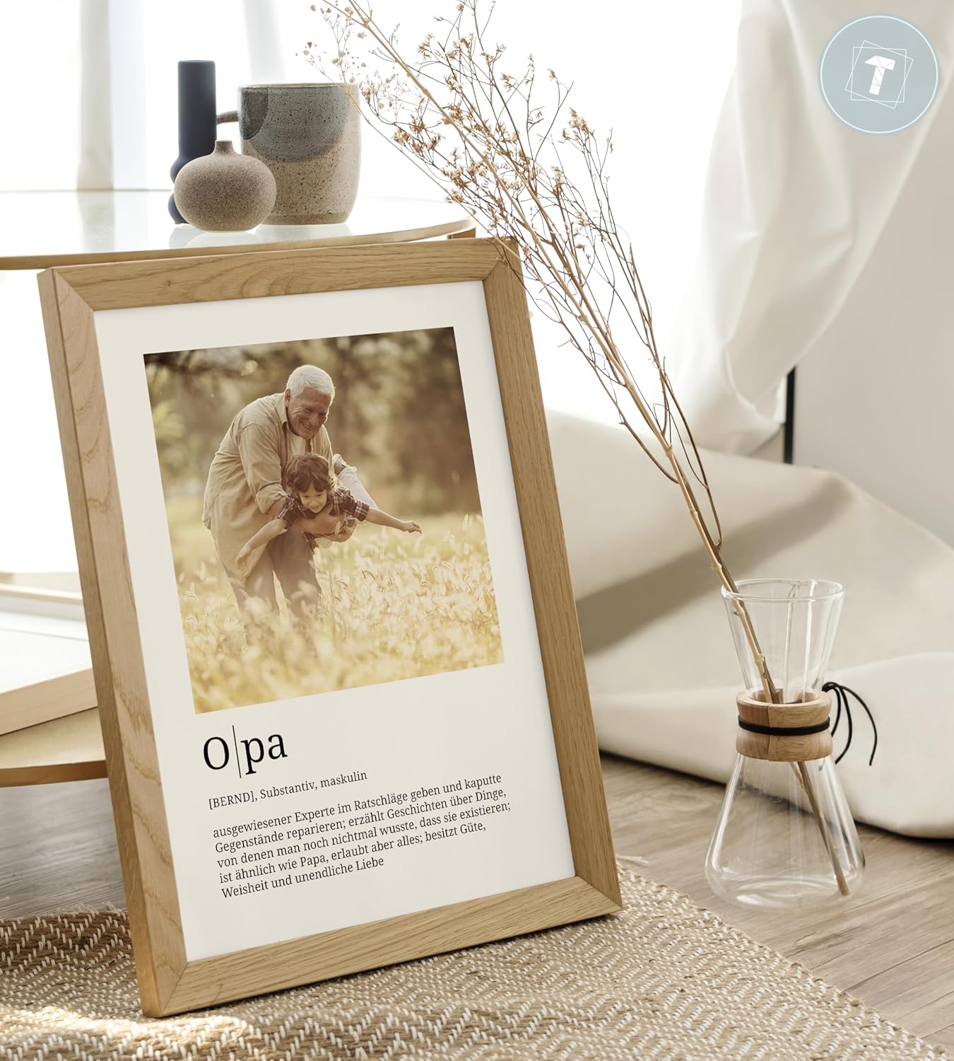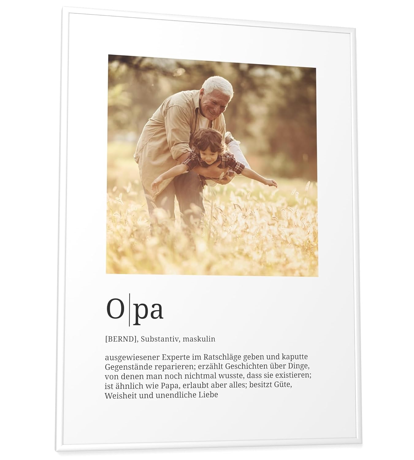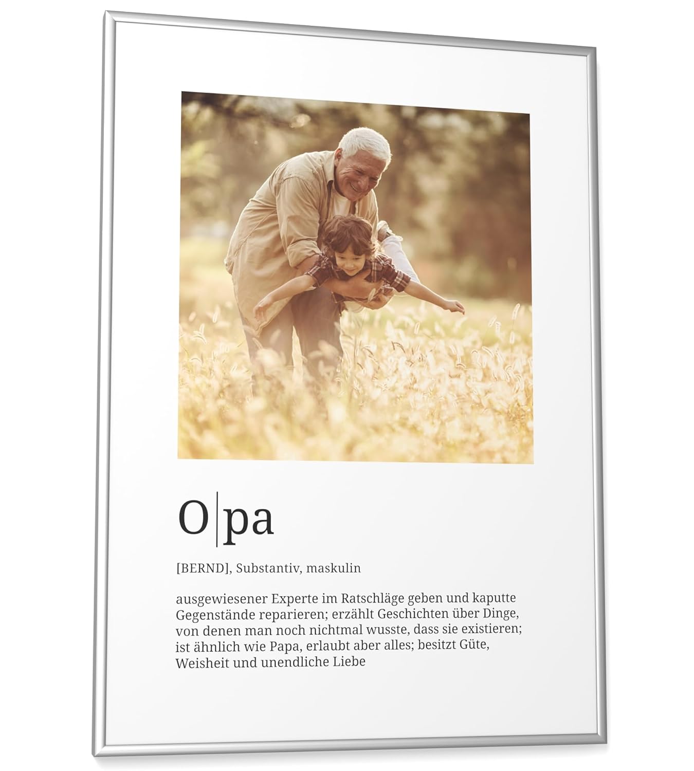 Персонализирани подаръци Papierschmiede® за дядо, резолюция със снимка в DIN A2 (59,4 x 42 см) Рамка с избираем размер, готова за рамкиране, лична снимка като подарък за Коледа, рожден ден