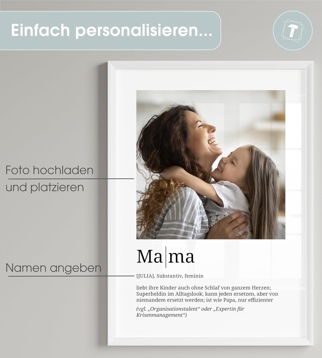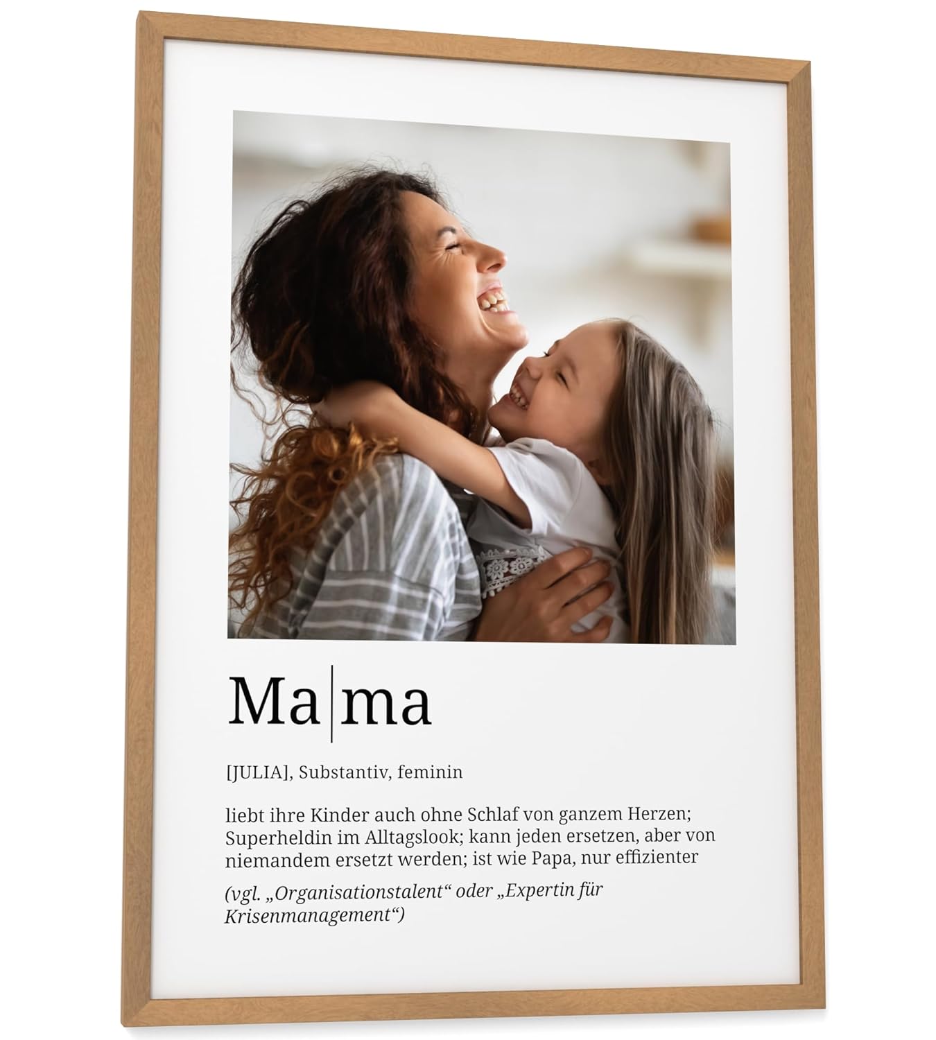 Персонализирани подаръци Papierschmiede® за мама, резолюция със снимка в DIN A4 (21 x 30 см) Рамка с възможност за избор, готова за рамкиране, лична снимка като подарък за Деня на майката, Коледа, рожден ден, раждане