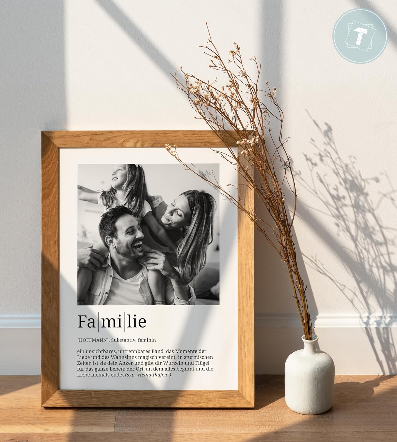 Персонализирани подаръци Papierschmiede® за семейства, с дефиниция и снимка в DIN A4 (21 x 30 см), избираема рамка, готова за рамкиране, лична снимка като подарък за Деня на майката, Деня на бащата, Коледа, раждане