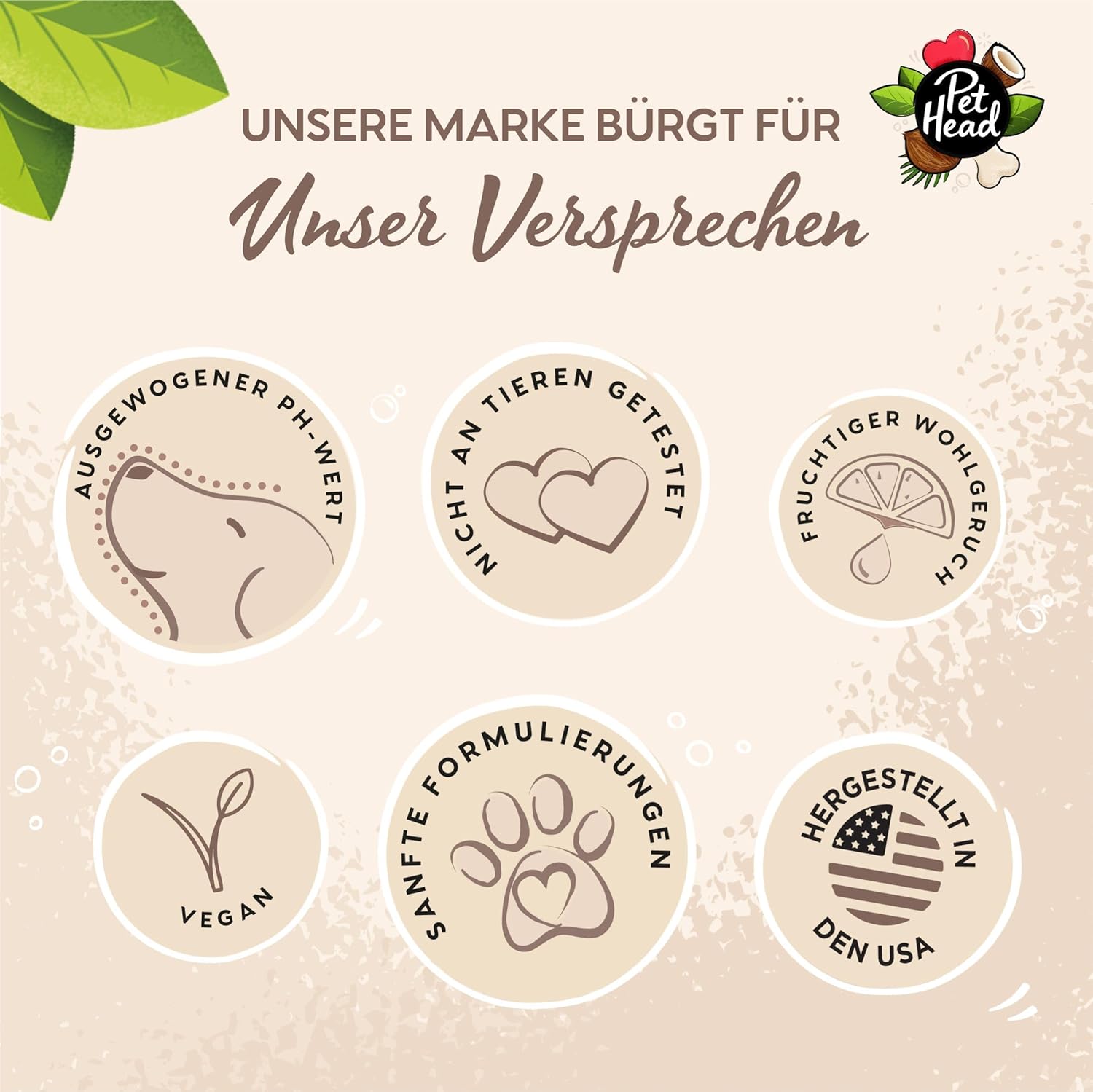 • БЕЗОПАСНО ЗА ВАС И ВАШЕТО КУЧЕ – Всички продукти на Pet Head не съдържат вредни вещества – парабени, повърхностноактивни вещества или оцветители. Без глутен и ядки. Pet Head се гордее, че е веган и е и винаги ще бъде без жестокост към животни.