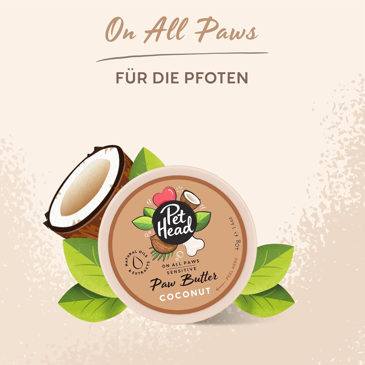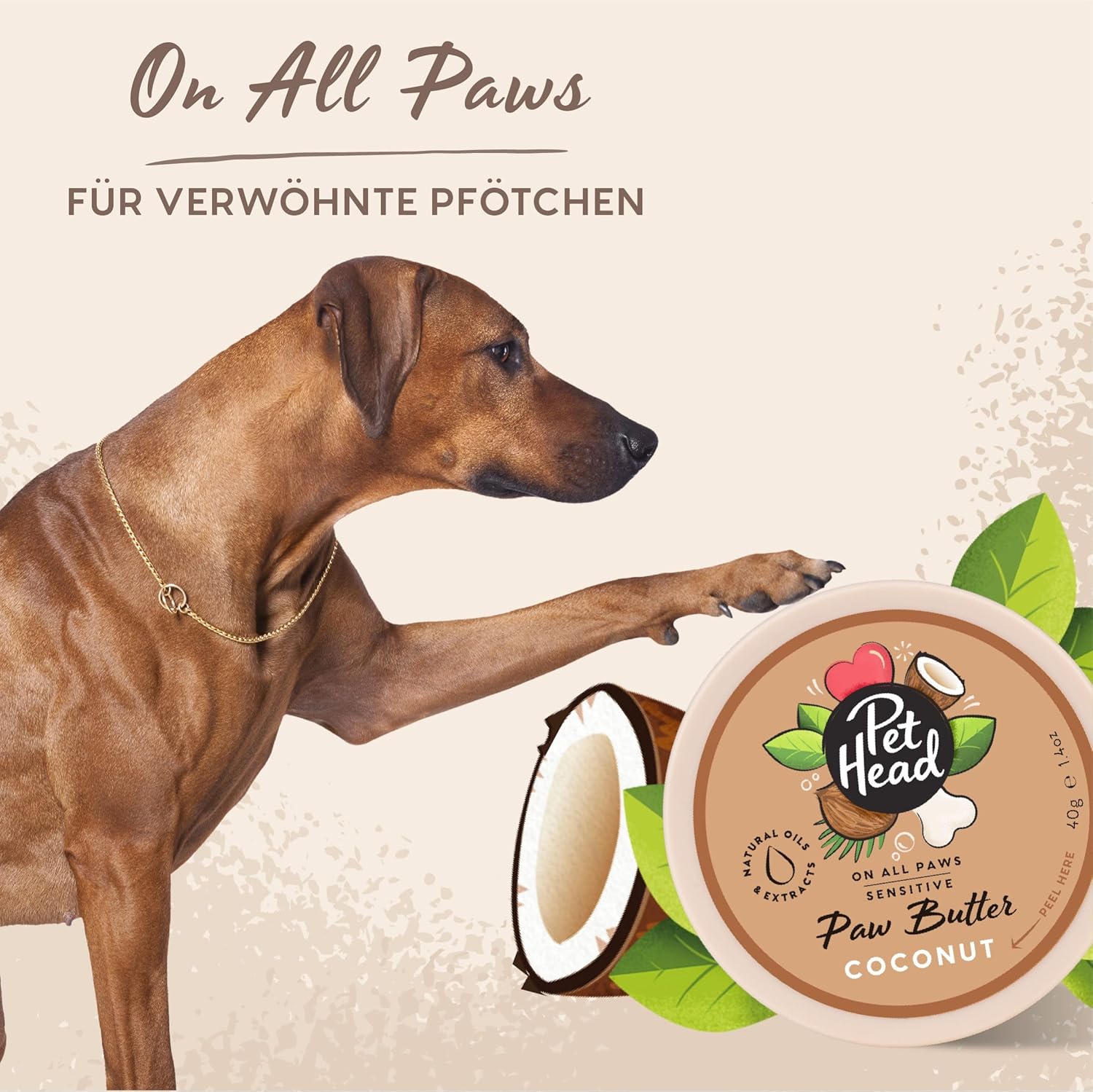 Pet Head On All Paws Кокосов хидратиращ балсам за кучешки лапи с масло от лапи. Успокоява и се грижи за лапите и носа. Професионална грижа. Нежна формула за кучета и кученца. 40 г.