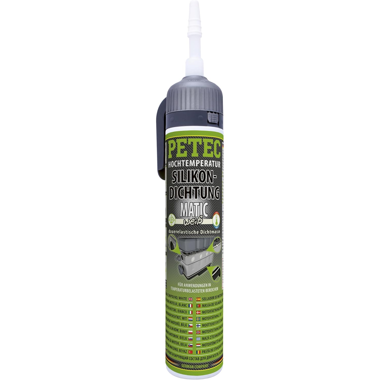 PETEC Високотемпературен силиконов уплътнител за двигатели за автомобили и каравани, уплътнител за метал и пластмаса (бял, 200 мл)