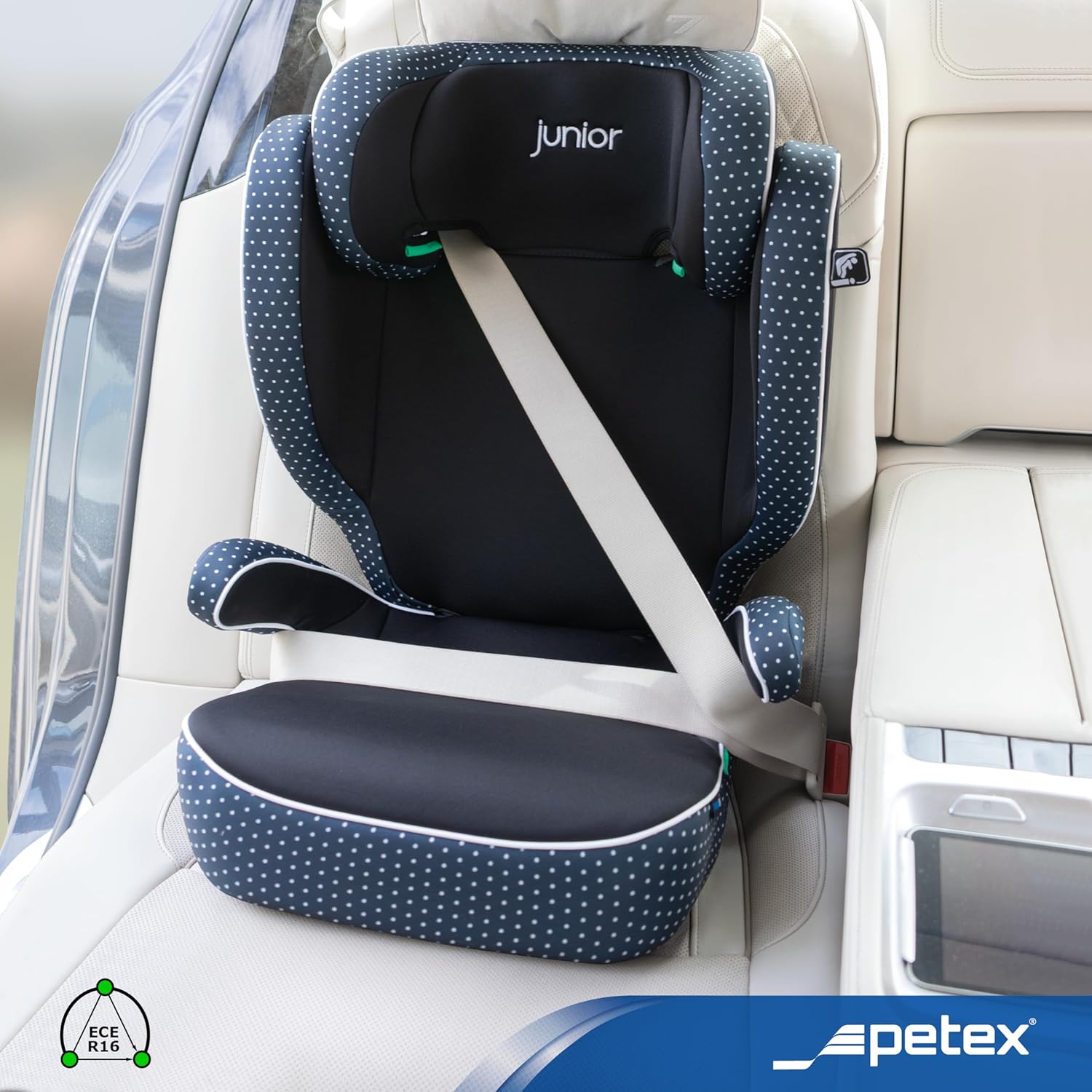 PETEX Basic i-Size столче за кола съгласно ECE R129 за деца от приблизително 100 до 150 см, регулируемо по височина детско столче за кола в синьо, опаковка от 1