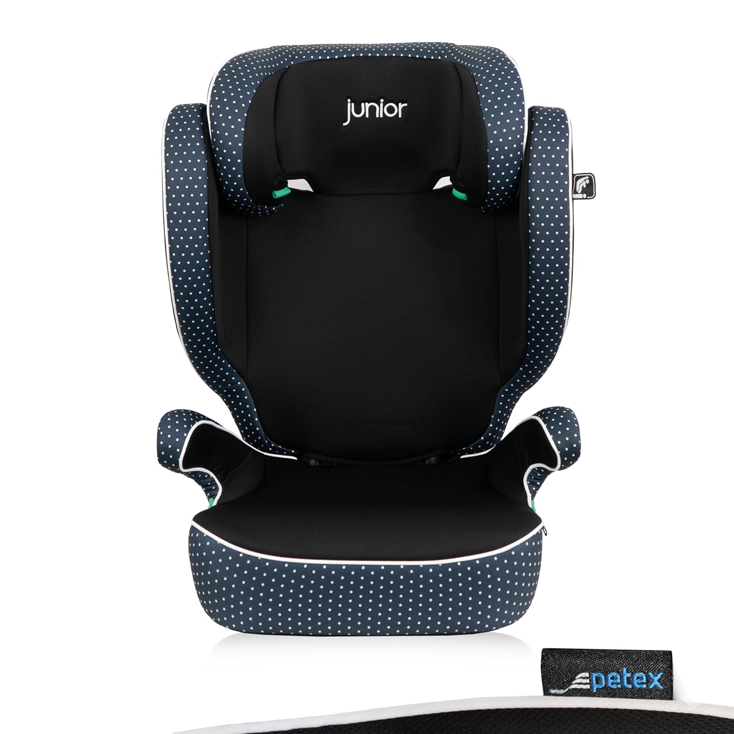 PETEX Basic i-Size столче за кола съгласно ECE R129 за деца от приблизително 100 до 150 см, регулируемо по височина детско столче за кола в сиво, опаковка от 1