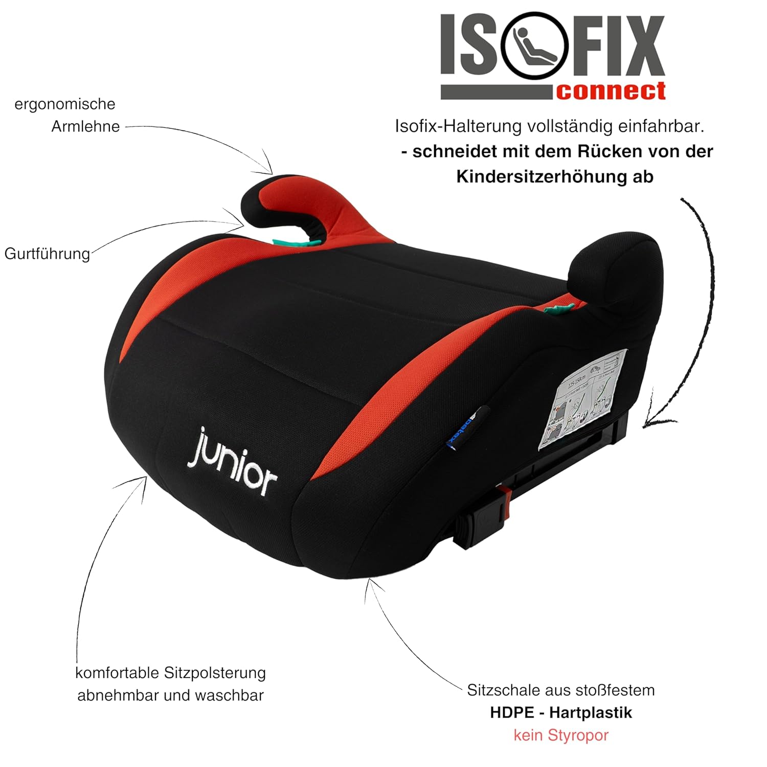 Детското столче за кола Max Plus с Isofix от PETEX предлага максимална безопасност и комфорт за деца с височина между 125 и 150 см и на възраст от приблизително 7 до 12 години. Съответстващо на строгите стандарти на стандарта i-Size и сертифицирано съгласно ECE R129/03, то гарантира безопасно пътуване. Нашето столче за кола Max Plus е оборудвано с разтегателно закрепване Isofix-connect. То може да се заключи в крепежното устройство Isofix на вашия автомобил, ако е необходимо, и не му пречи, когато не се използва. Особено практично е, когато столчето се използва в различни превозни средства и Isofix не е наличен навсякъде. Столчето за кола е изработено от здрава HDPE пластмаса, което осигурява не само стабилност, но и издръжлива конструкция за безопасност при удар. Благодарение на щедрата подплата, детето седи удобно, дори по време на по-дълги пътувания. Ергономичният дизайн поддържа удобно седене. Столчето за кола е лесно за почистване благодарение на материала, който може да се пере. Така седалката остава хигиенична и добре поддържана дори след малки инциденти. Бустерната седалка PETEX Max Plus Isofix е оптималният избор за родители, които ценят безопасността, комфорта и качеството, за да осигурят на децата си безопасно и приятно пътуване. Бустерната седалка е включена в комплекта.
