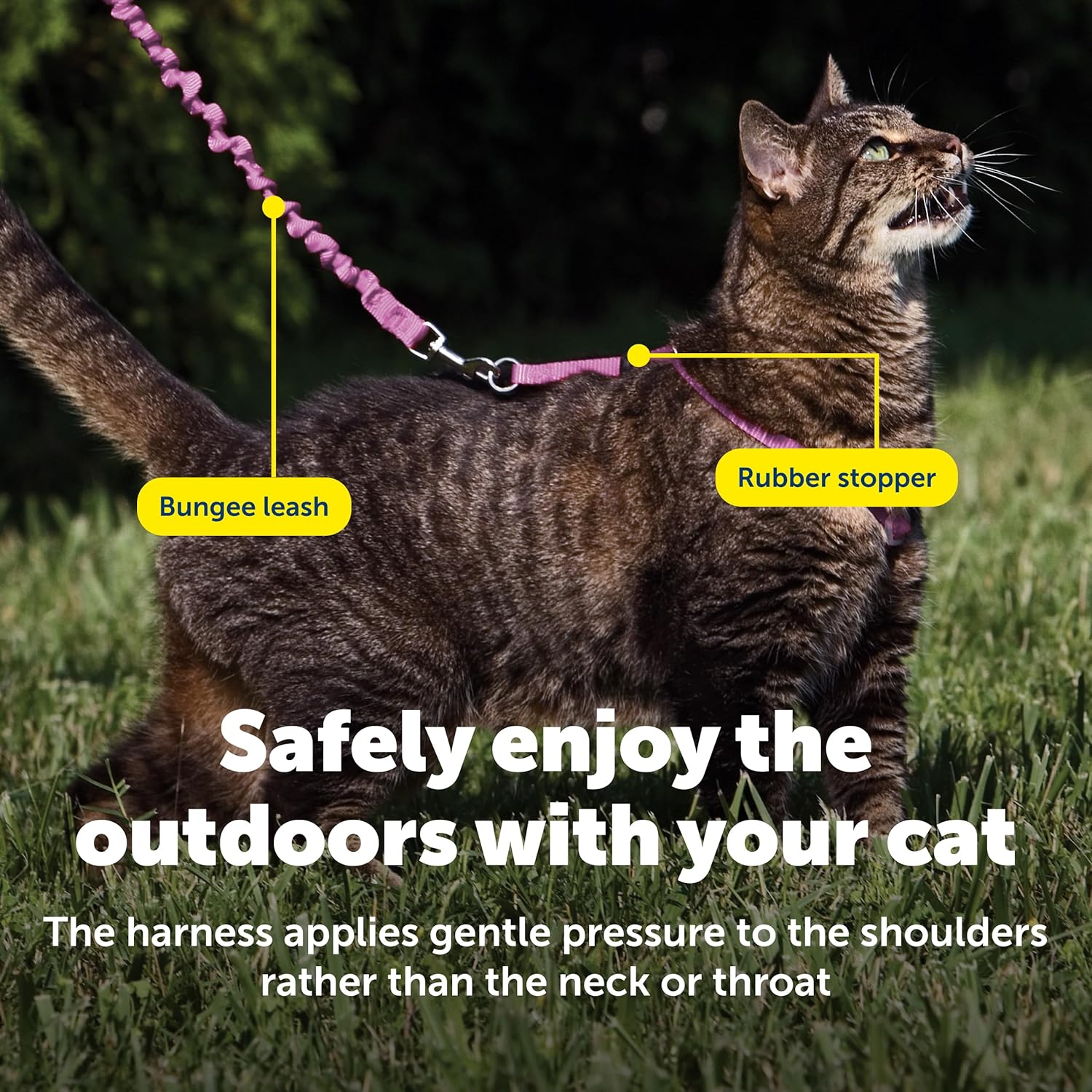 PetSafe Come With Me Kitty Harness and Bungee Leash, Нагръдник за котки, Среден, Прашно розово/Бордо