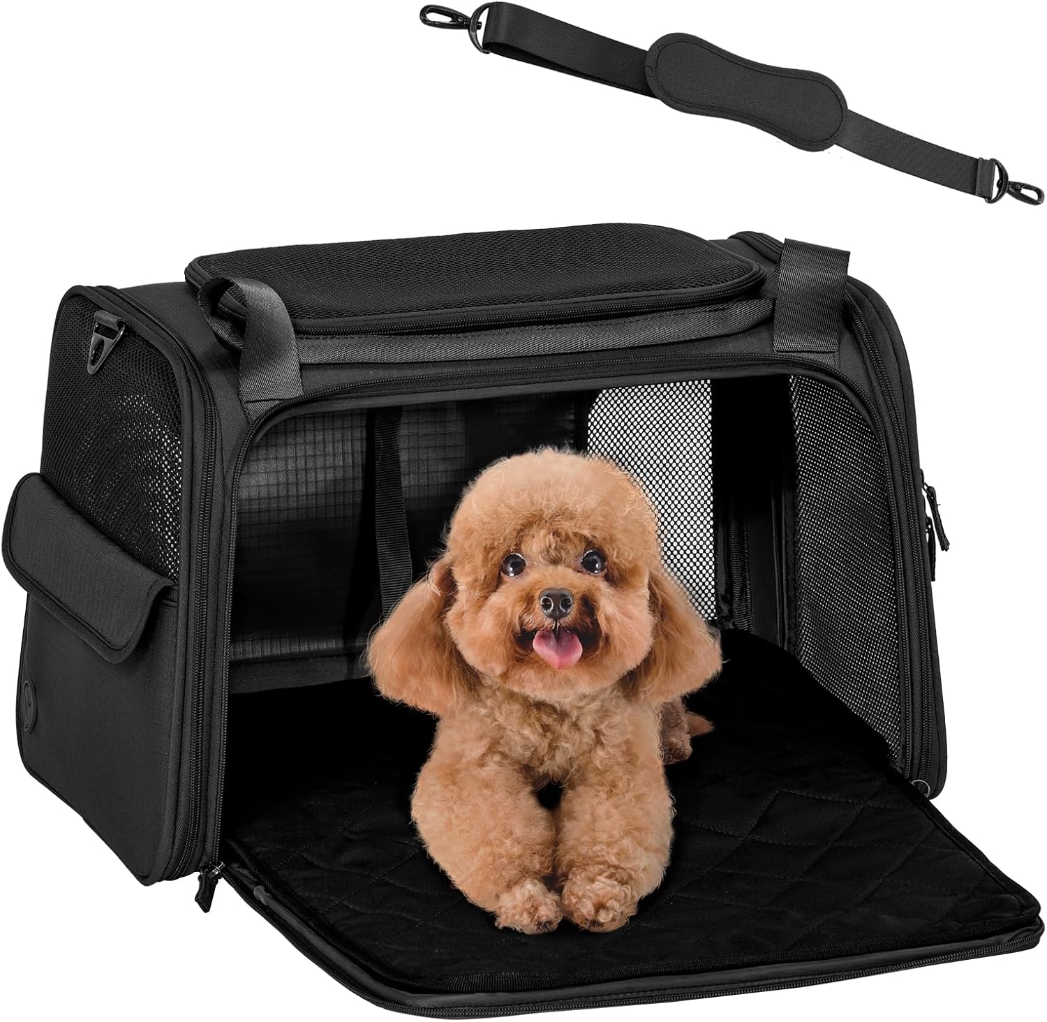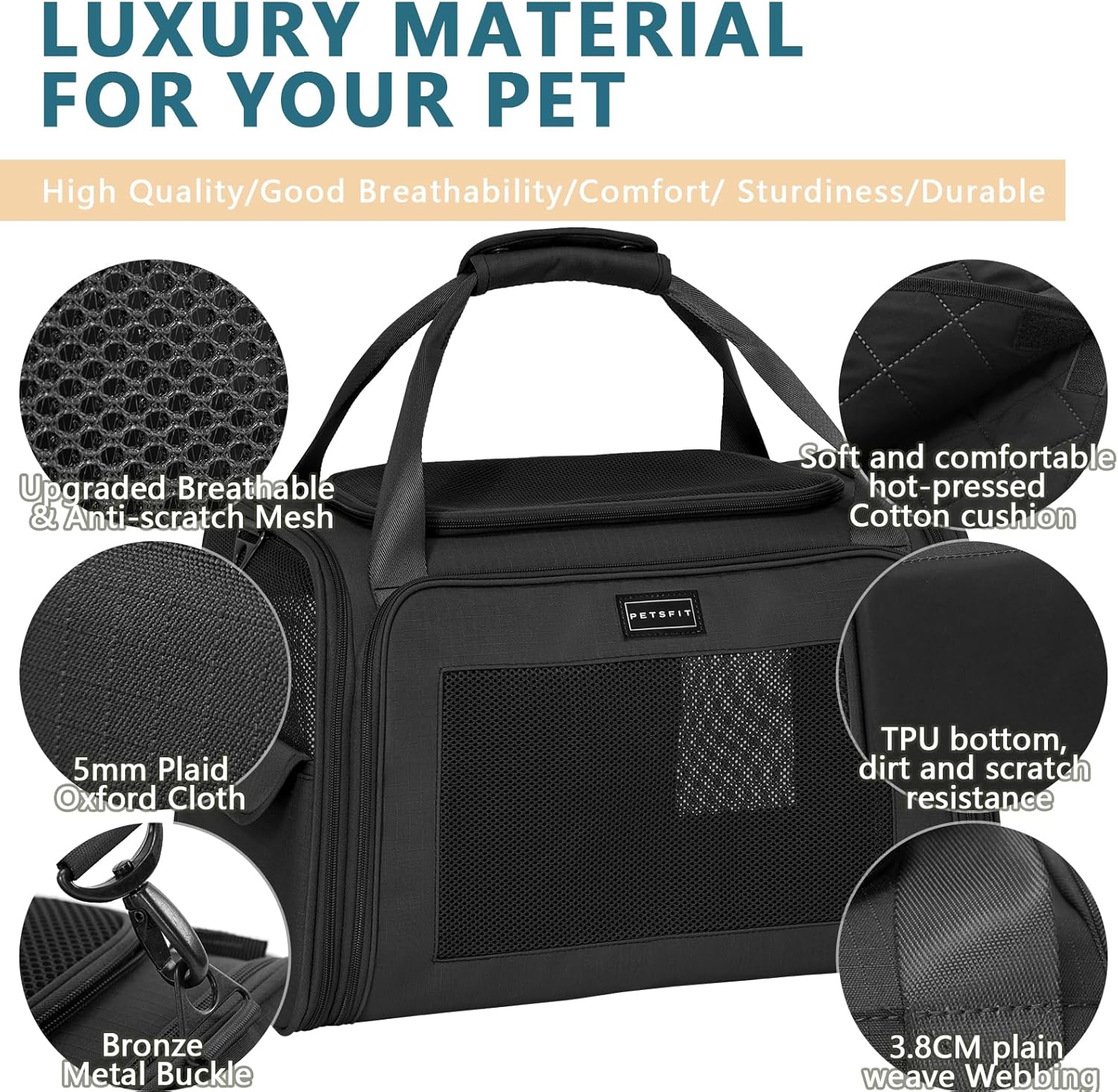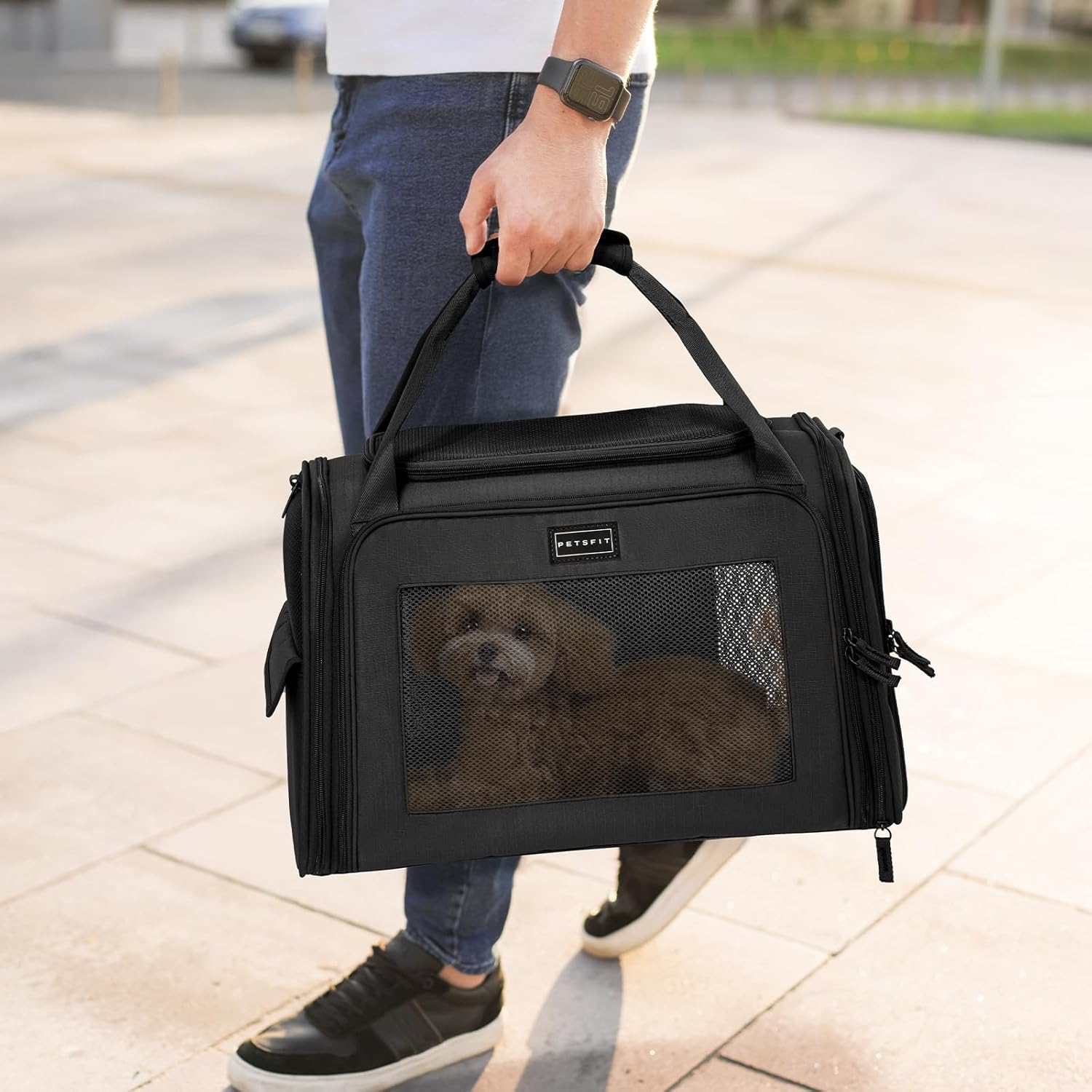 Petsfit Транспортна кутия за кучета и котки, сгъваема чанта за малки кучета, чанта за носене с регулируема презрамка и мека разтегателна възглавница, M/Черен