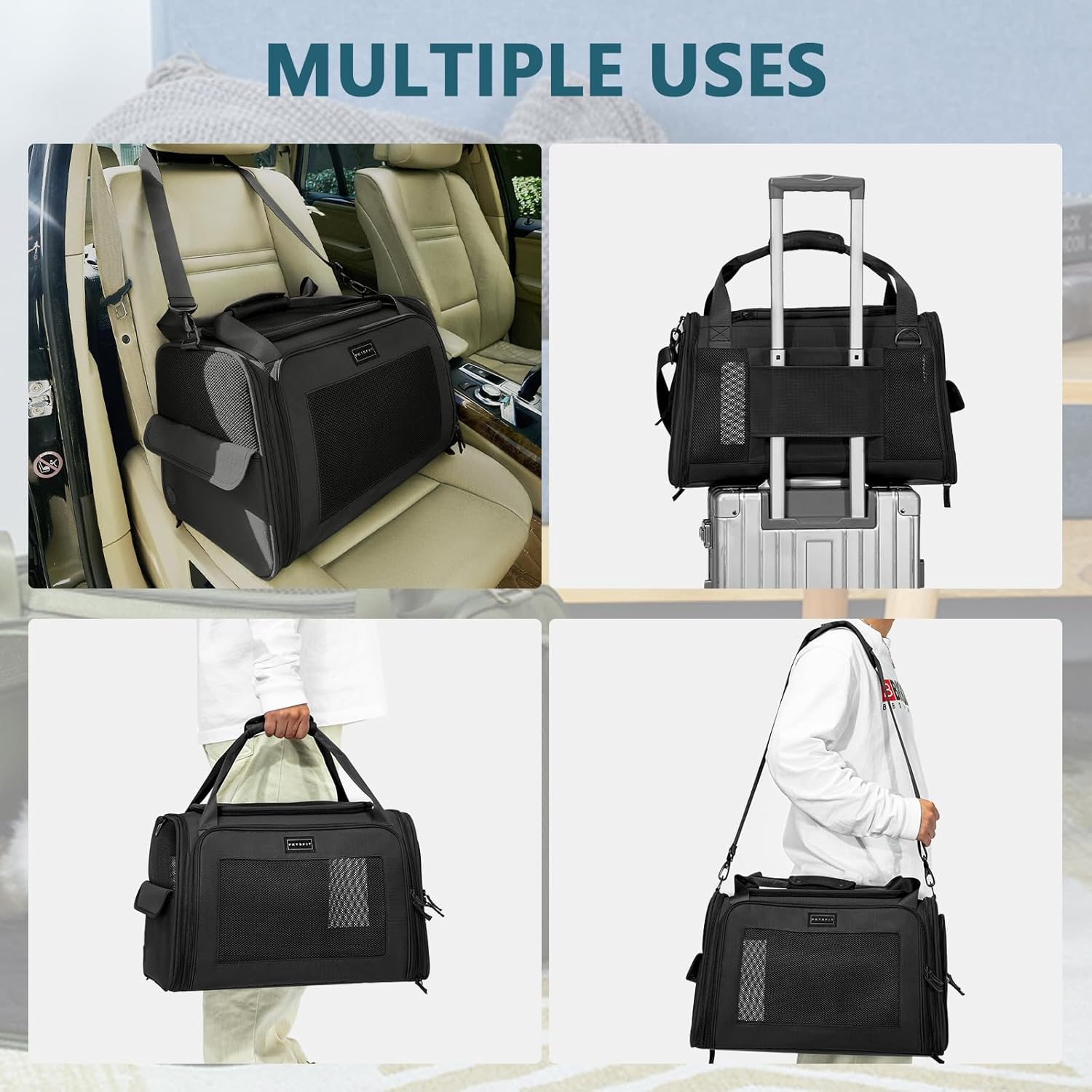 • Много начини за избор: тази чанта за пътуване за кучета и котки може да се носи в ръка или на рамо, може да се постави на столчето за кола или на куфара. (Размер L не е подходящ за чанта за самолет)