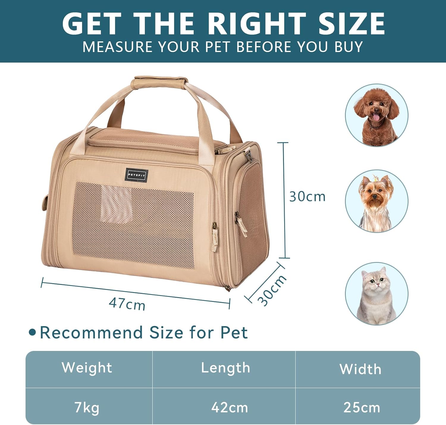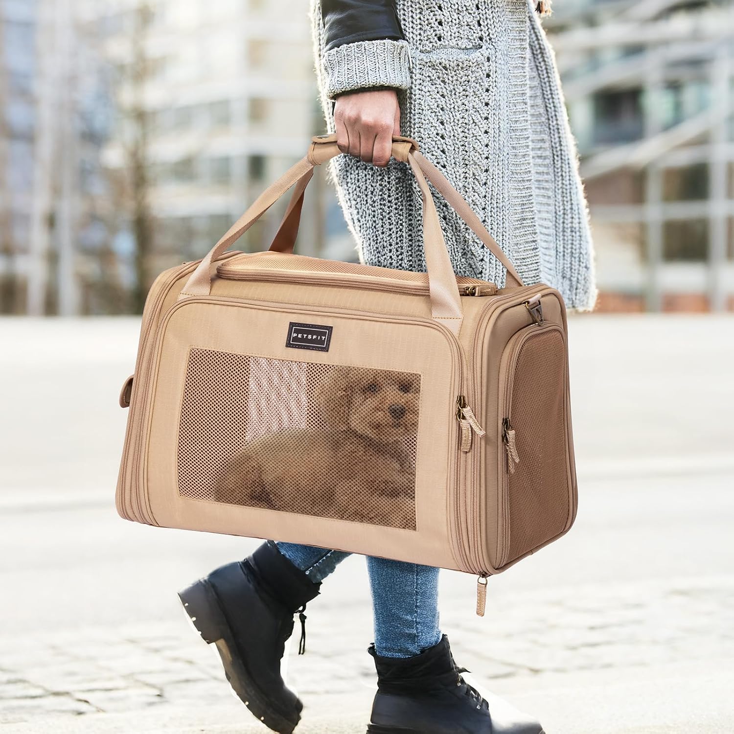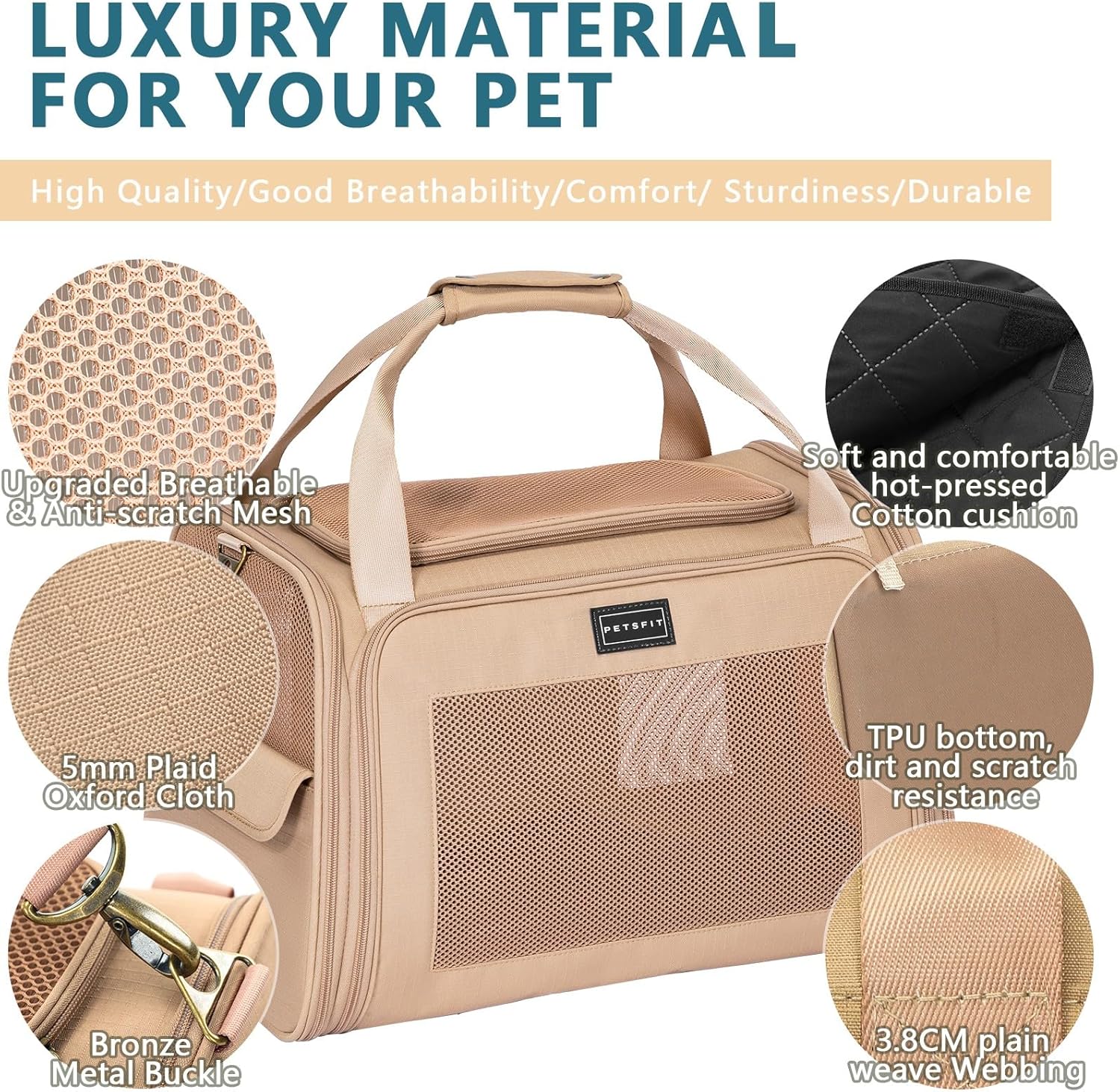 Petsfit Транспортна кутия за кучета и котки, сгъваема чанта за малки кучета, чанта за носене с регулируема презрамка и мека разтегателна възглавница, цвят M/Khaki