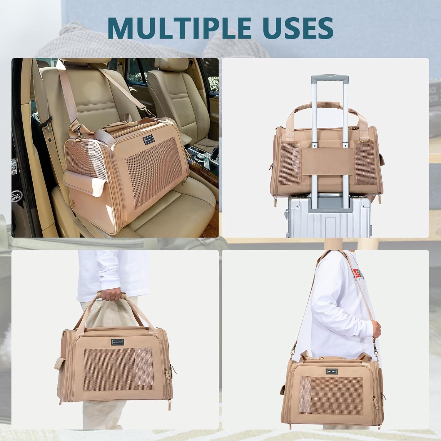• Много начини за избор: тази чанта за пътуване за кучета и котки може да се носи в ръка или на рамо, може да се постави на столчето за кола или на куфара. (Размер L не е подходящ за чанта за самолет)